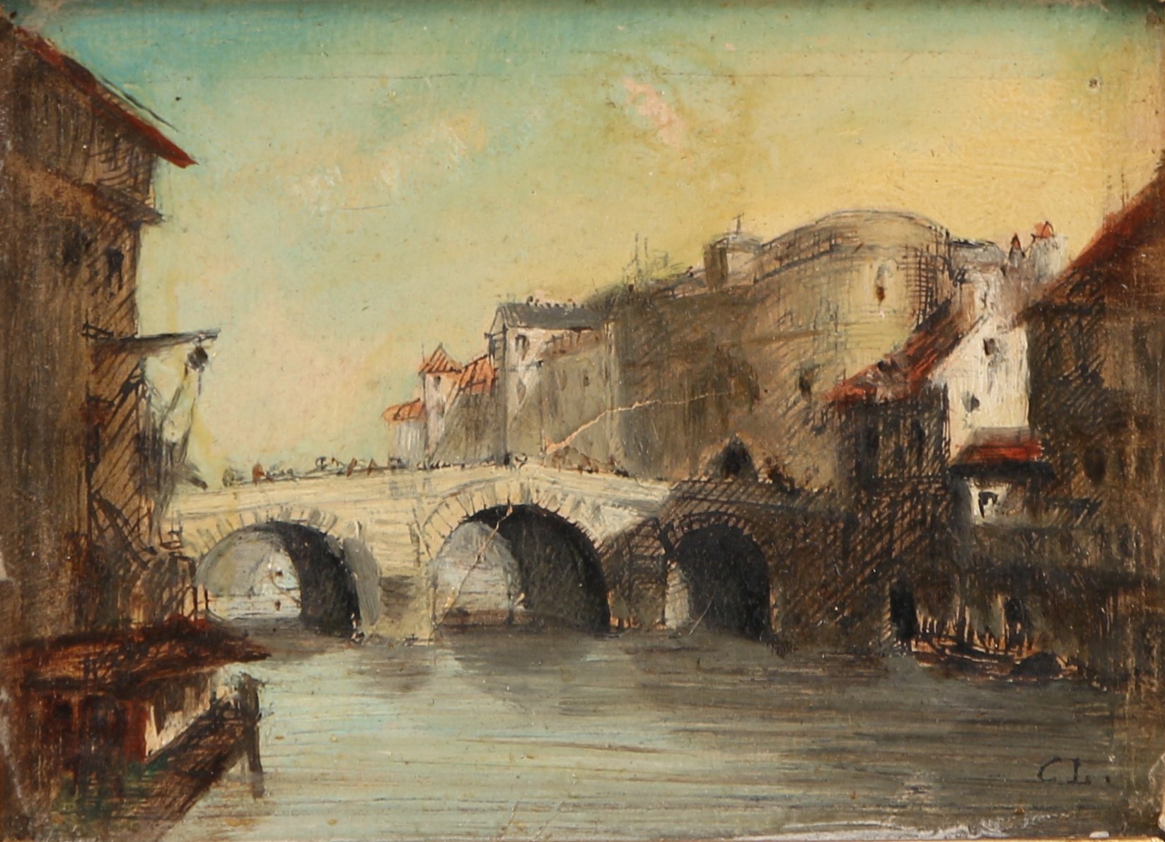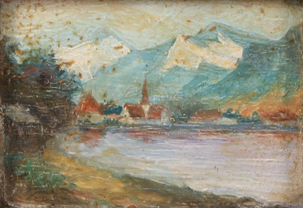 JOINT: Charles LECOUR, Deux paysages, huiles sur carton, un monogrammé CL en bas à droite. 11,5 x 9 cm et 4,5 x 6 cm (une accidentée).