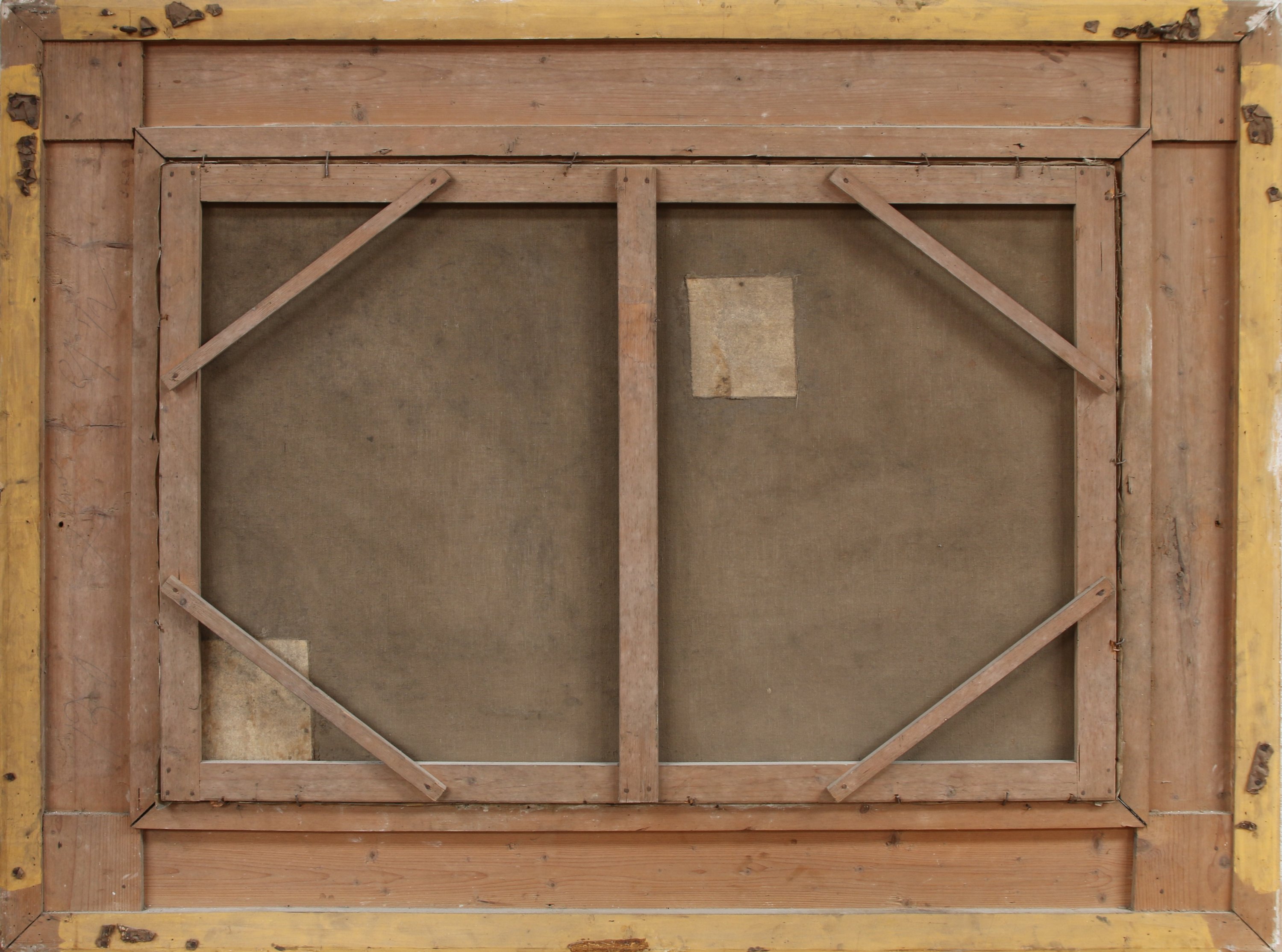 Important cadre en bois stuqué et doré. Haut. 137, Larg. 177 cm.