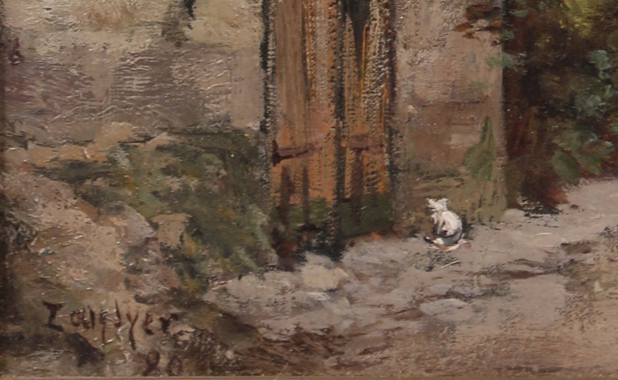 Le même chat blanc assis dans la même position est reproduit sur le parapet de la maison Pescherard deux ans plus tard en 1882 vue sous un autre angle et reproduit p. 68-69 in Diane de Blacas, "Lansier le maître du Luminisme, édité par Jean-Paul Paireault chez concept-image, Cigogné, 2004.