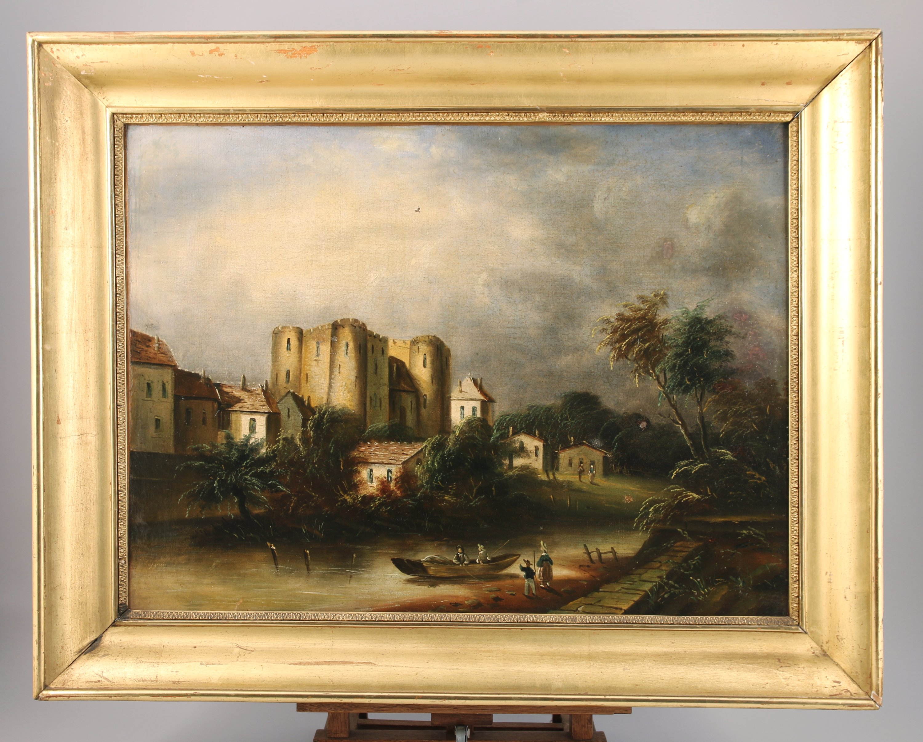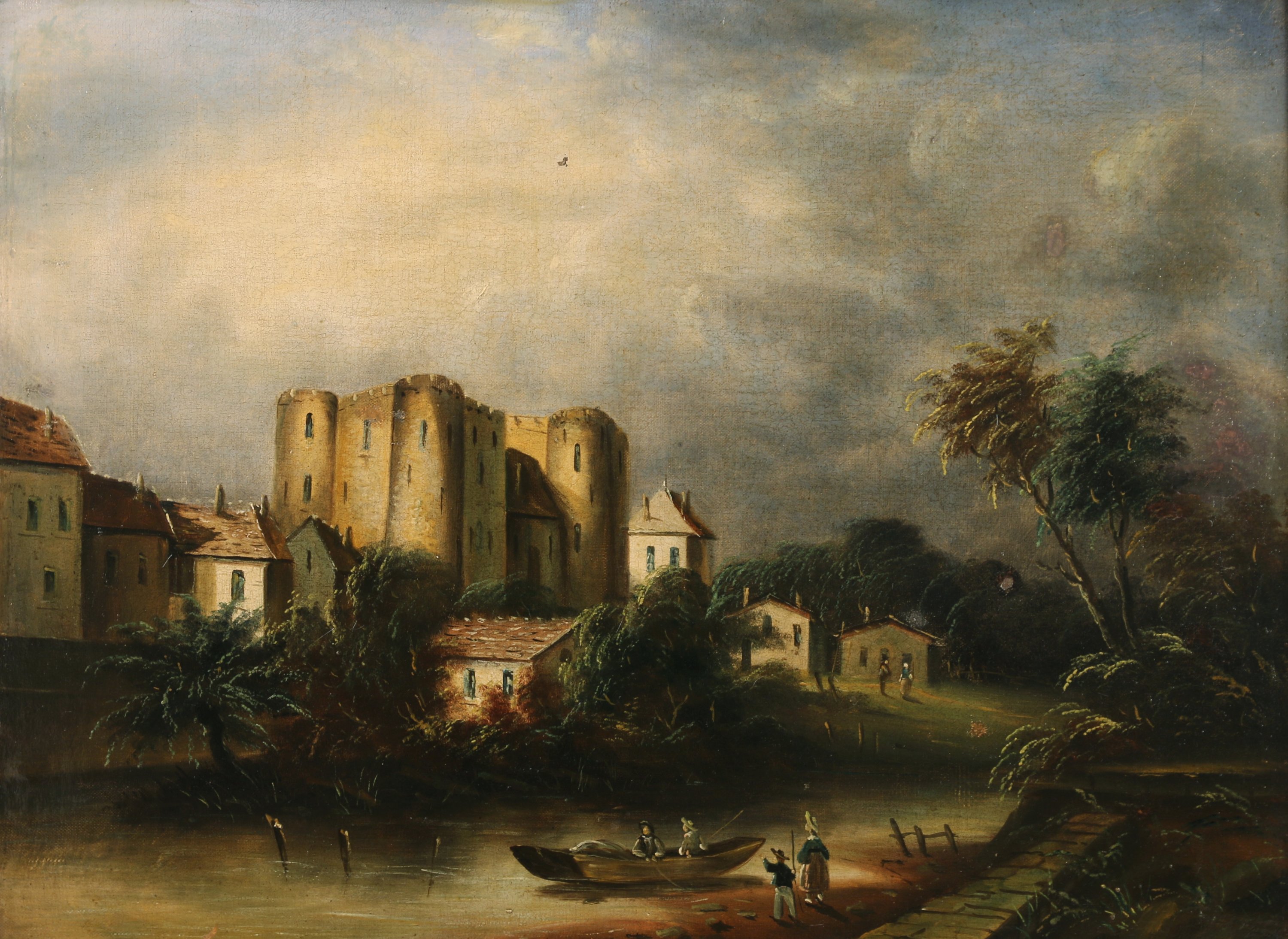 Chateau-fort en bord de rivière animé.
