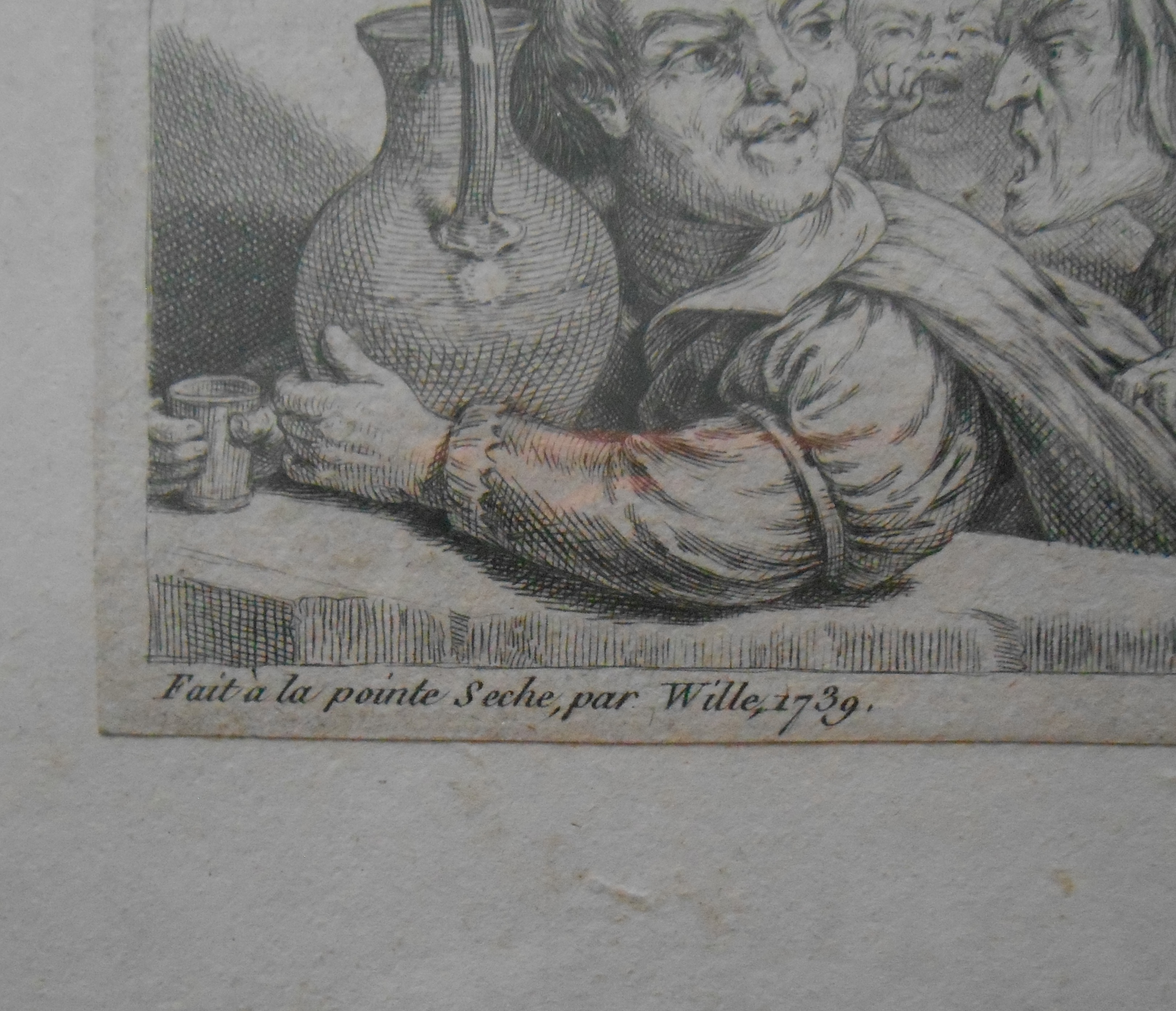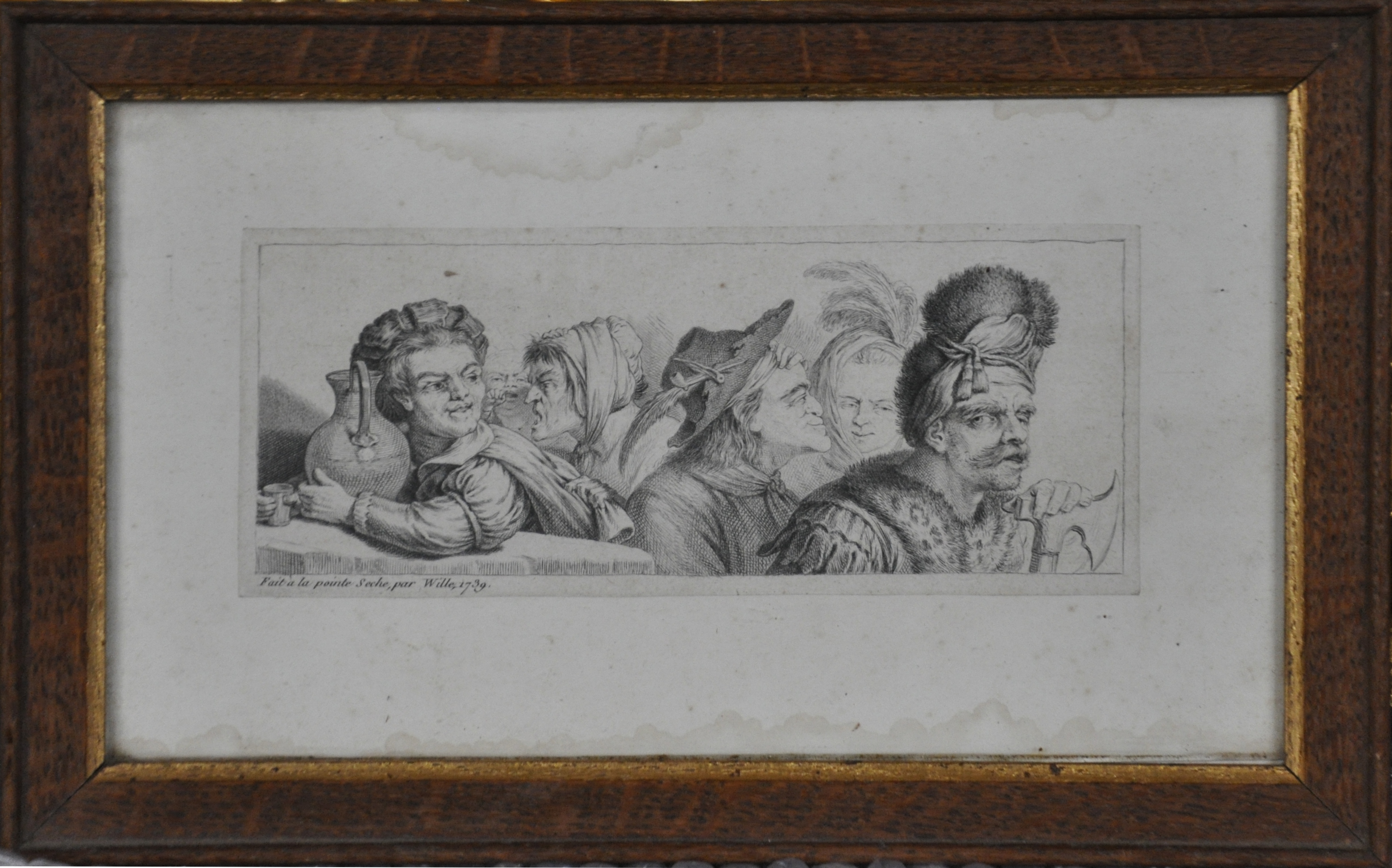 Jean-Georges WILLE (1715-1808)Personnages, 1739.Pointe sèche. Haut. 7,5, Larg. 18 cm.