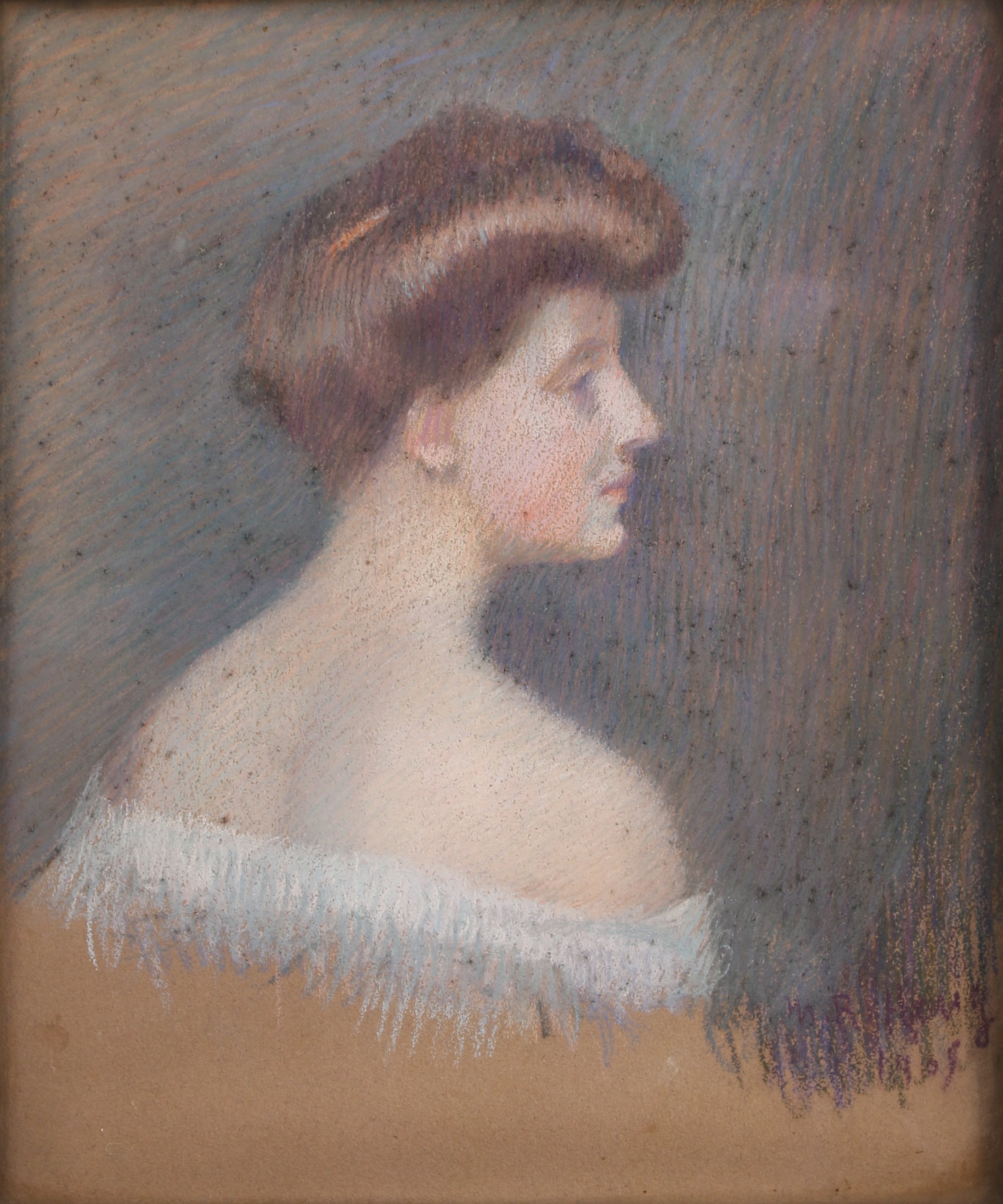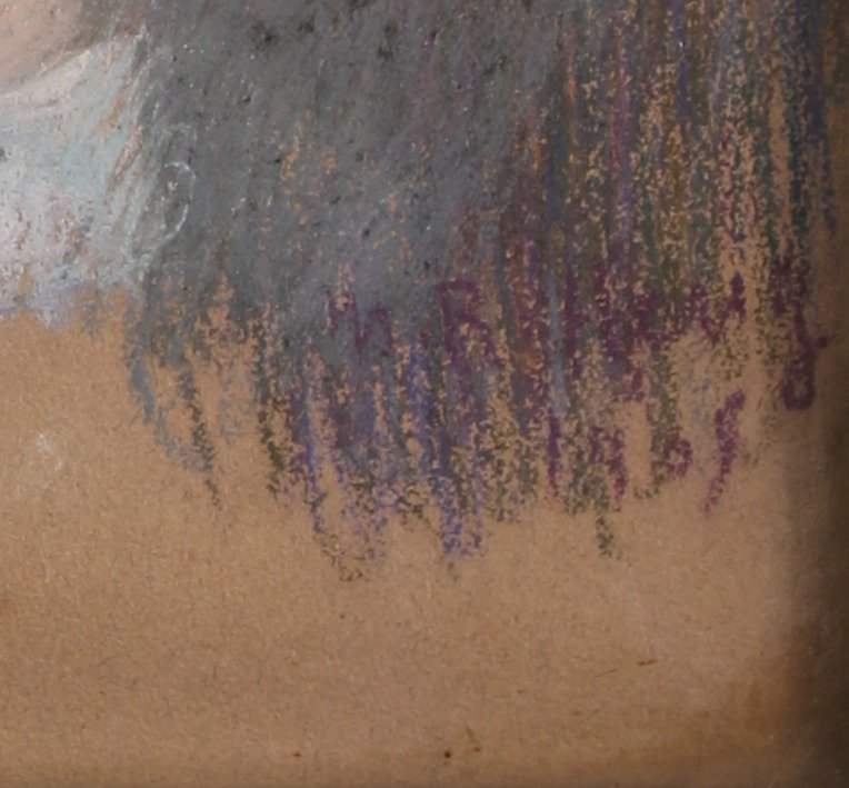 - PORTRAIT de dame de profil en buste. Pastel signé et daté 1905 en bas à droite. Haut. 37,5, Larg. 31 cm. (piqûres)