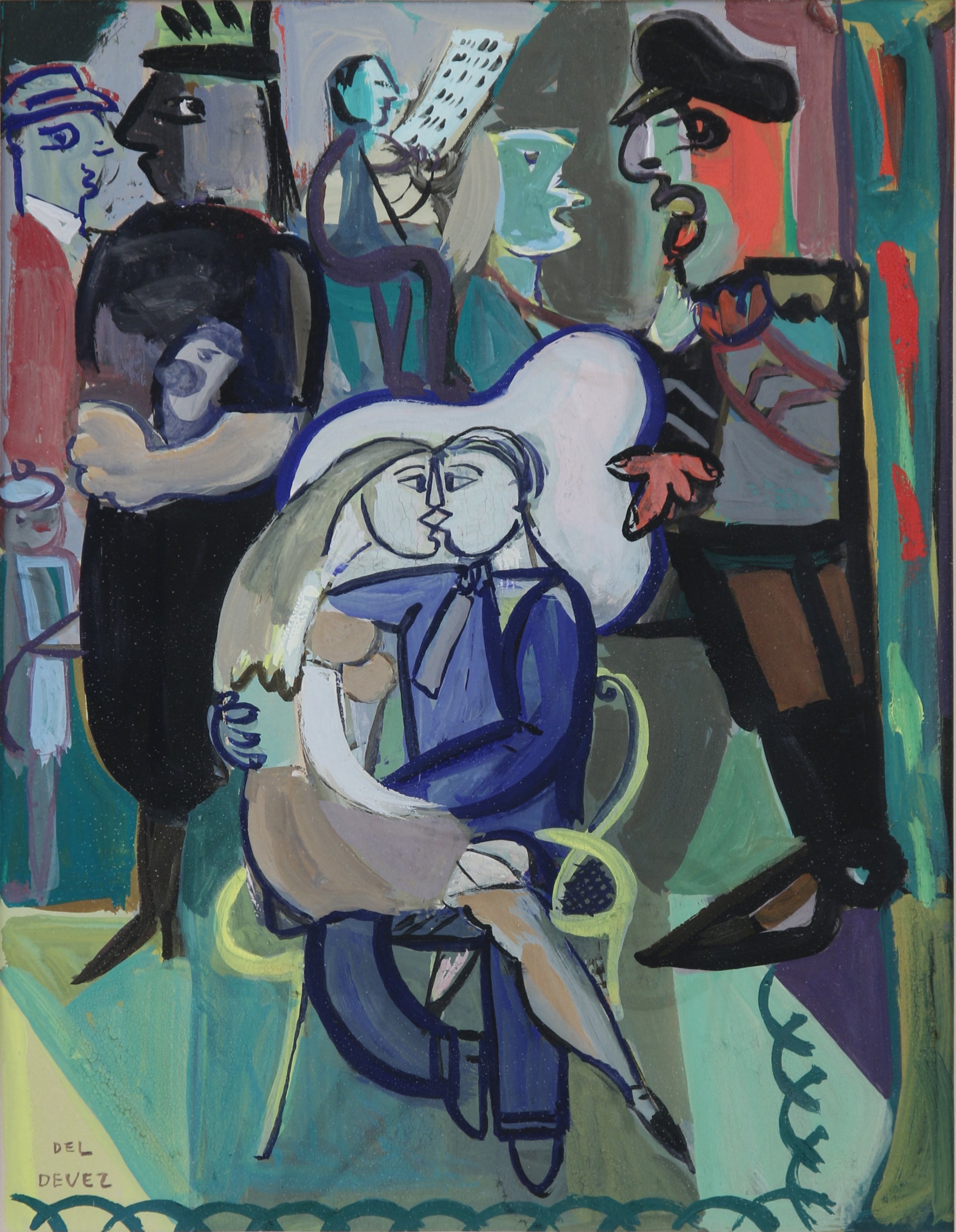 Jean DEL-DEVEZ (Paris, 1910-1983)Le baiserGouache, signée en bas à gauche.Haut....