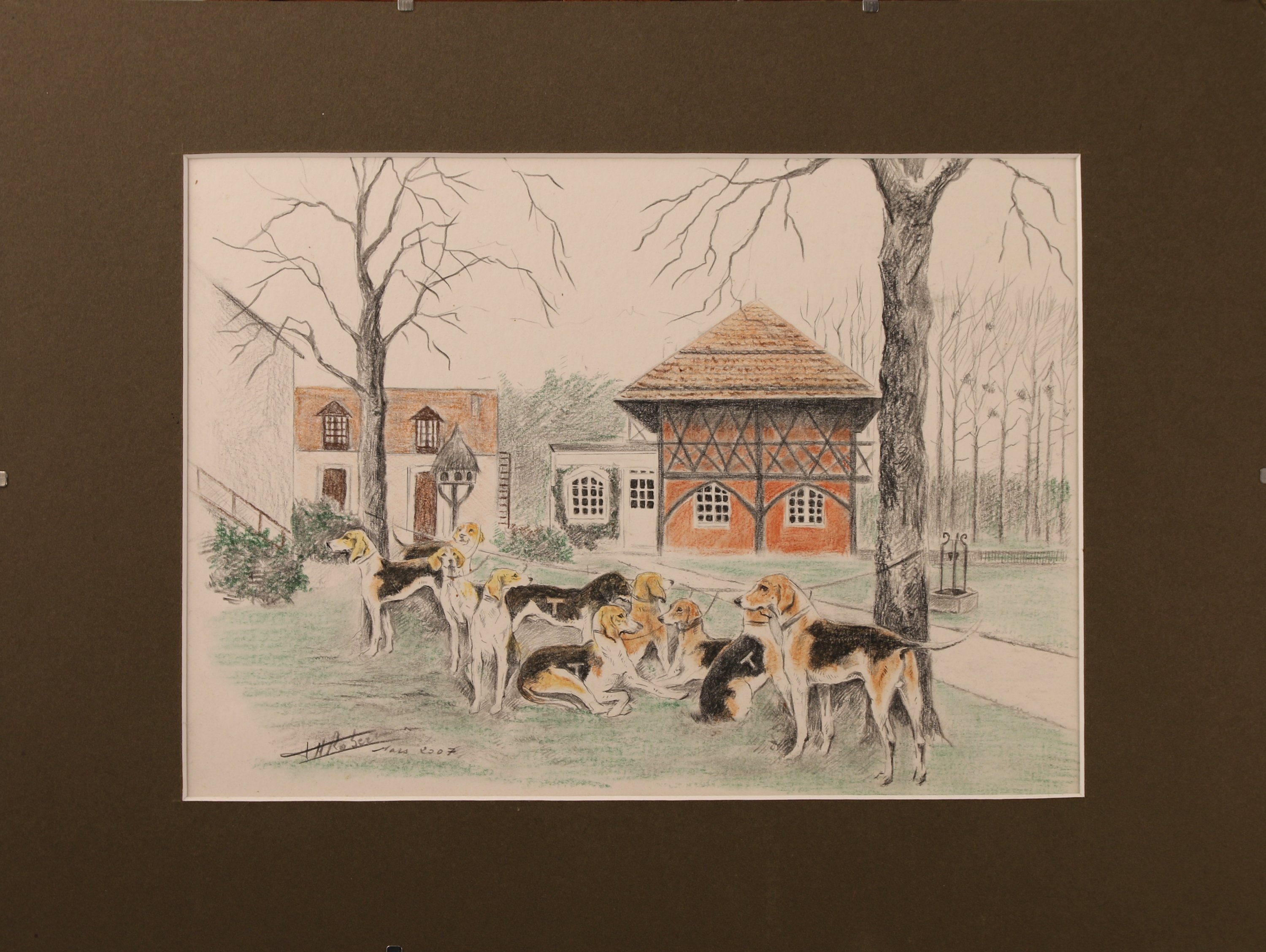 JOINT: une lithographie représentant une "Attaque" du Rallye Touraine en 1985 avec Mme Robert Cheuvreux et Me Bruno Cheuvreux" (25 x 35 cm) une reproduction en couleur d'une oeuvre de Karl Reille (13 x 18cm)