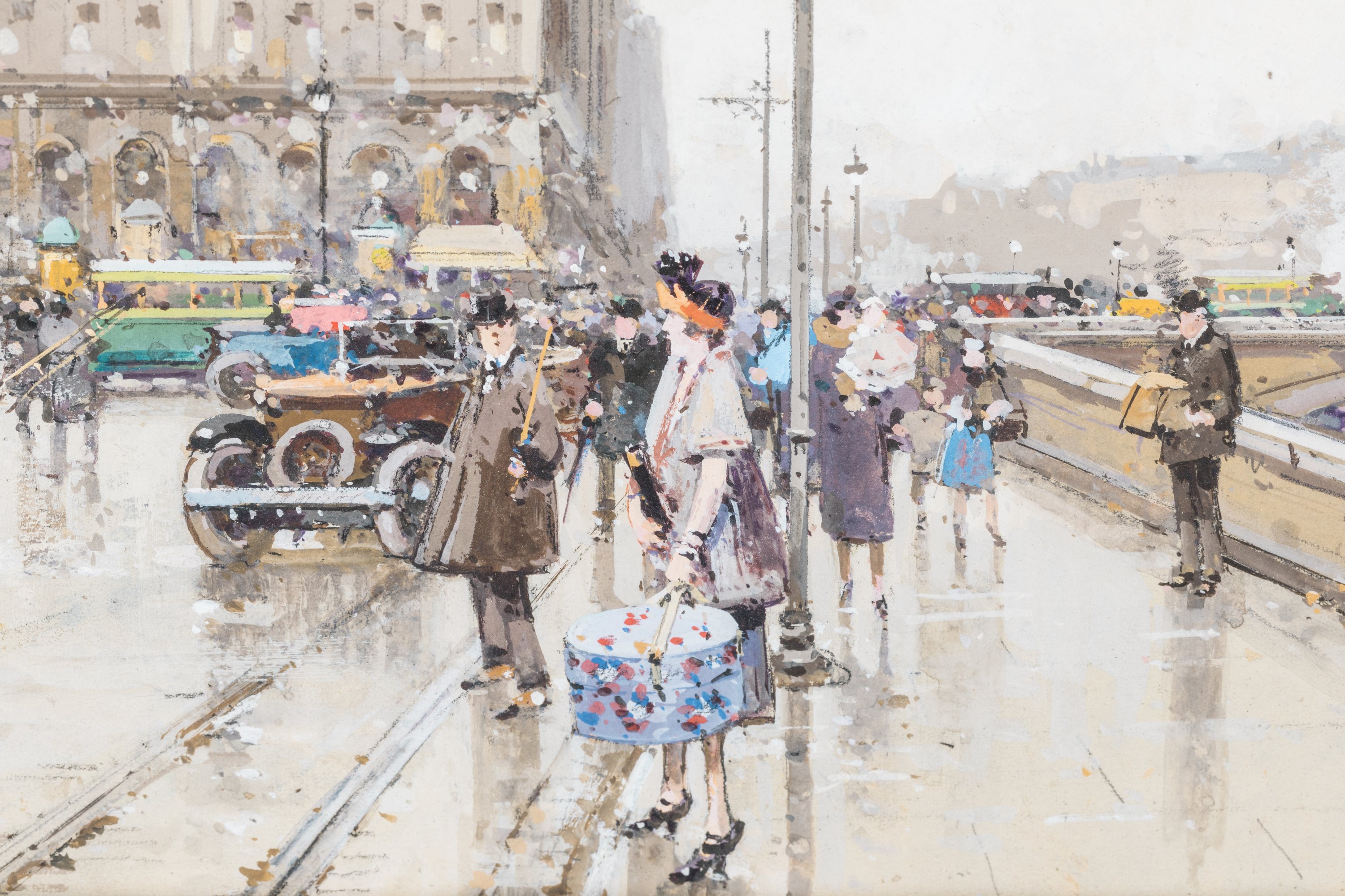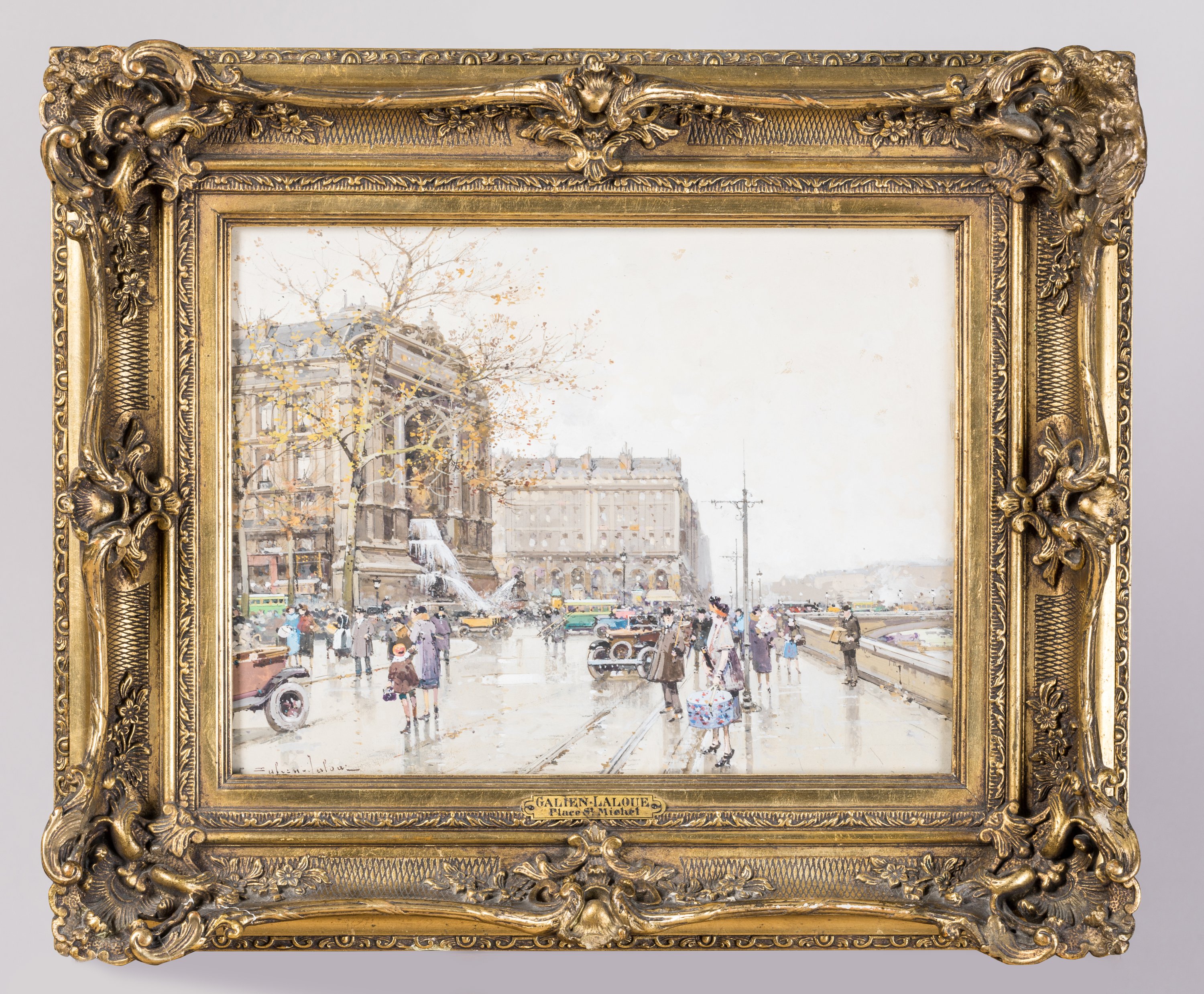 Eugène GALIEN-LALOUE. Paris, la place Saint-Michel. Watercolour and gouache signed lower left.