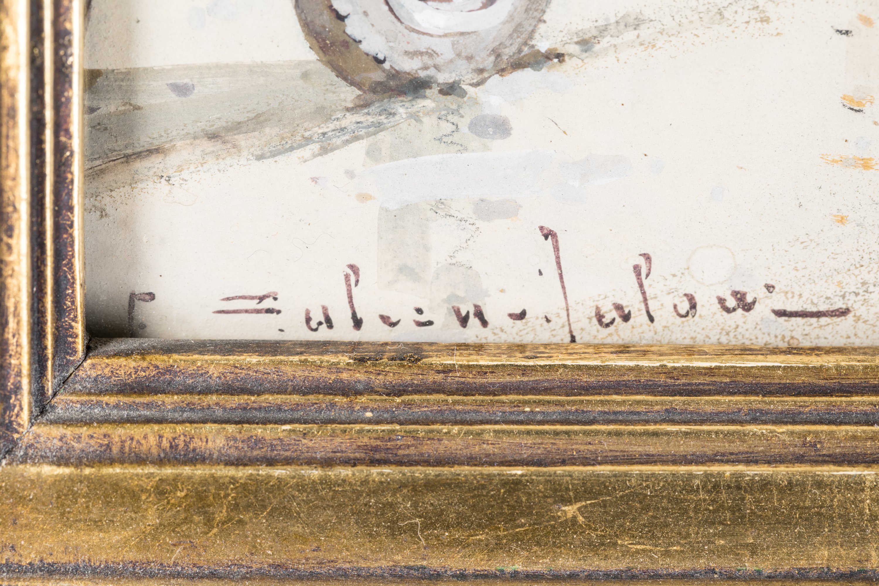 Aquarelle gouachée. Signée en bas à gauche.