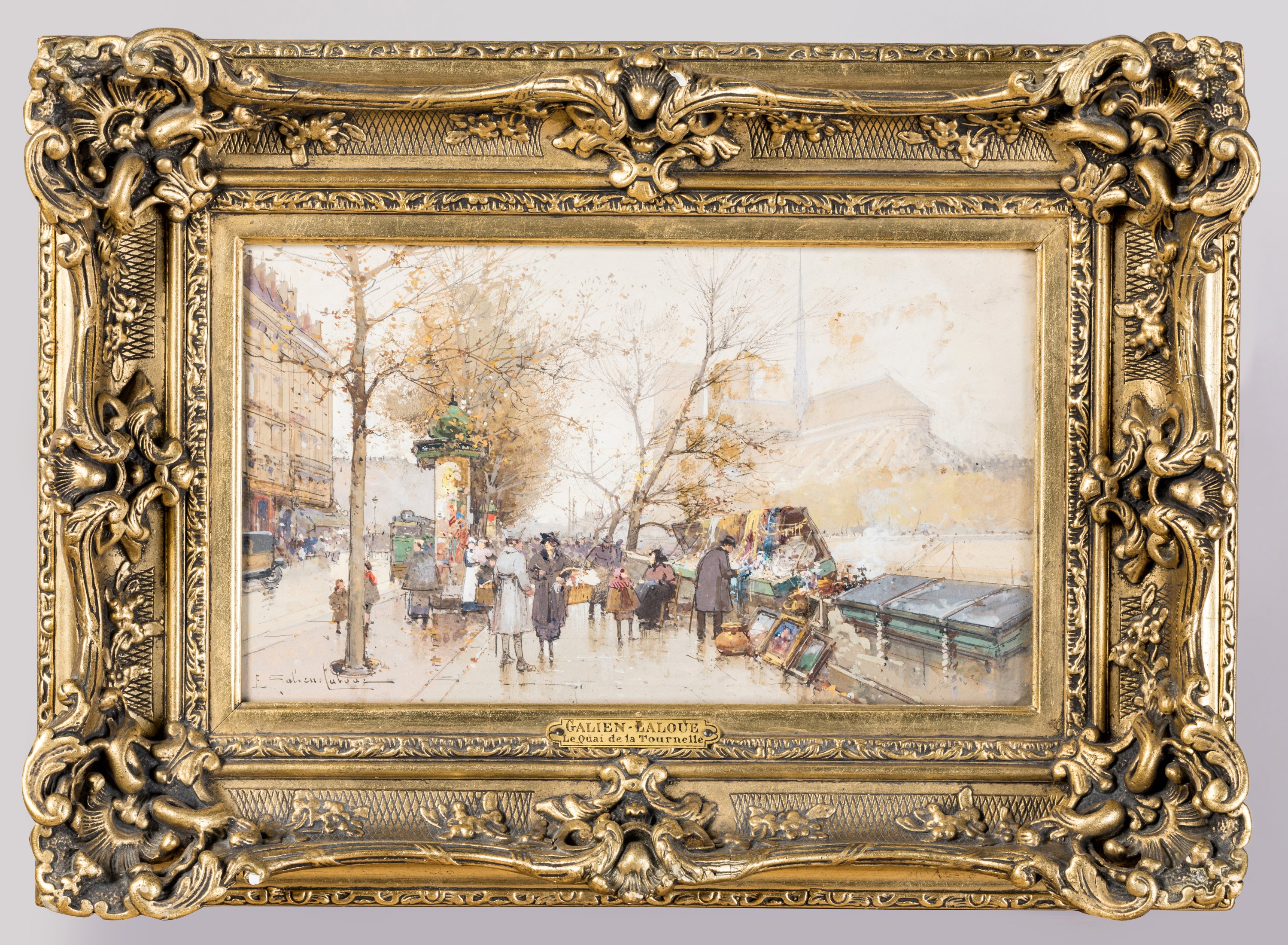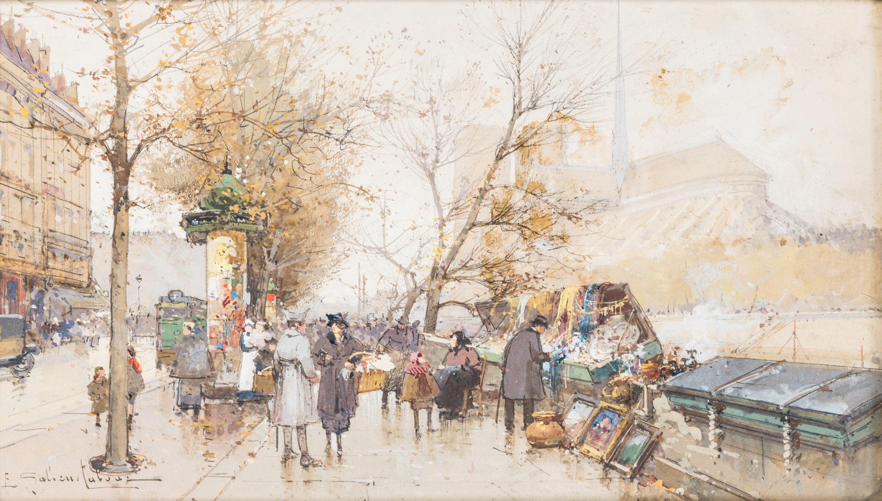 Eugène GALIEN-LALOUE. Paris, le quai de la Tournelle. Watercolour and gouache signed lower left.