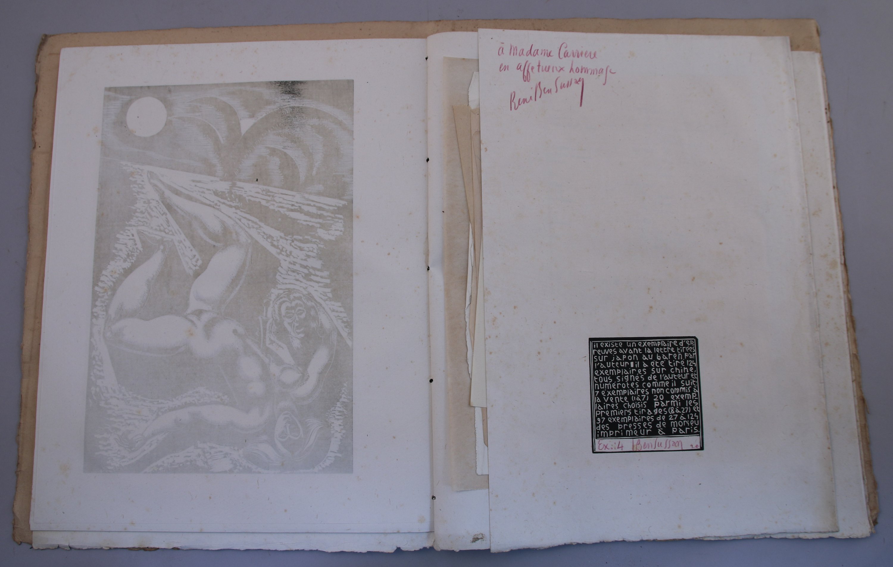 Tirage sur chine, signé par l'artiste, porte le n° 14 et une dédicace au crayon de couleurs. Petites rousseurs éparses, quelques mouillures. Couverture de papier portant le titre. Paris, Imprimerie Morieu, (1930),