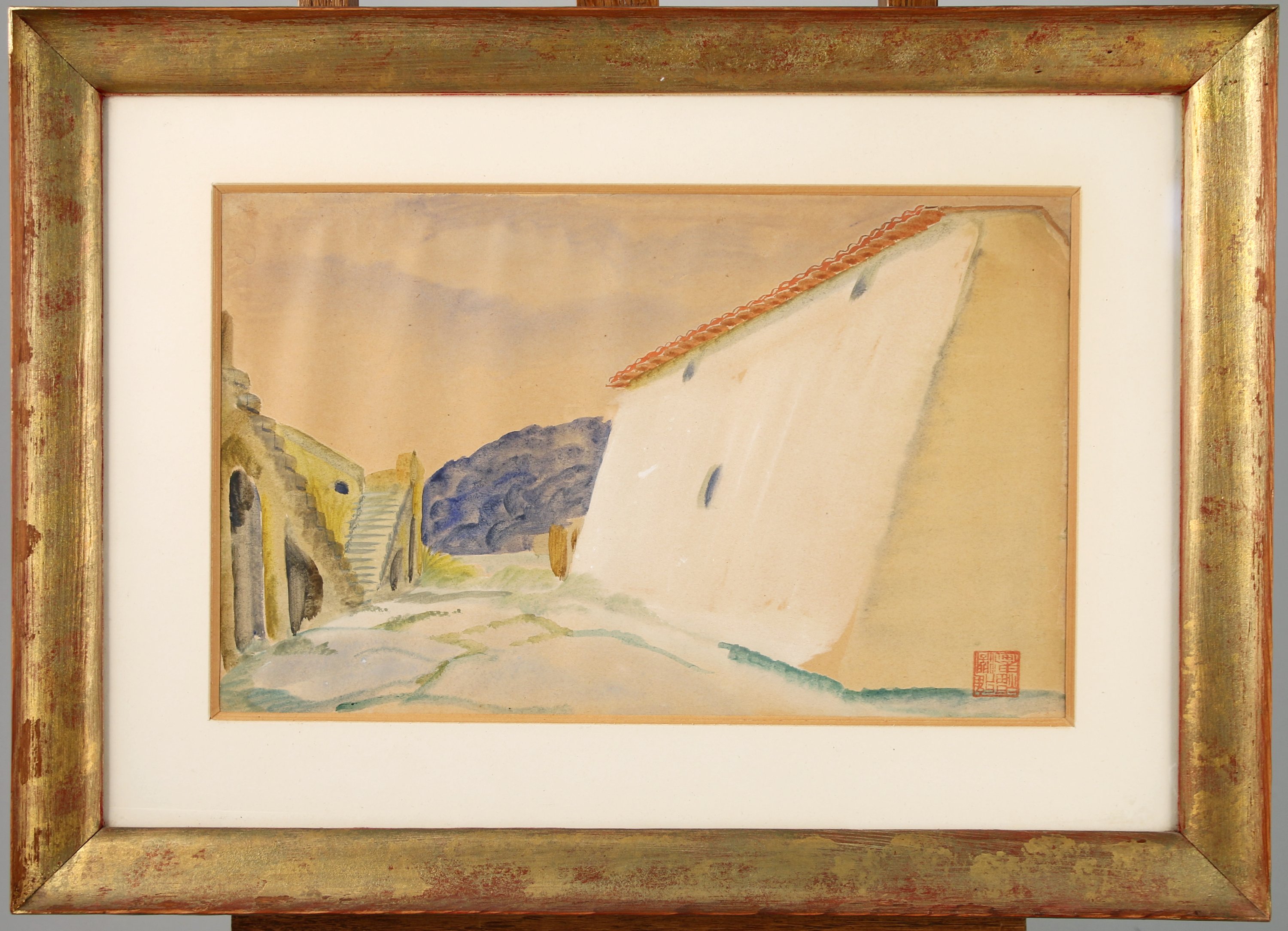 Aquarelle, signée du cachet monograme chinois de l 'artiste en bas à droite.