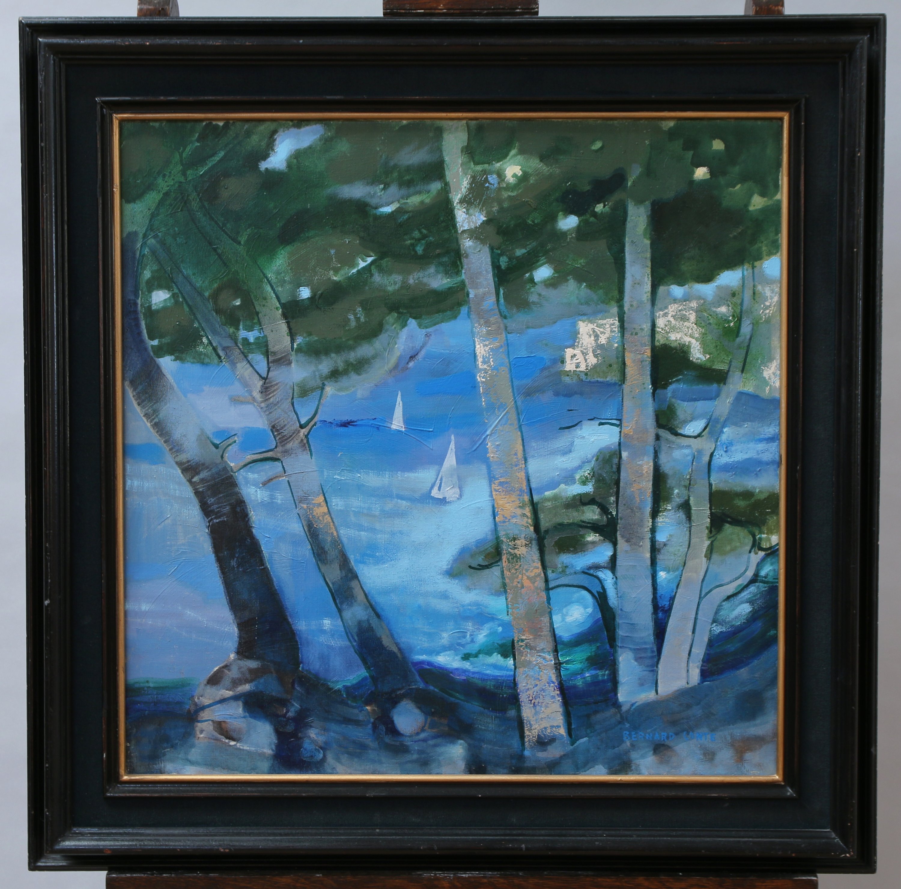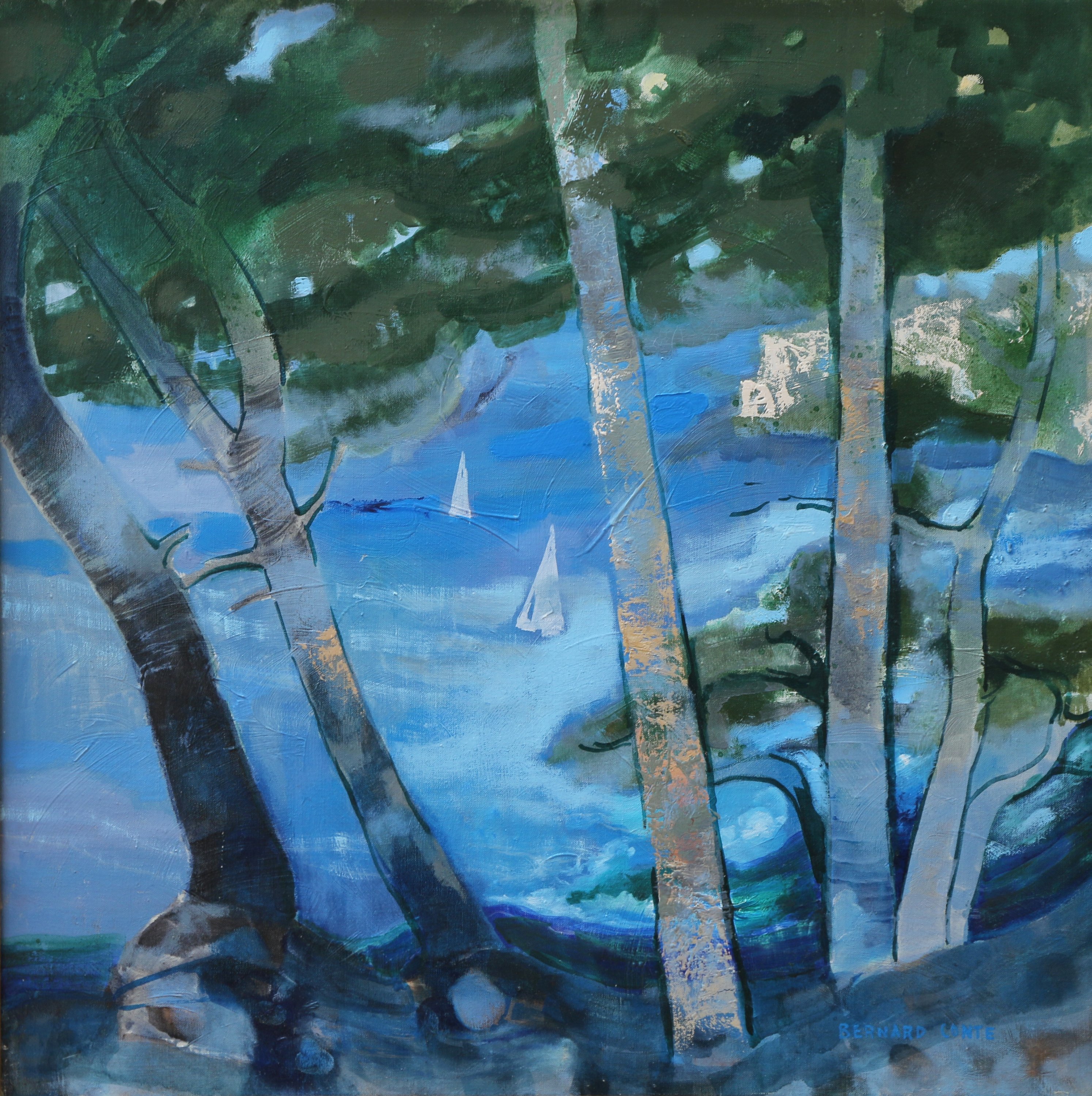 Bernard CONTE (1931-1995)Bateaux vus à travers les arbresHuile sur toile,...