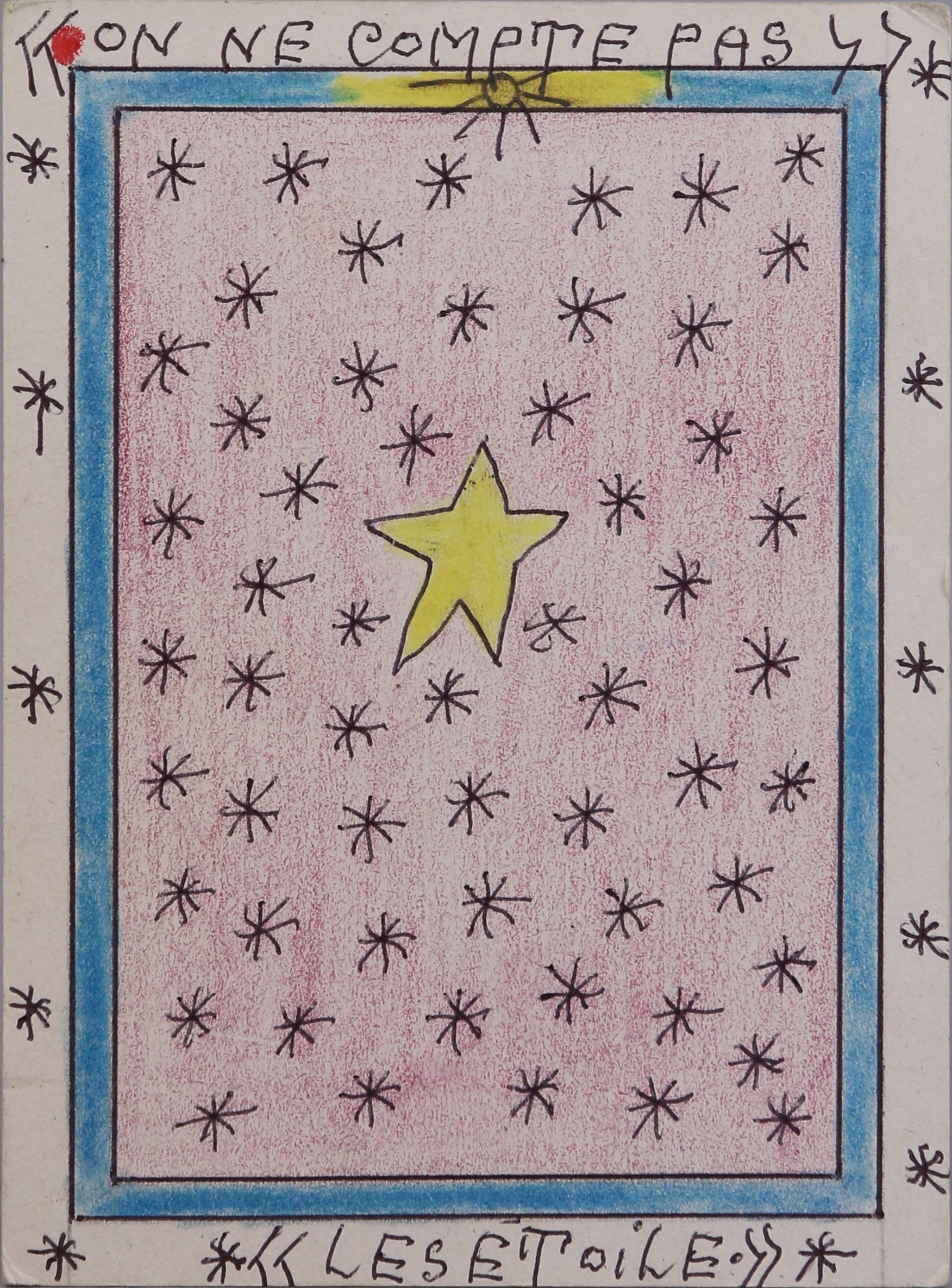 Trois dessins au stylo et crayons de couleur sur papier cartonné. Signés "FBBruly" et datés au dos.