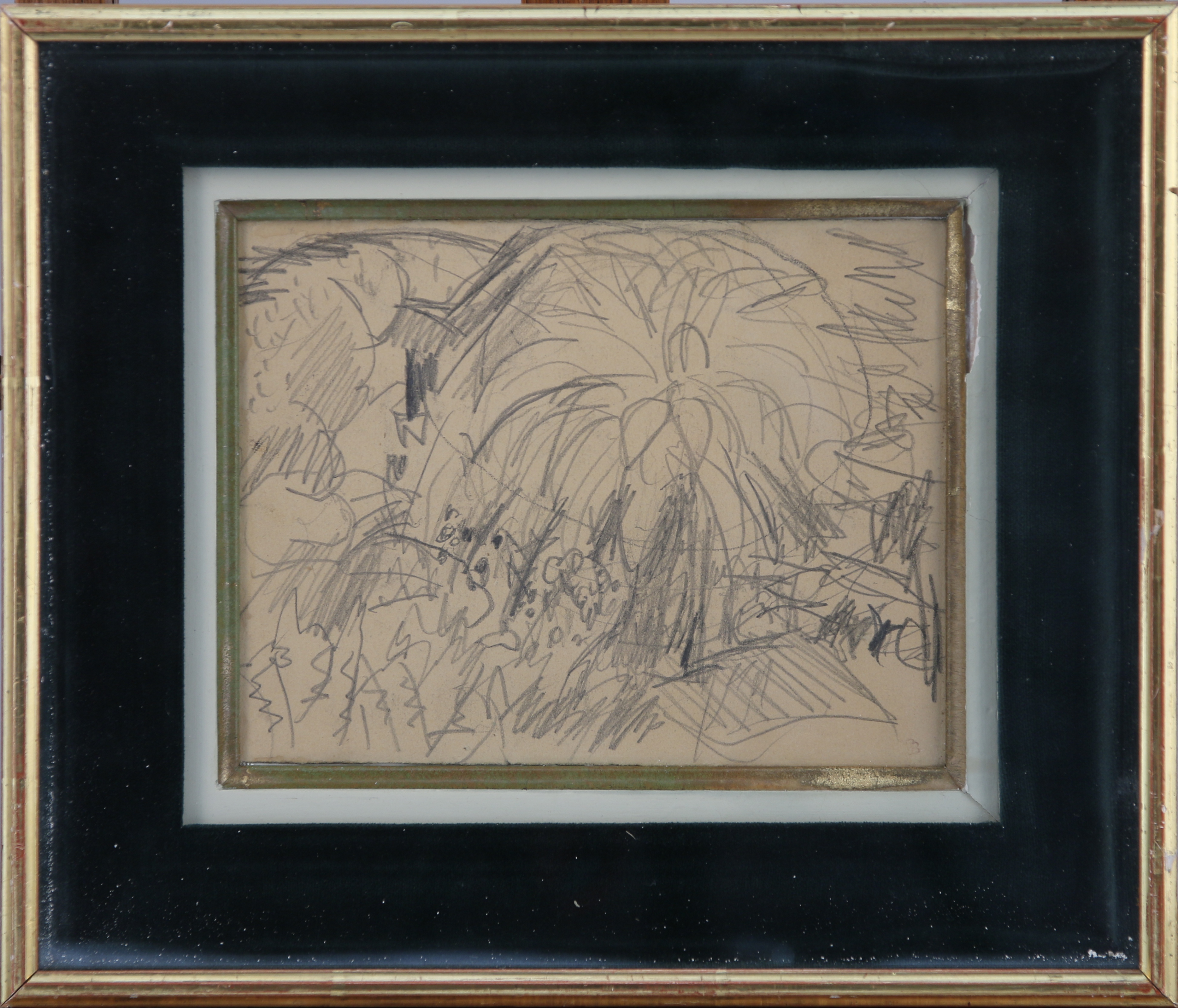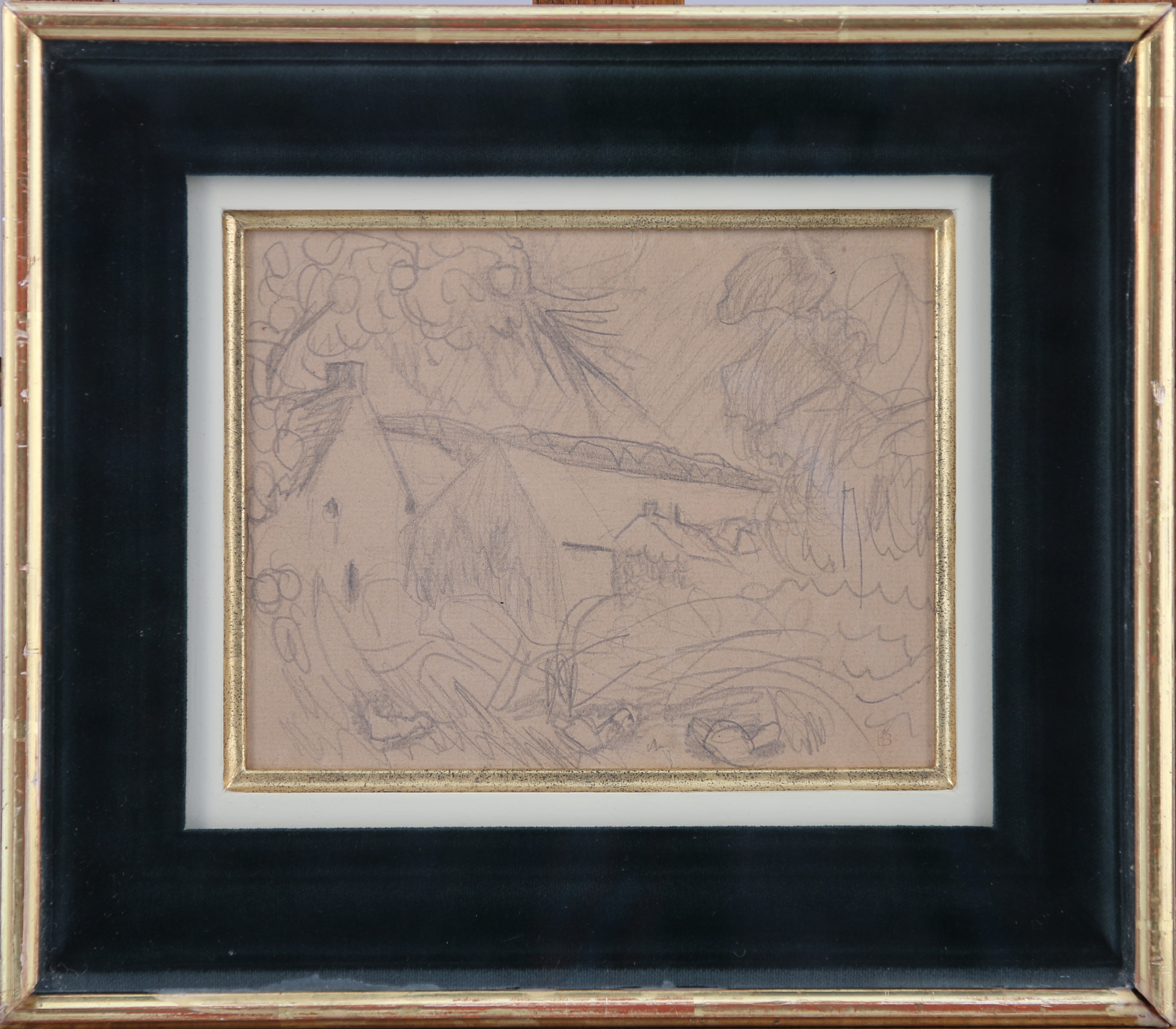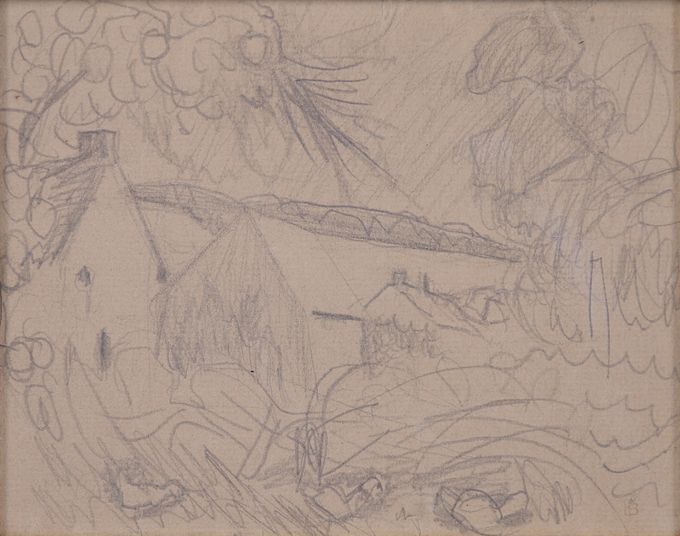 Deux dessins à la mine de plomb avec le tampon de l'atelier en bas à droite.