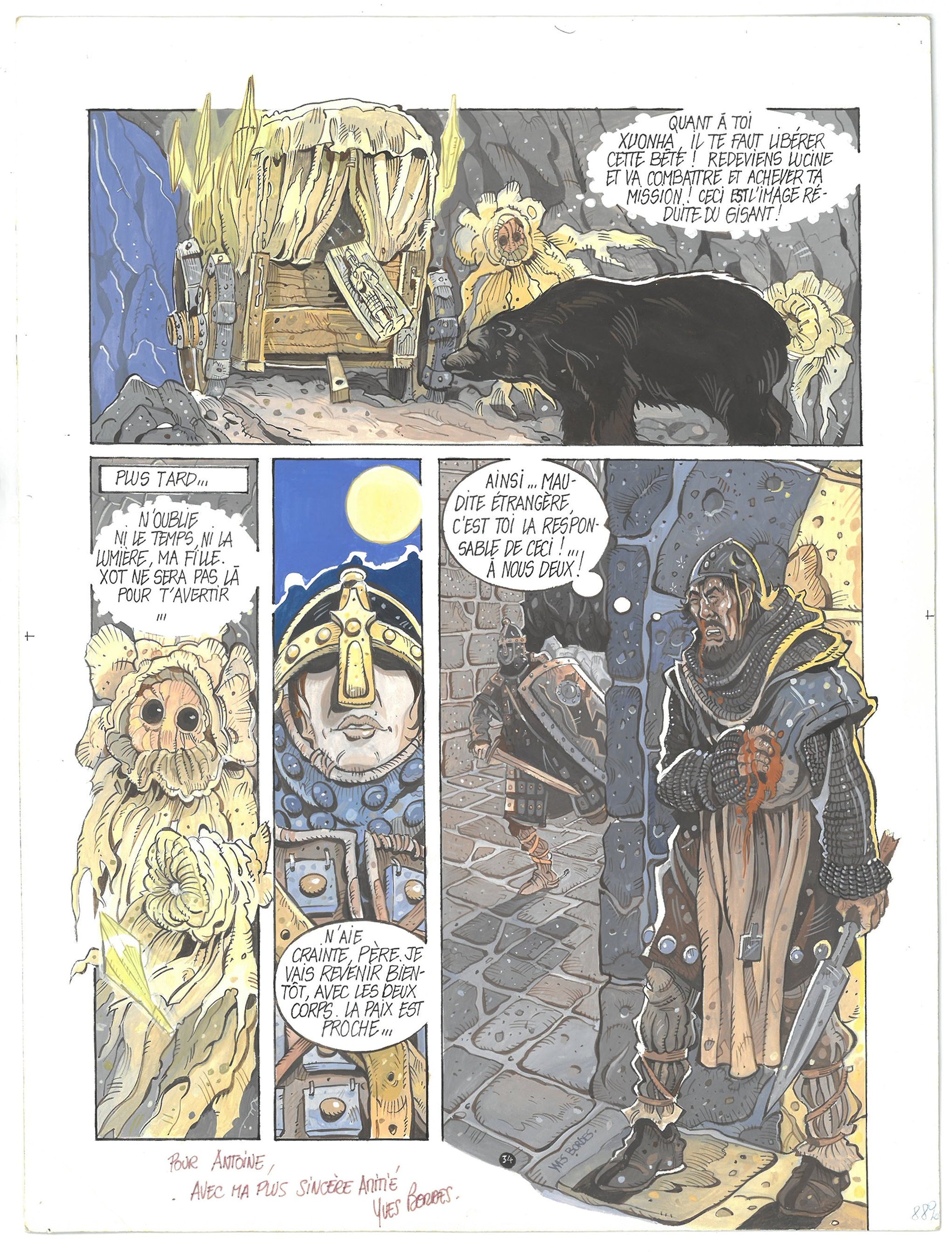 Planche couleur. Papier signé et dédicacé "Pour Antoine, Avec ma plus sincère amitié Yves Bordes."
