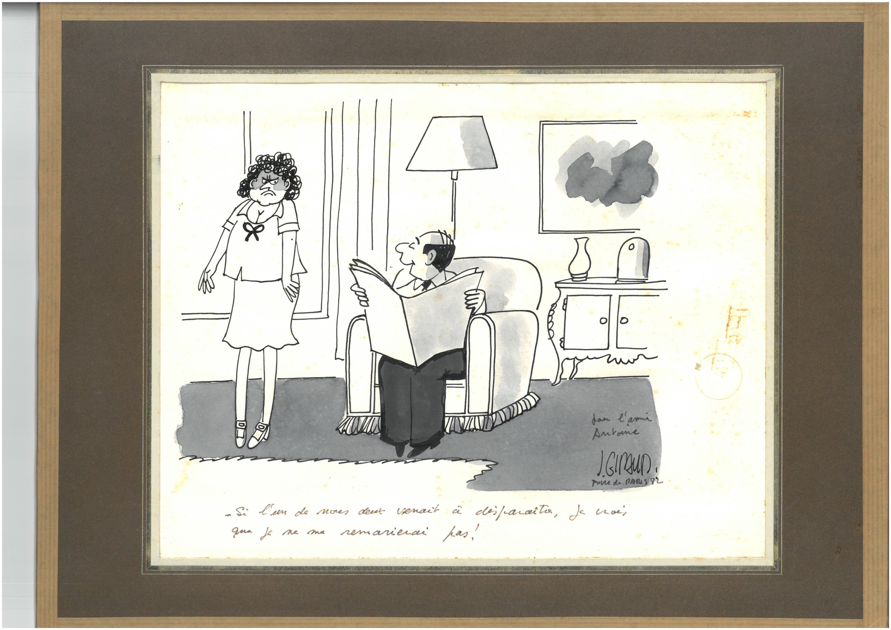 Dessin de presse. Signé et dédicacé "Pour l'ami Antoine, Foire de Paris 82".