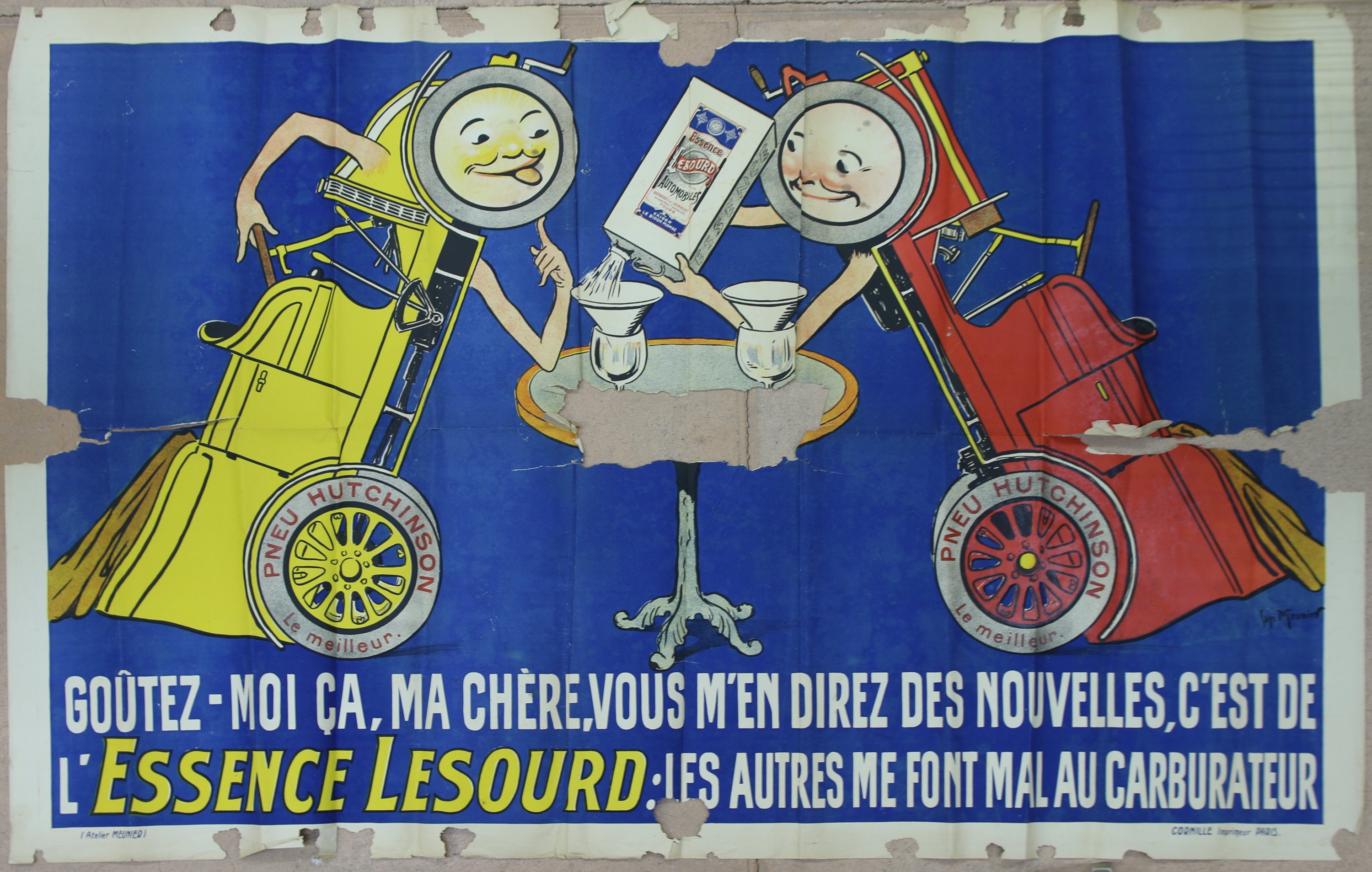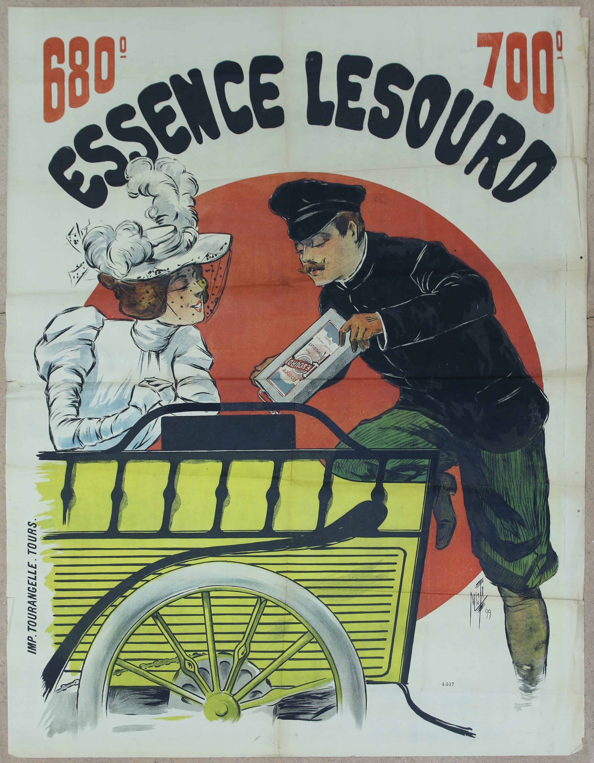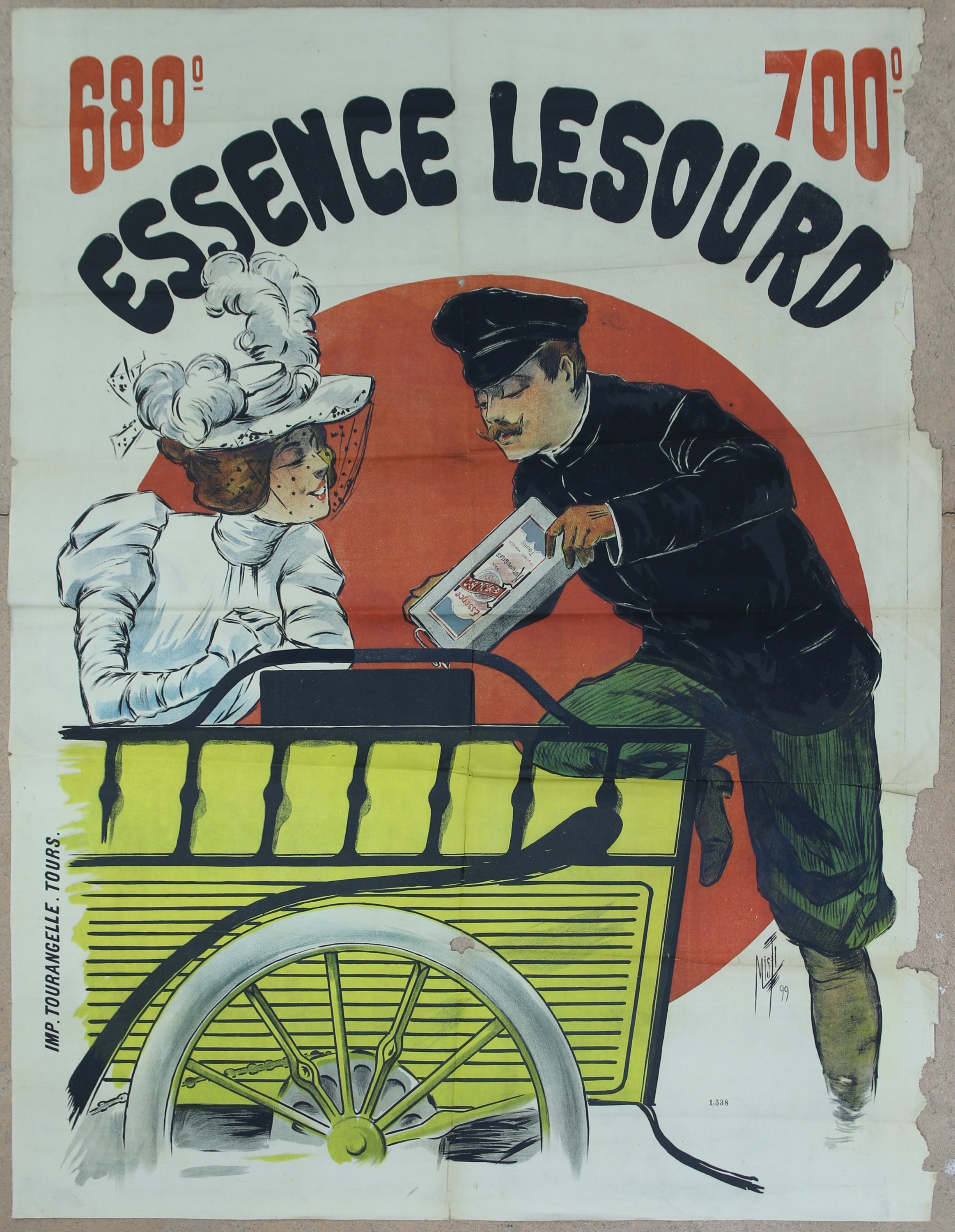 JOINT: DEUX AFFICHES SIMILAIRES; une AFFICHE pour l'essence Lesourd par Meunier (140,5 x 220 cm) et une AFFICHE pour Splendid Light par Capelli (195 x 130 cm). En l'état.