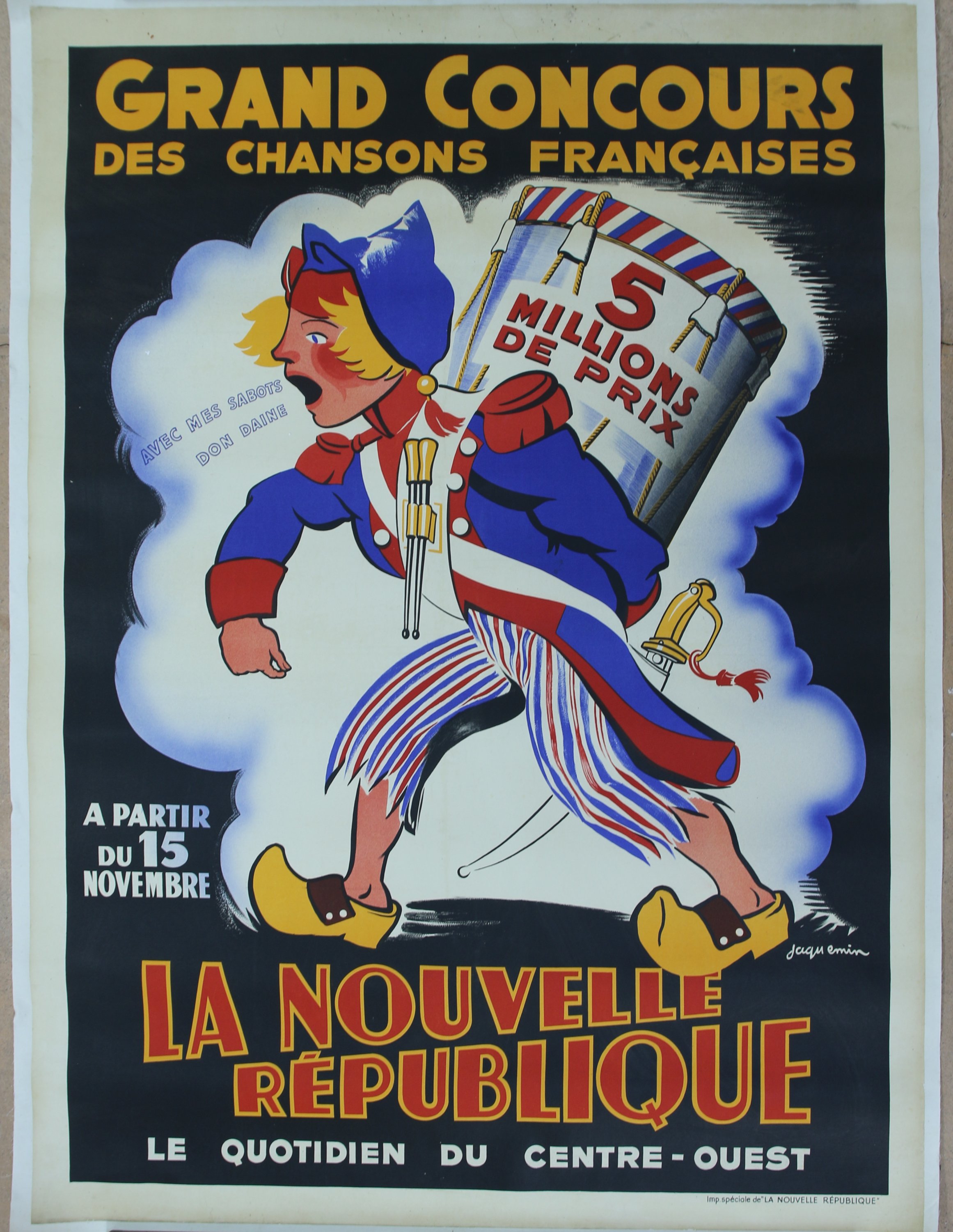 - D'après JAQUEMIN, La nouvelle République, grand concours des chansons françaises (Haut. totale 165, Larg. totale 124 cm.)