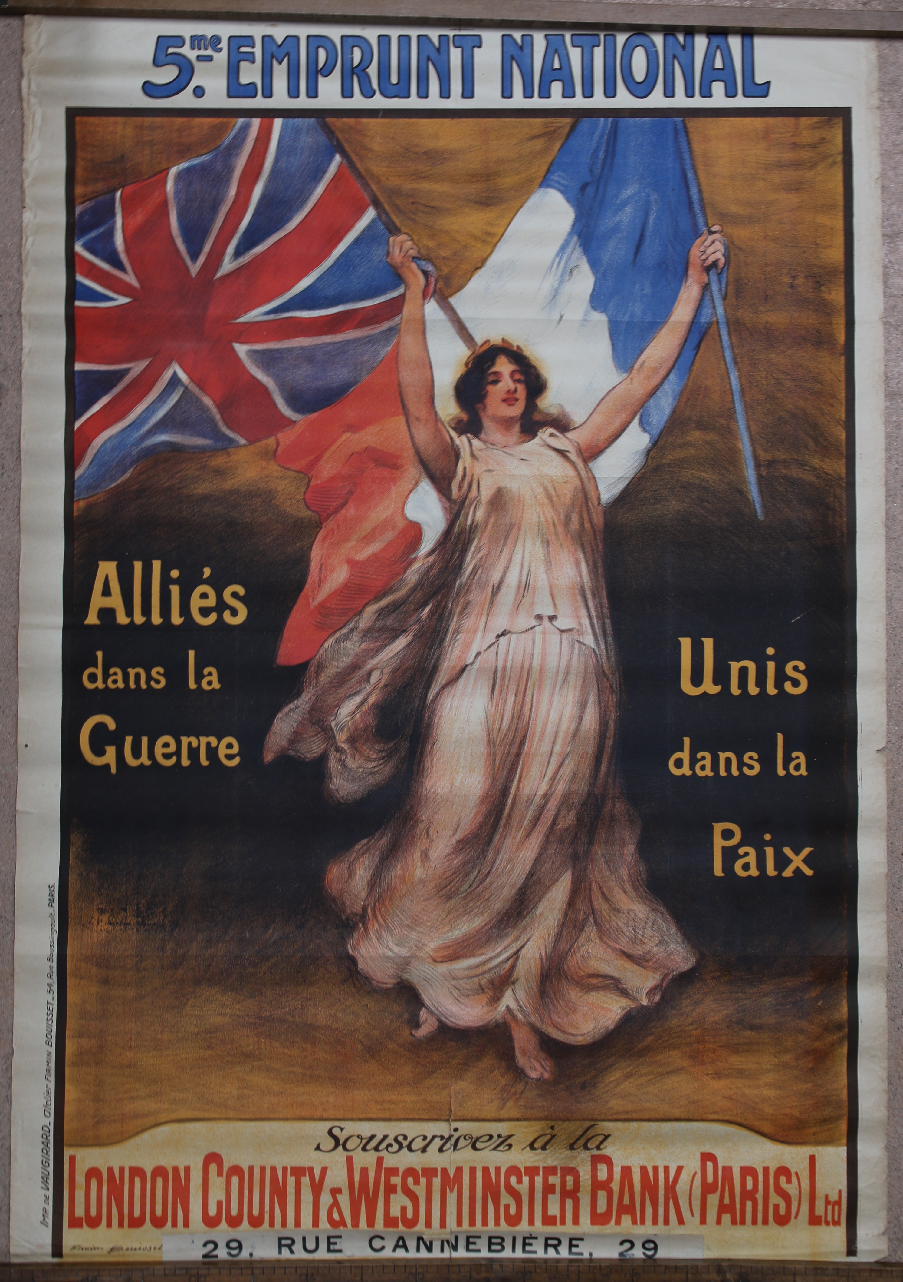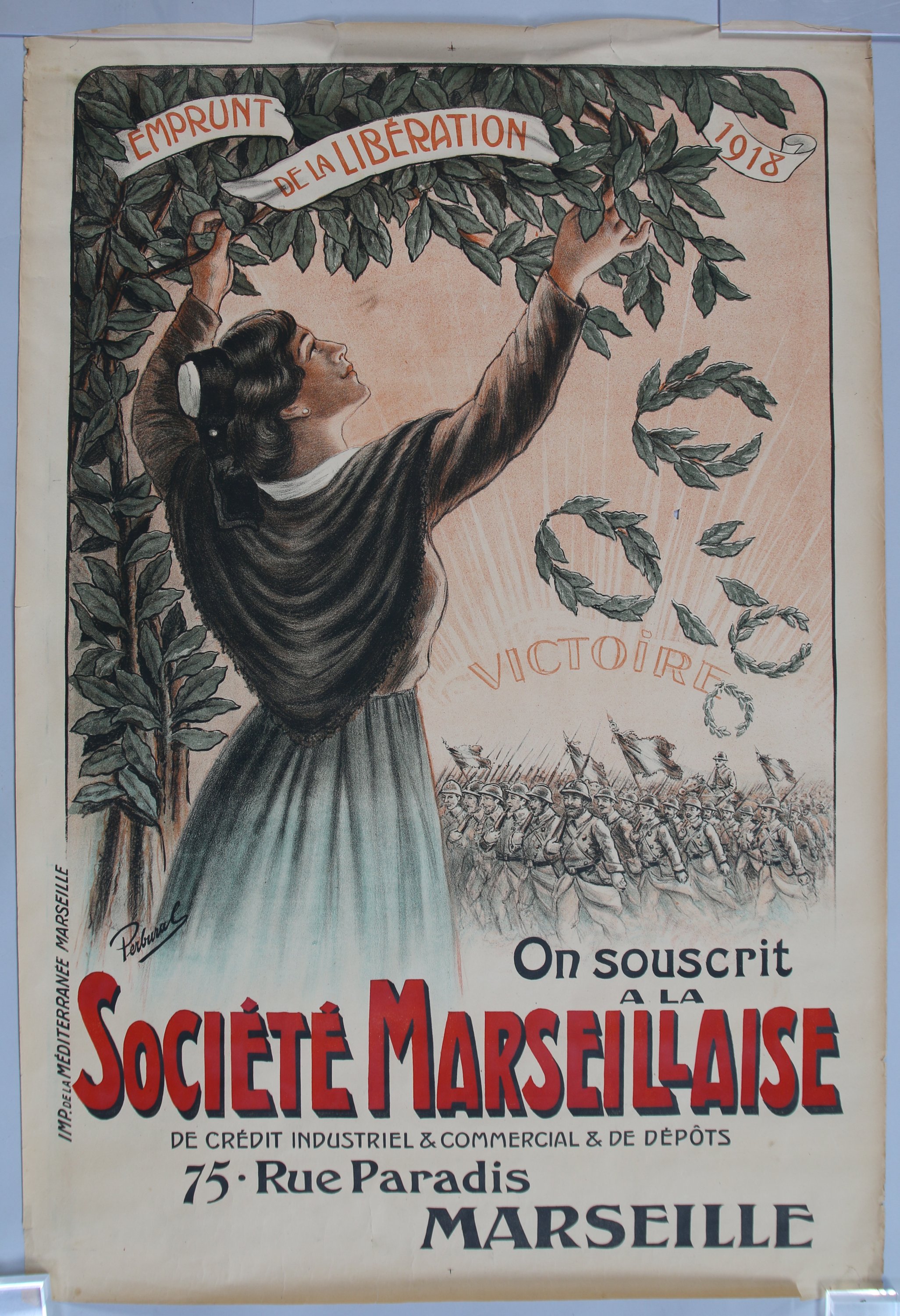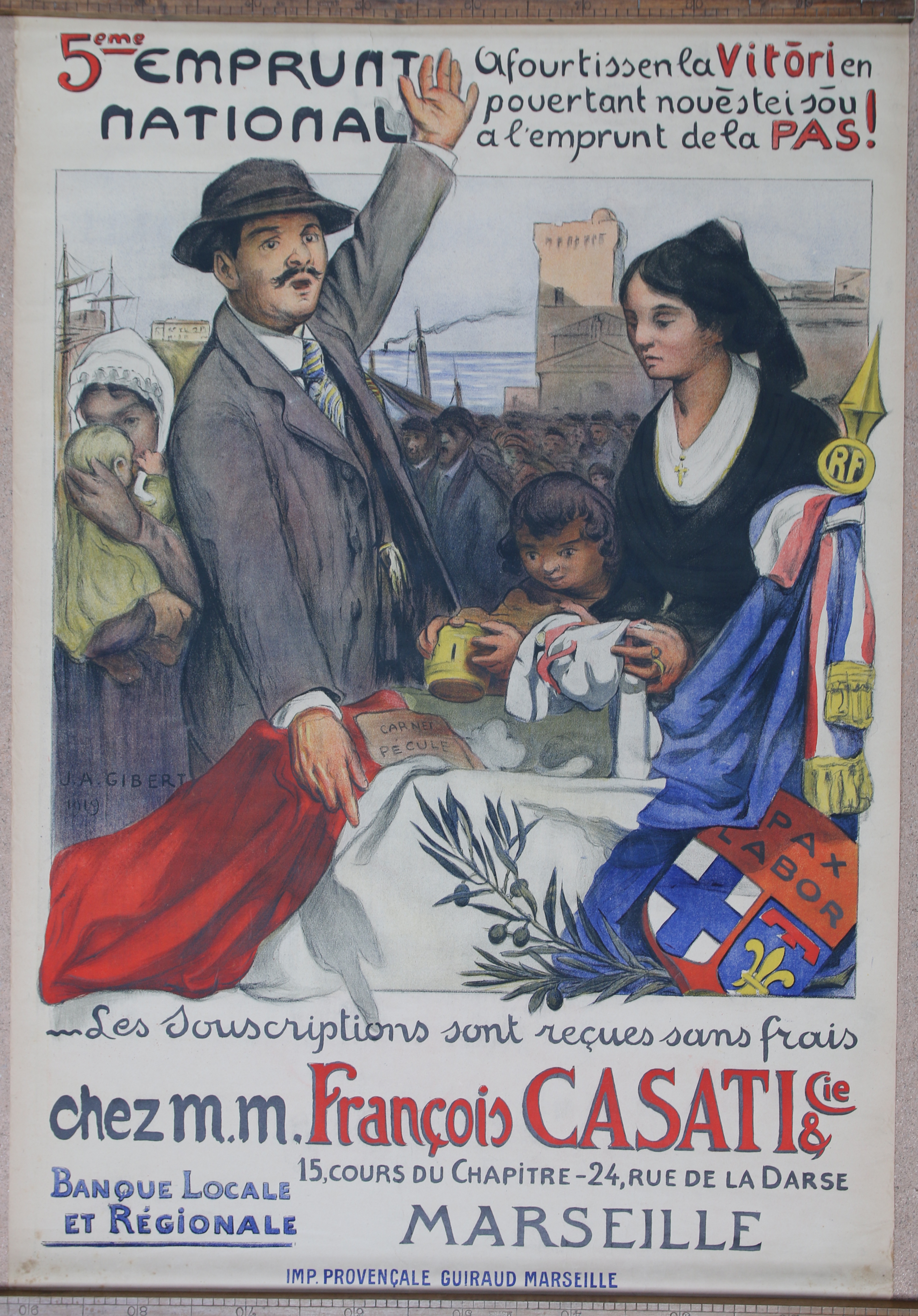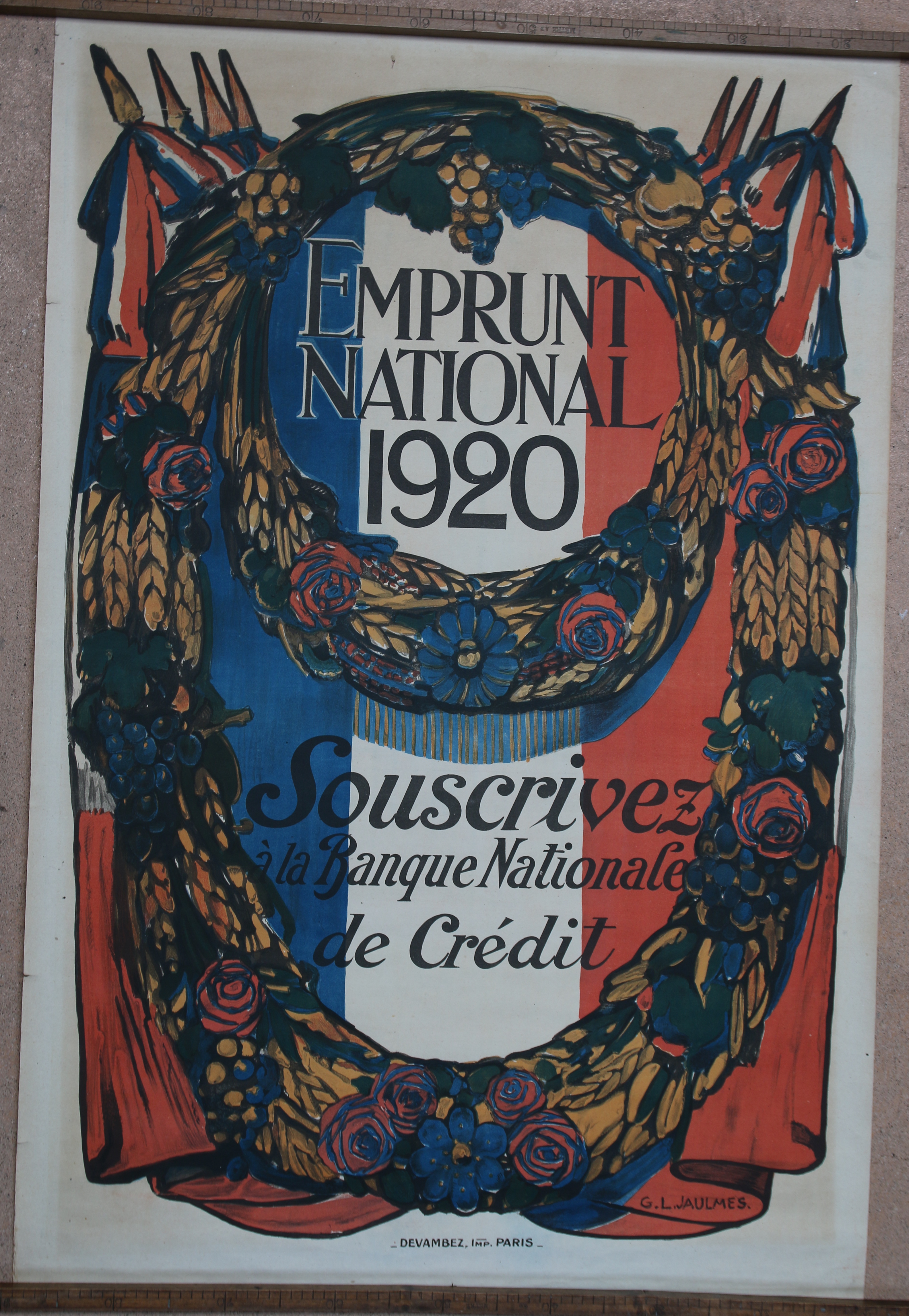 HISTOIRE BANCAIRE. Collection d'une centaine d'AFFICHES majoritairement sur le thème des EMPRUNTS BANCAIRES, nottament lors de la première guerre mondiale, mais aussi des établissements de crédit marseillais, du Sud de la France, d'Algérie et d'Italie.