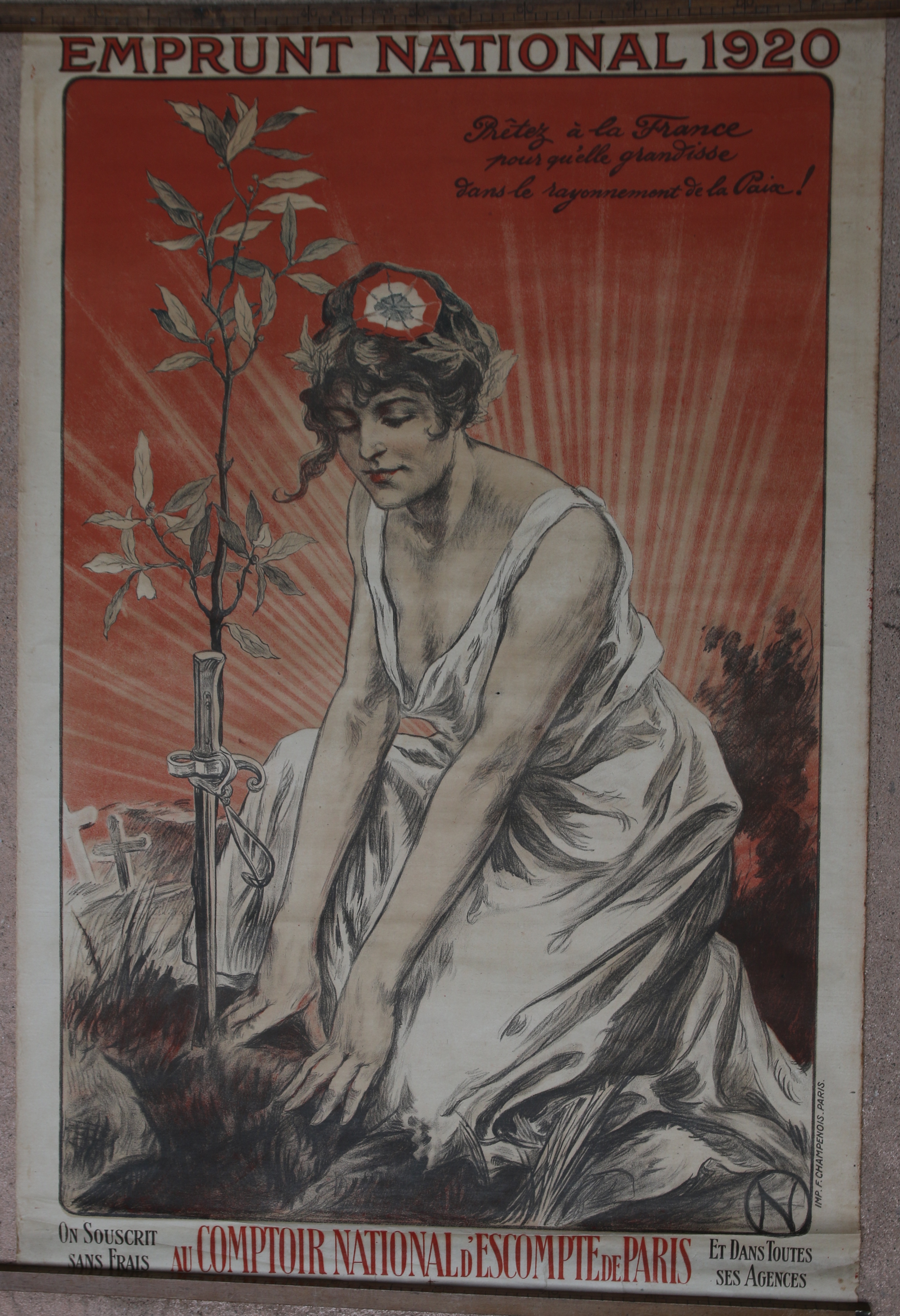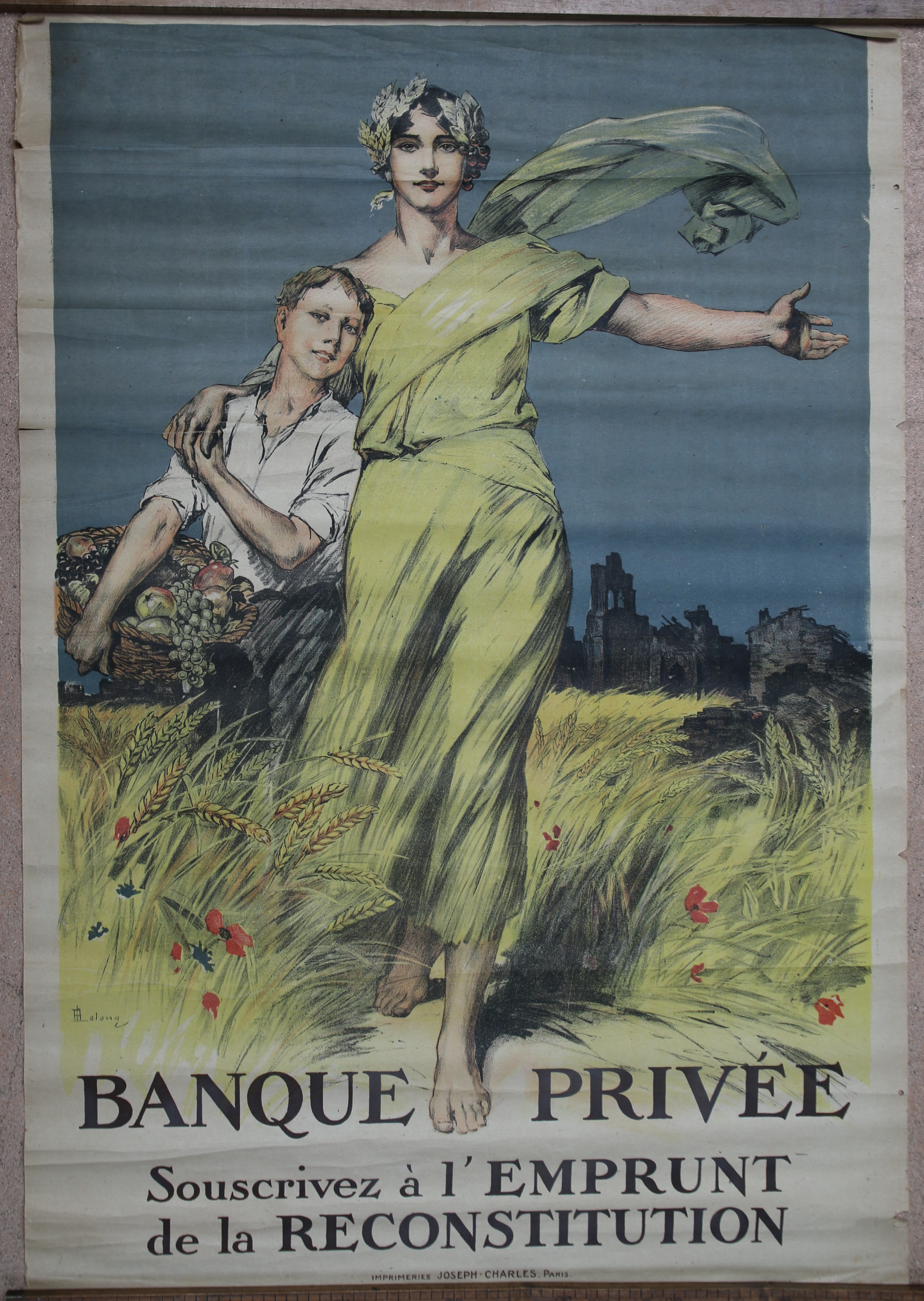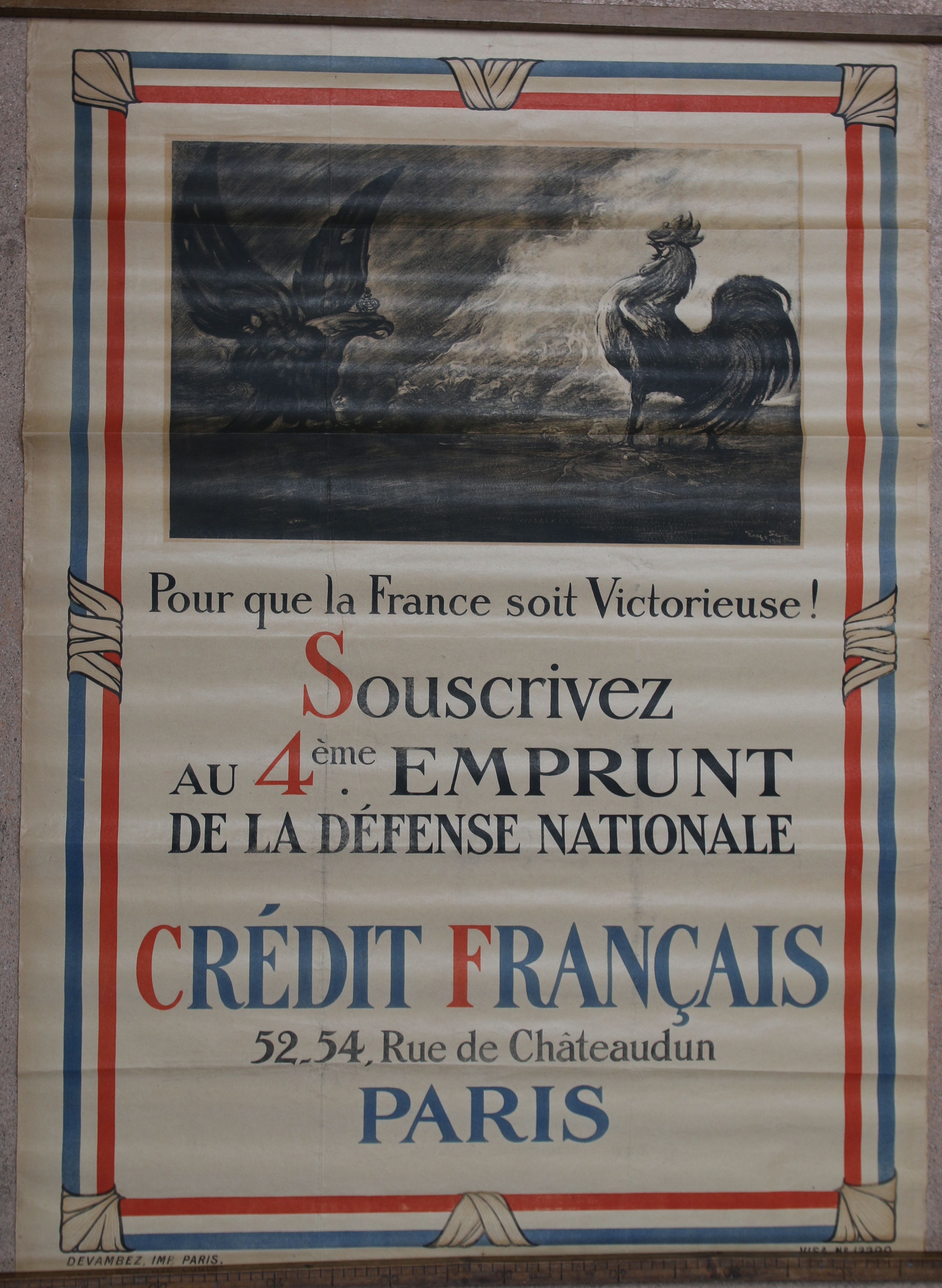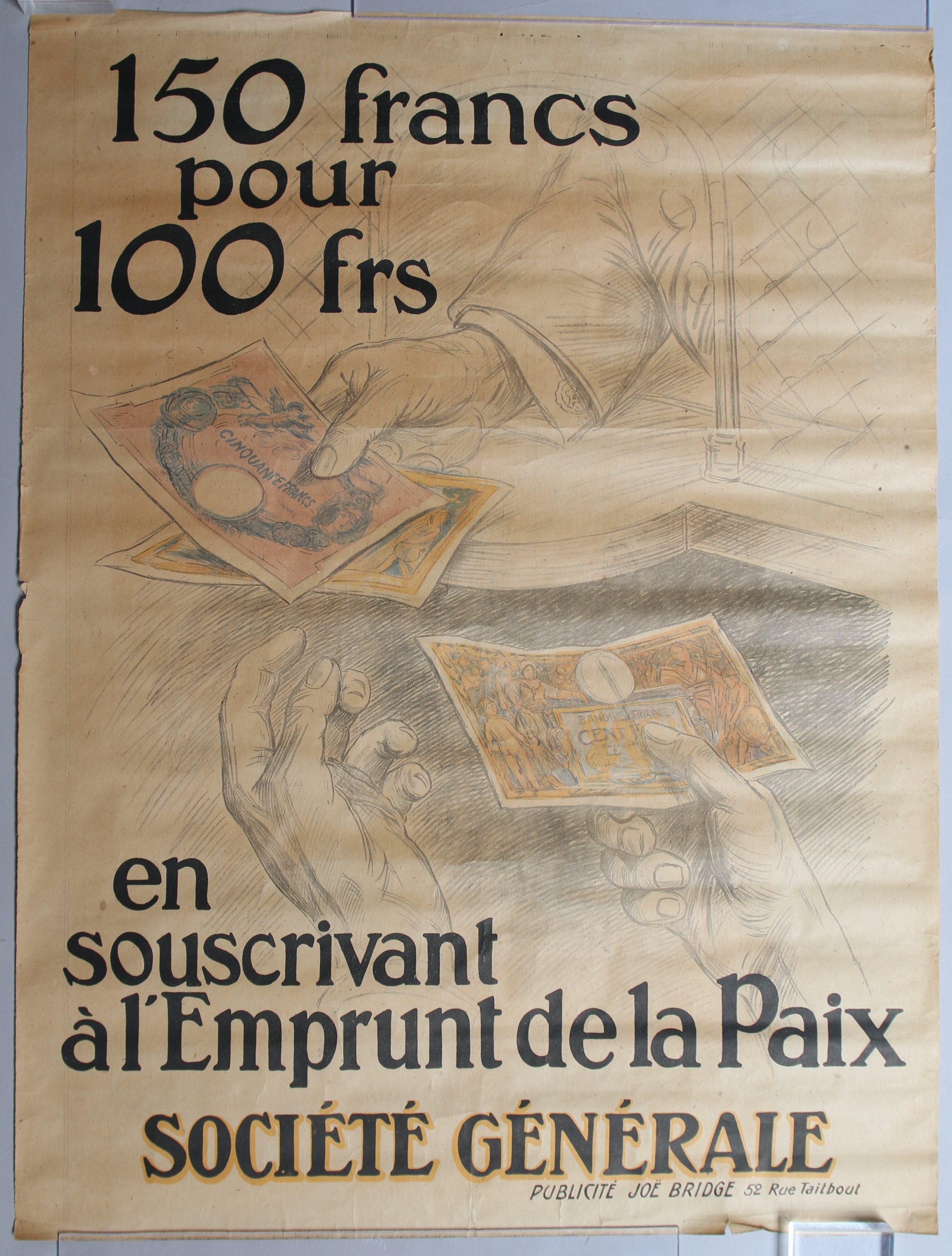 HISTOIRE BANCAIRE. Collection d'une centaine d'AFFICHES majoritairement sur le thème des EMPRUNTS BANCAIRES, nottament lors de la première guerre mondiale, mais aussi des établissements de crédit marseillais, du Sud de la France, d'Algérie et d'Italie.