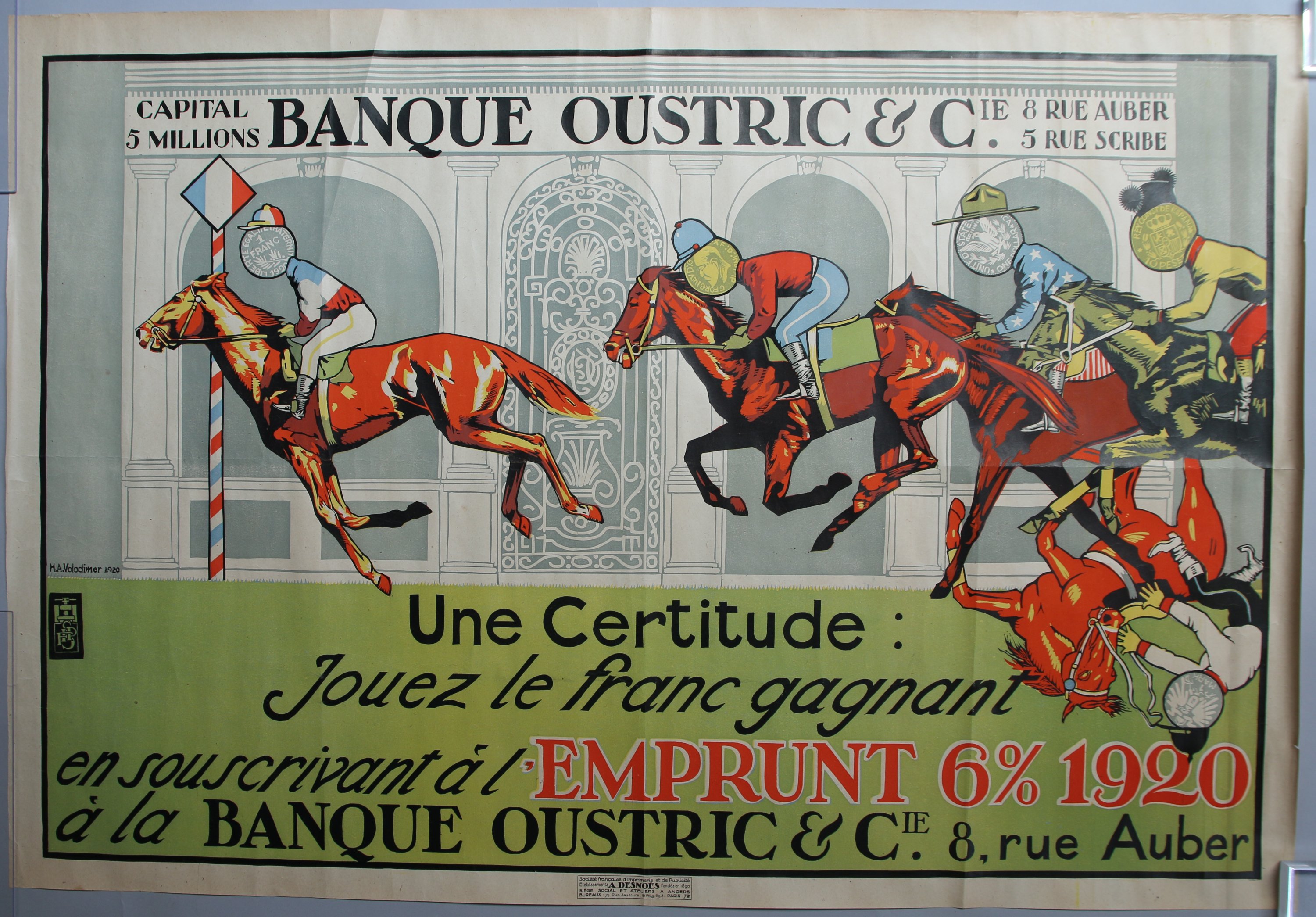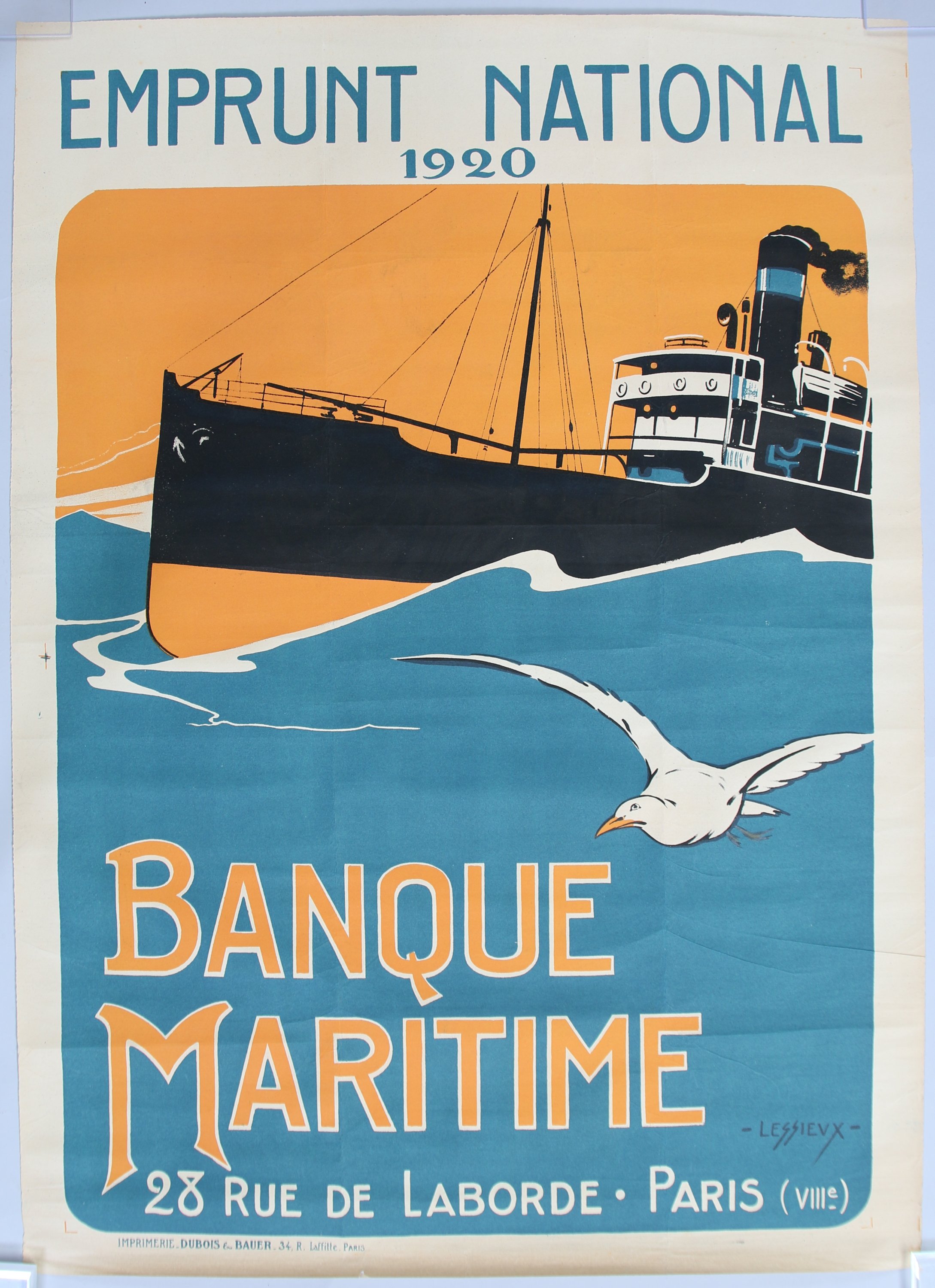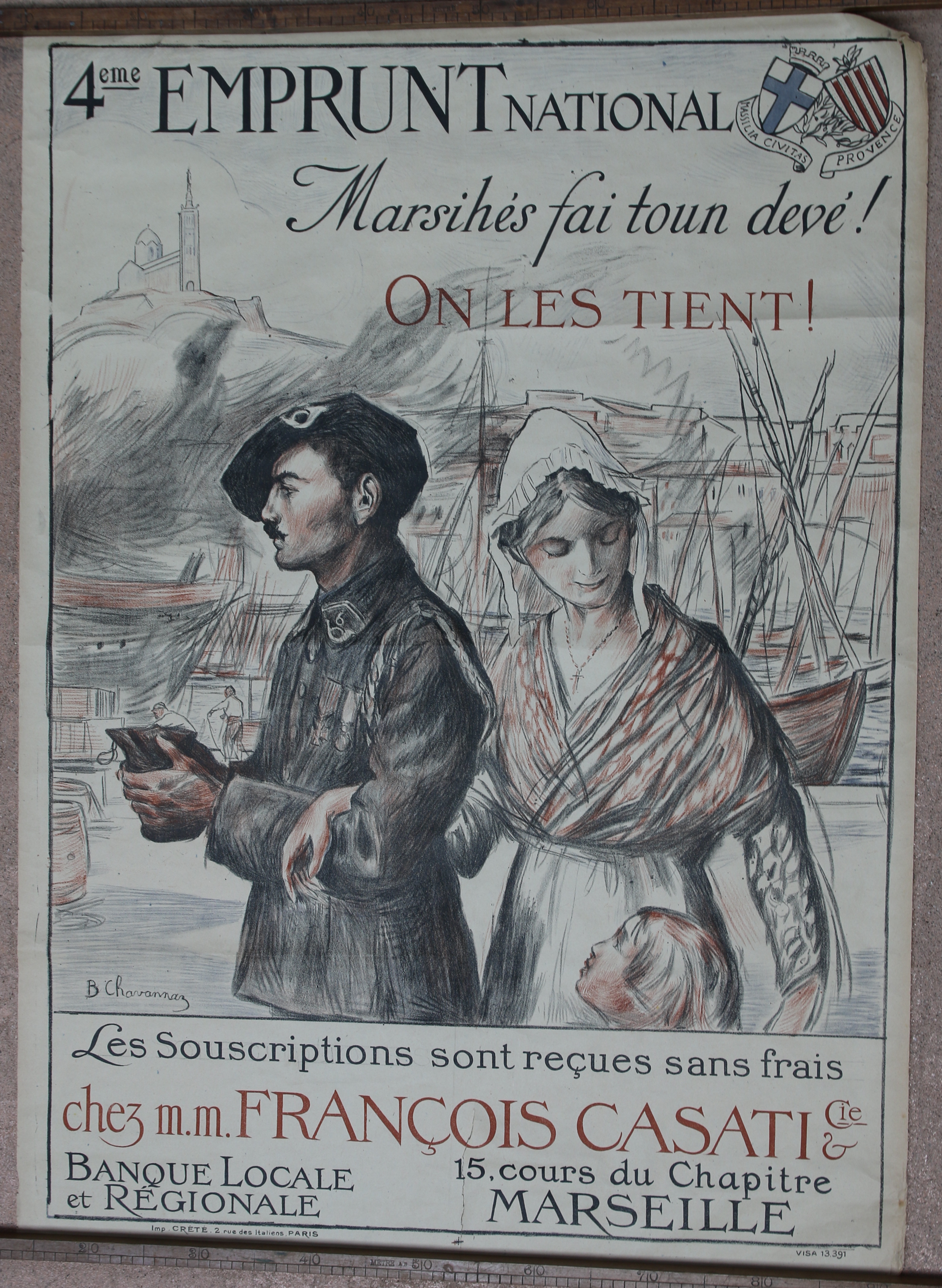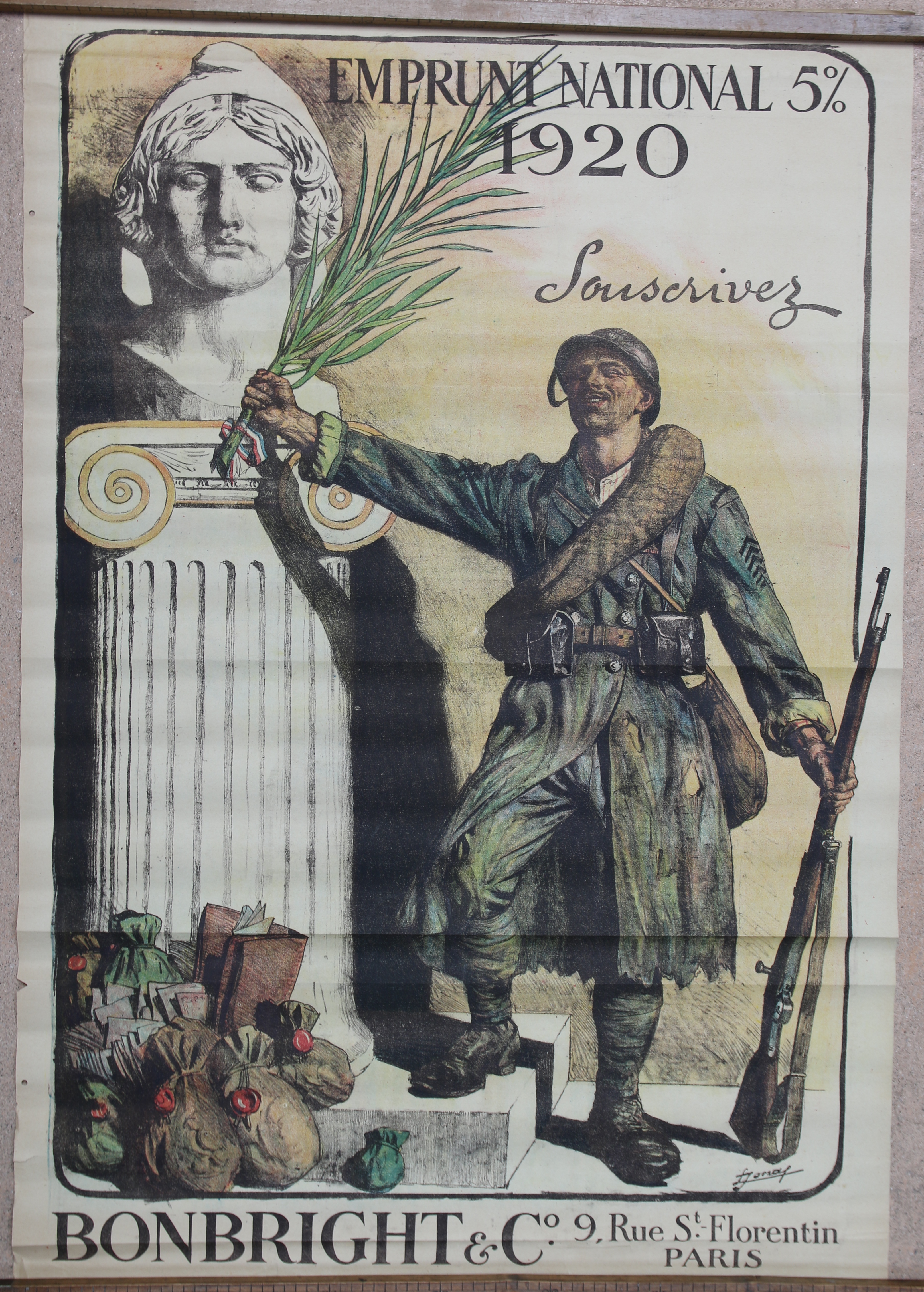HISTOIRE BANCAIRE. Collection d'une centaine d'AFFICHES majoritairement sur le thème des EMPRUNTS BANCAIRES, nottament lors de la première guerre mondiale, mais aussi des établissements de crédit marseillais, du Sud de la France, d'Algérie et d'Italie.