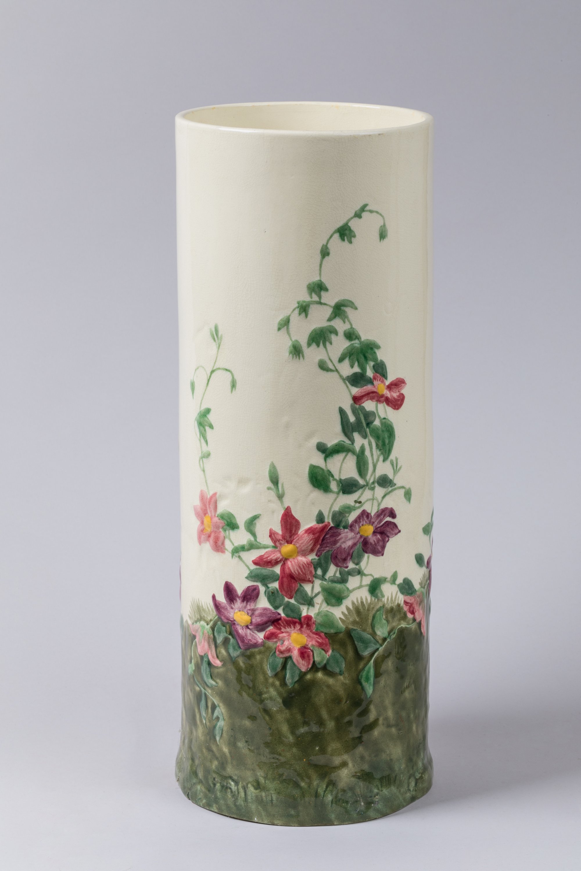 en céramique émaillée à décor peint en relief sur un fond maïs.