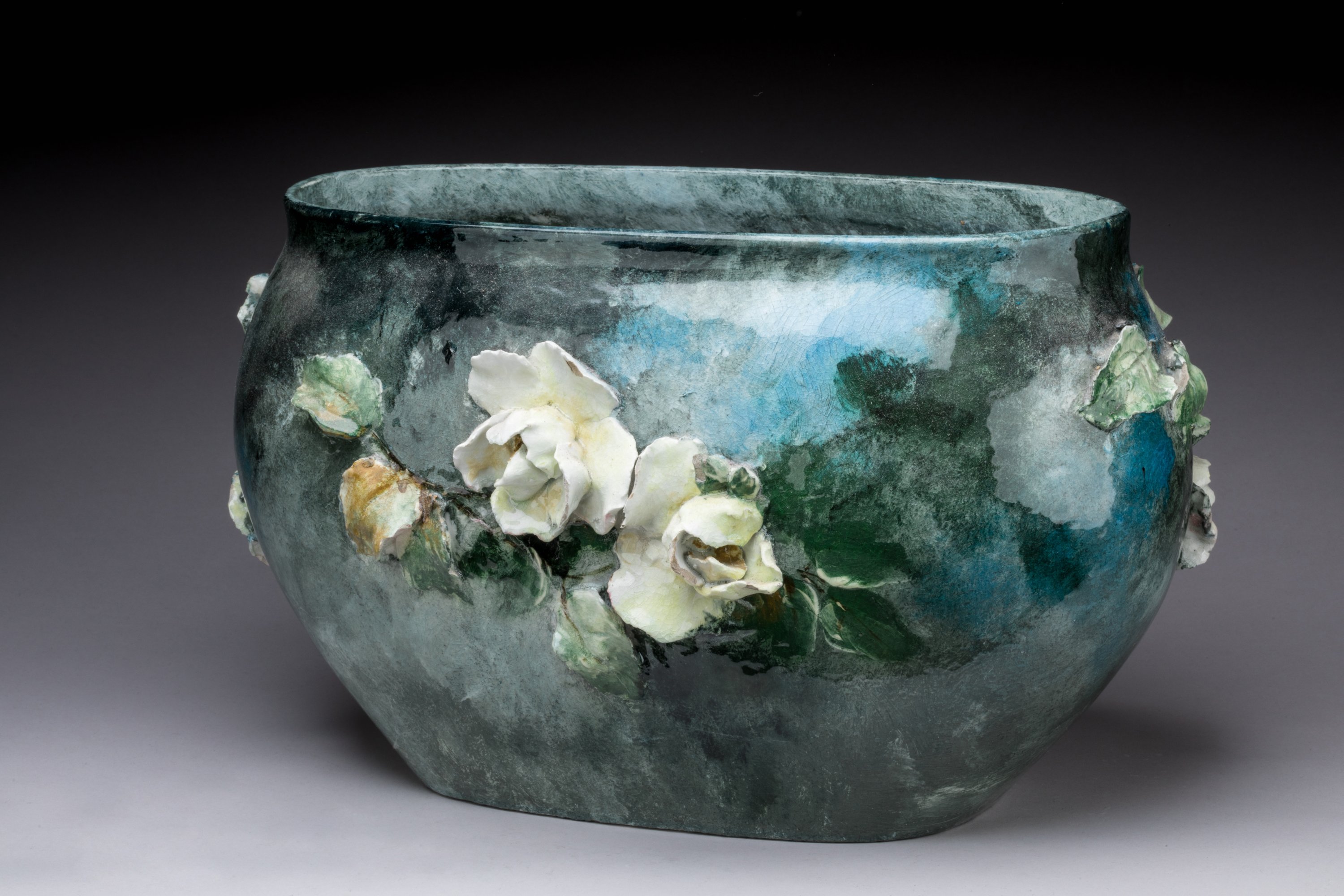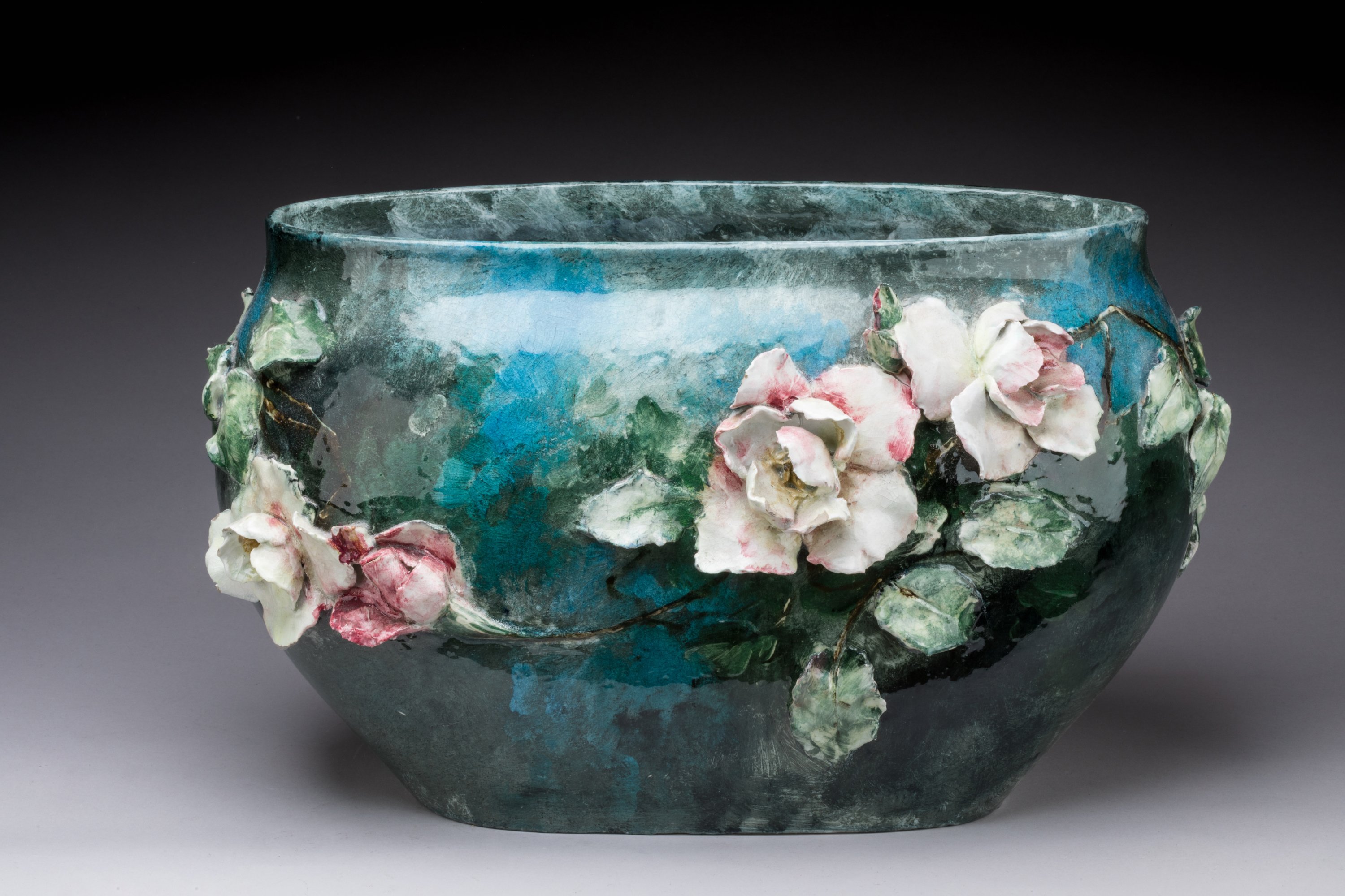 Félix LAFOND (1815-1901)Jardinière aux rosiers, c. 1875en céramique émaillée à...