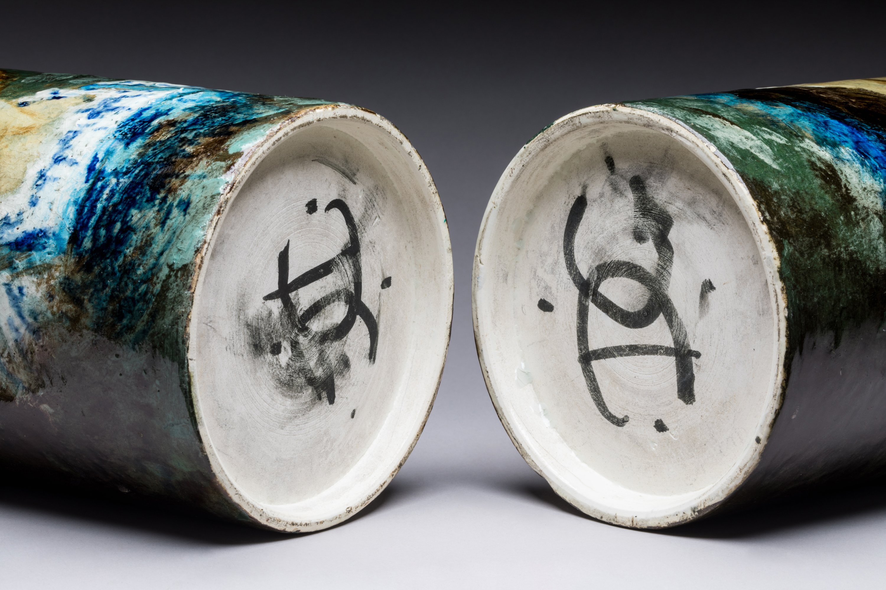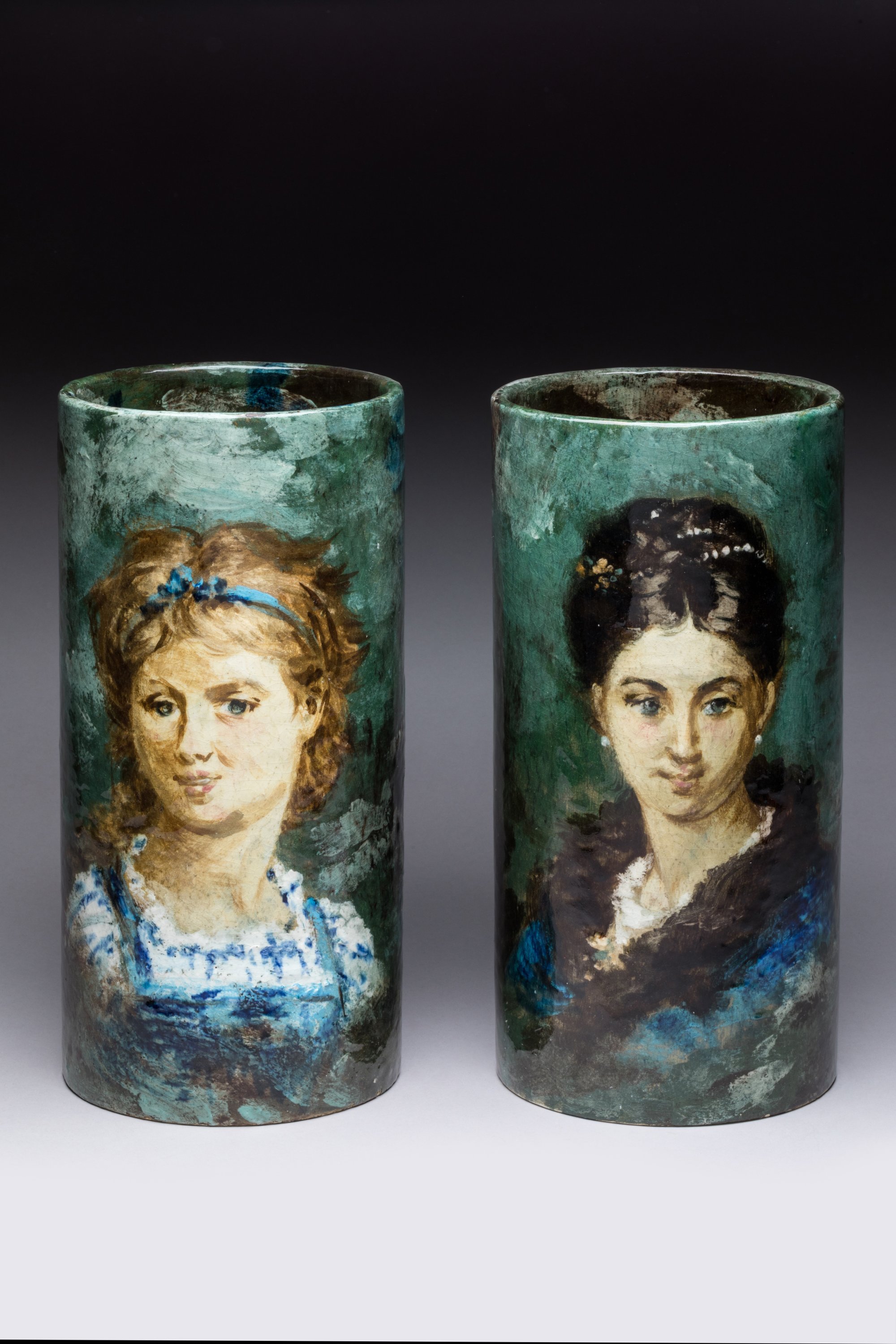 Paire de vases rouleaux aux portraits de femmes, c. 1880