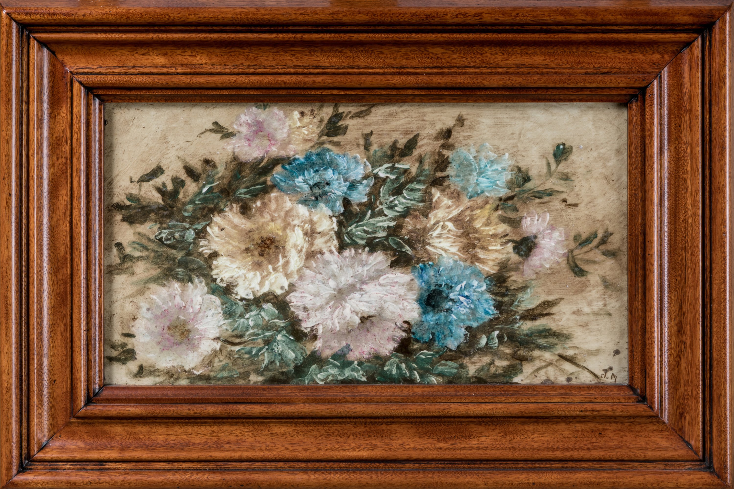 Bouquet de dahlias et roses anciennes, c. 1870.