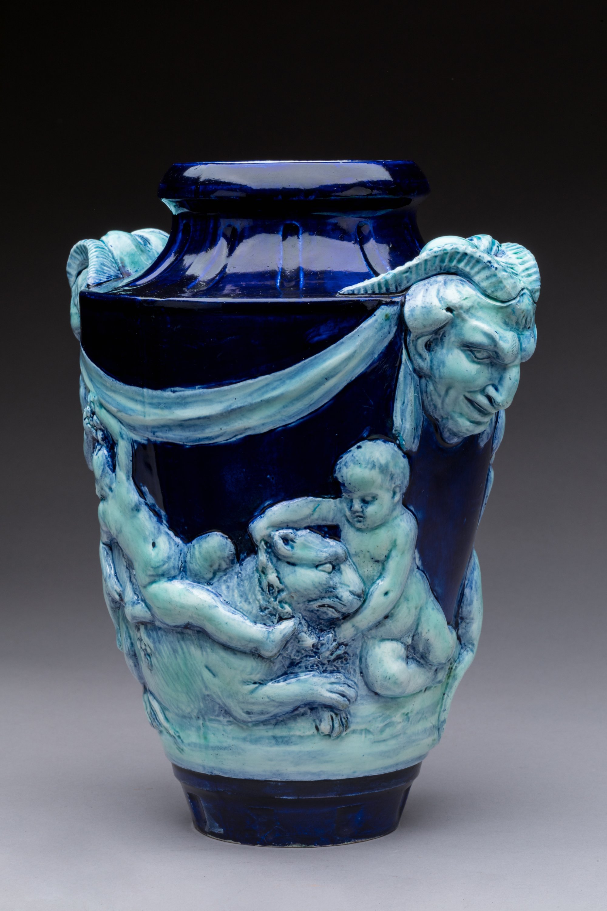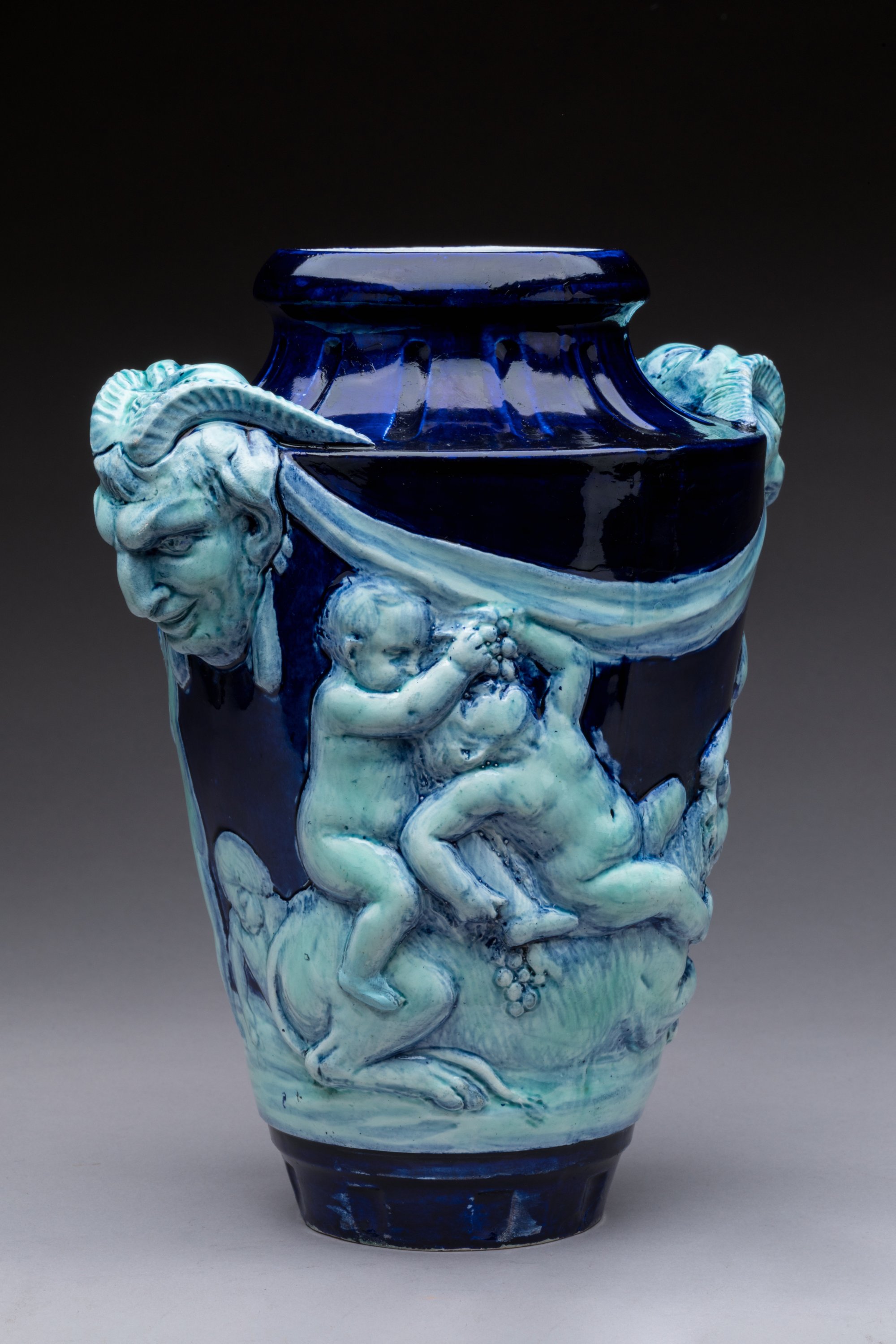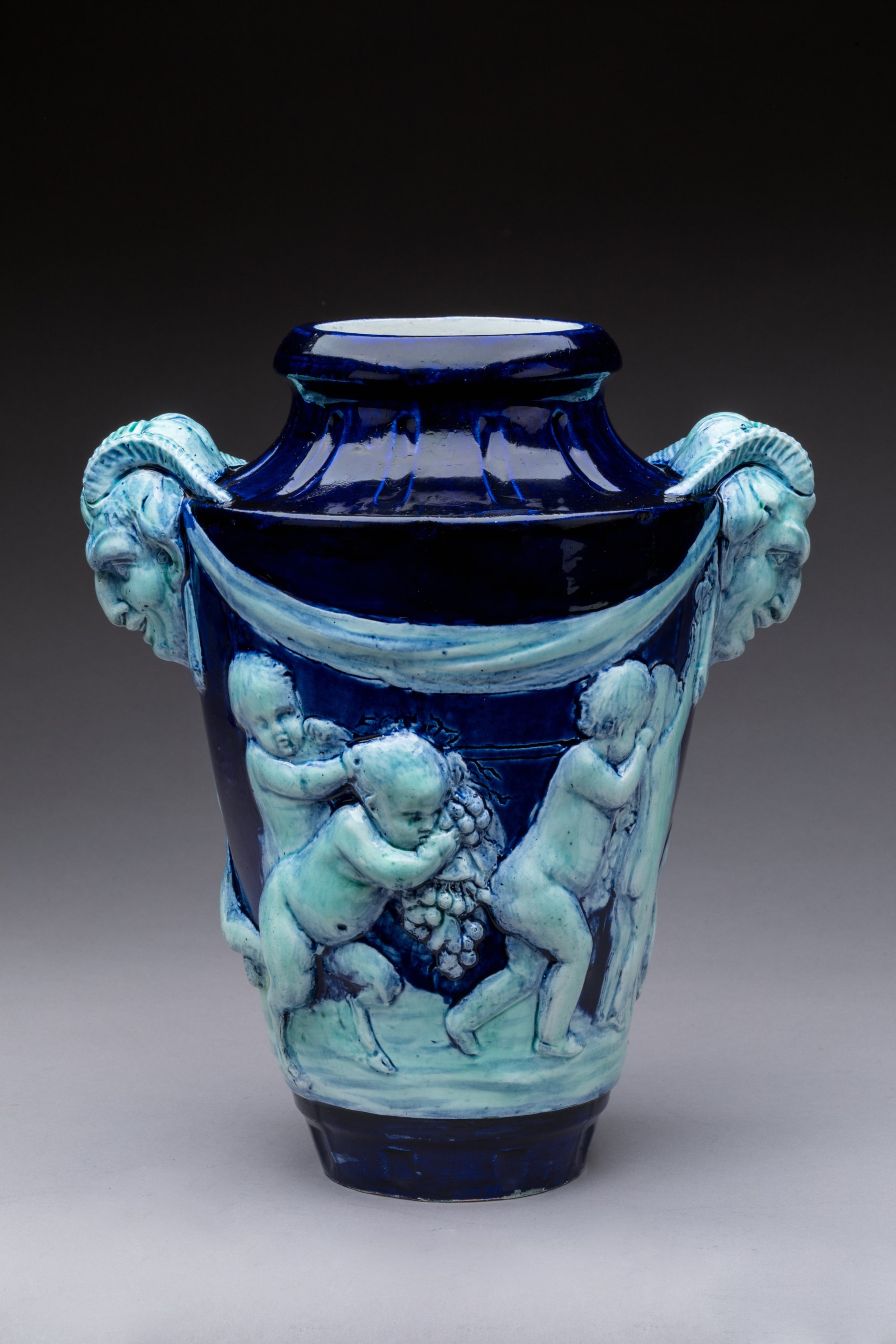 VASE CLODION aux PUTTI VENDANGEURSen céramique émaillée au décor en...