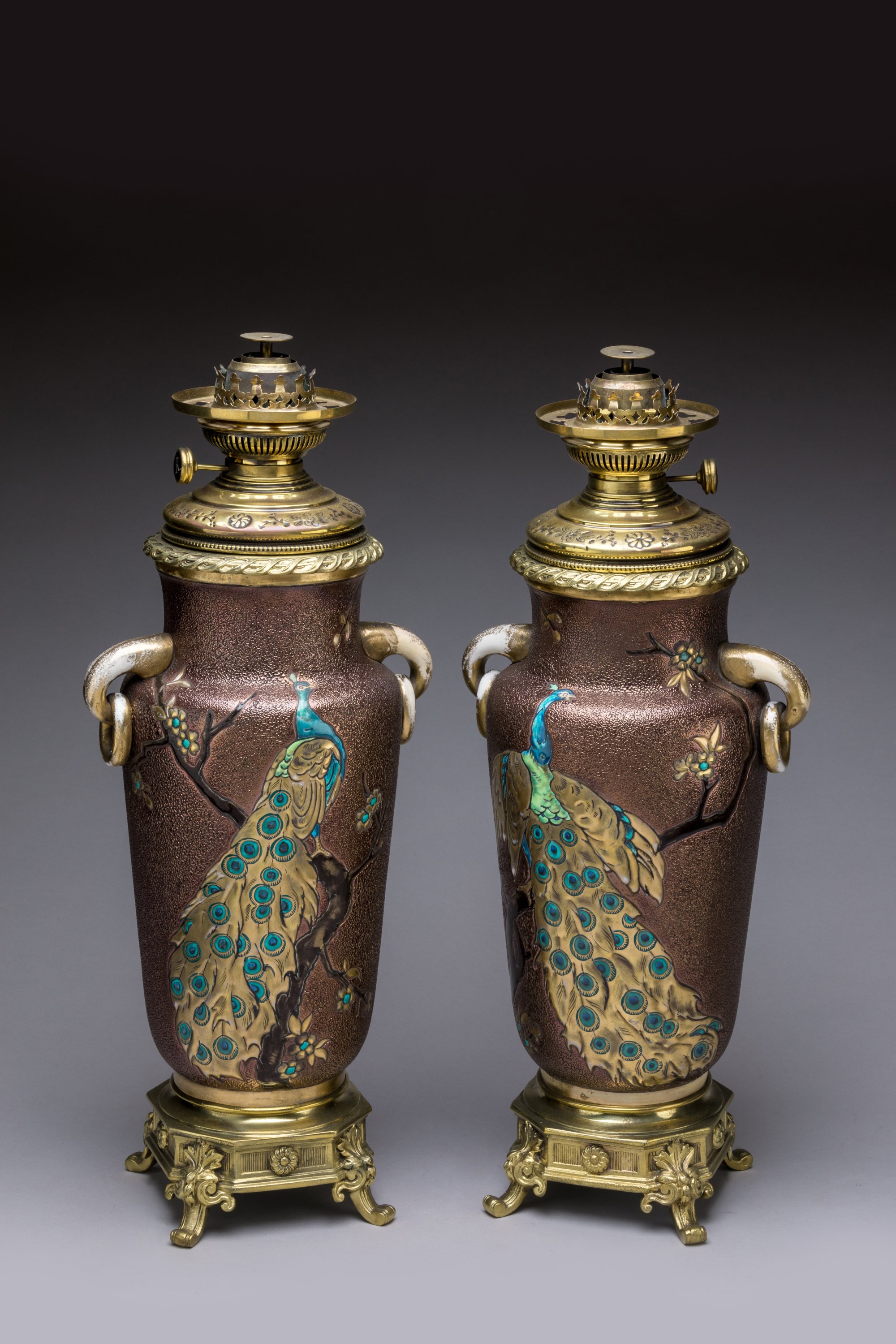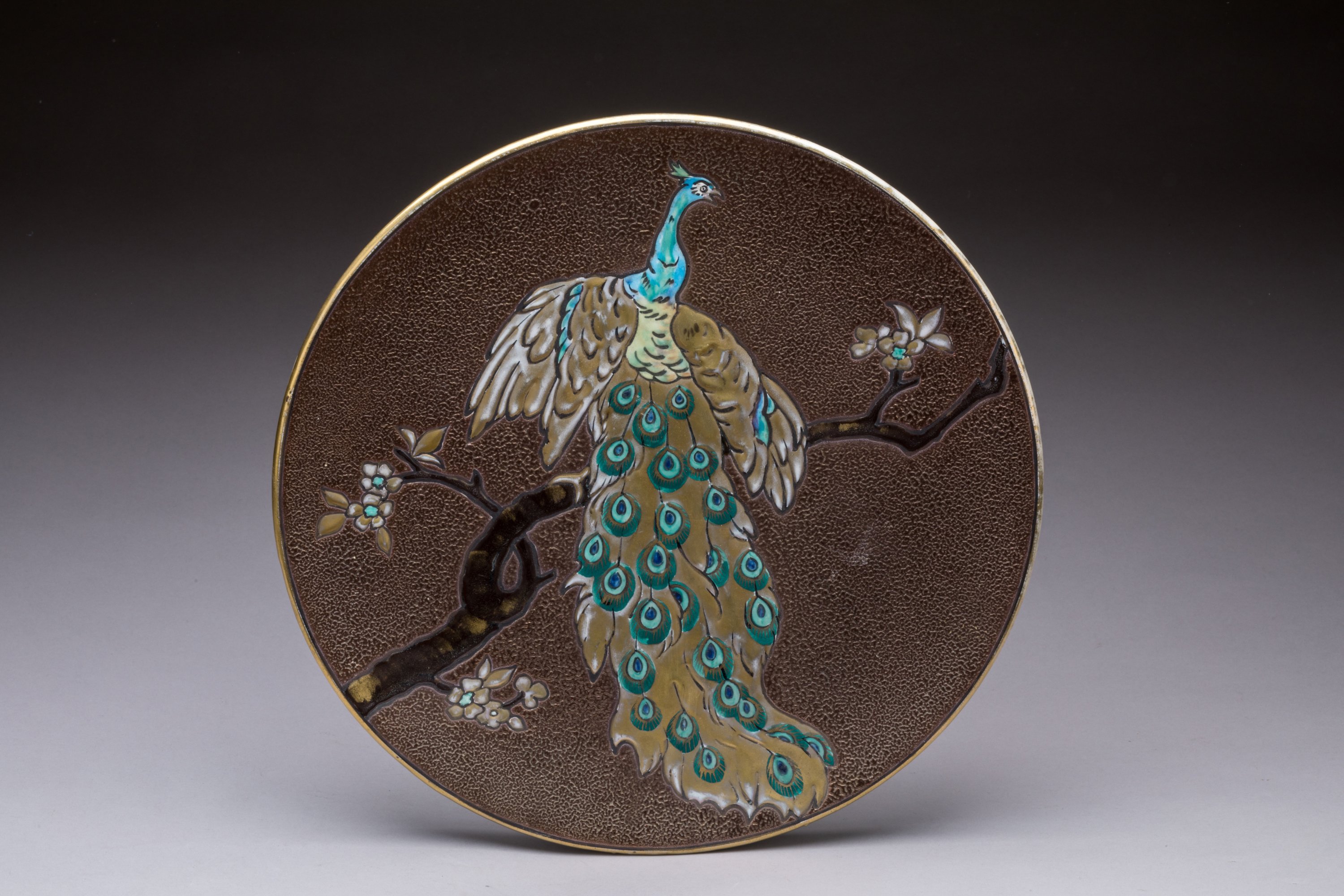 en céramique aux émaux chagrin, rehaussé or. Monture en bronze.