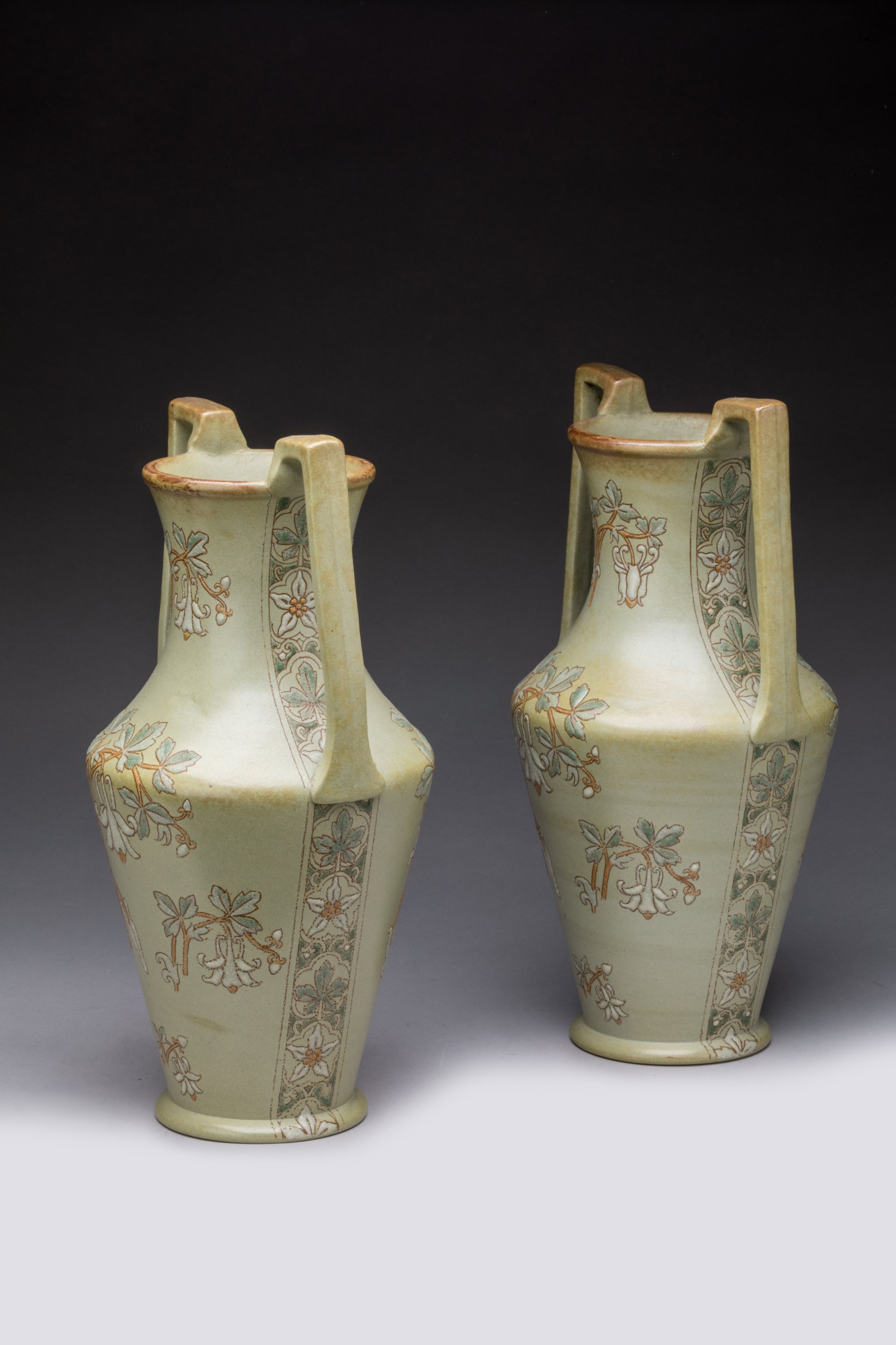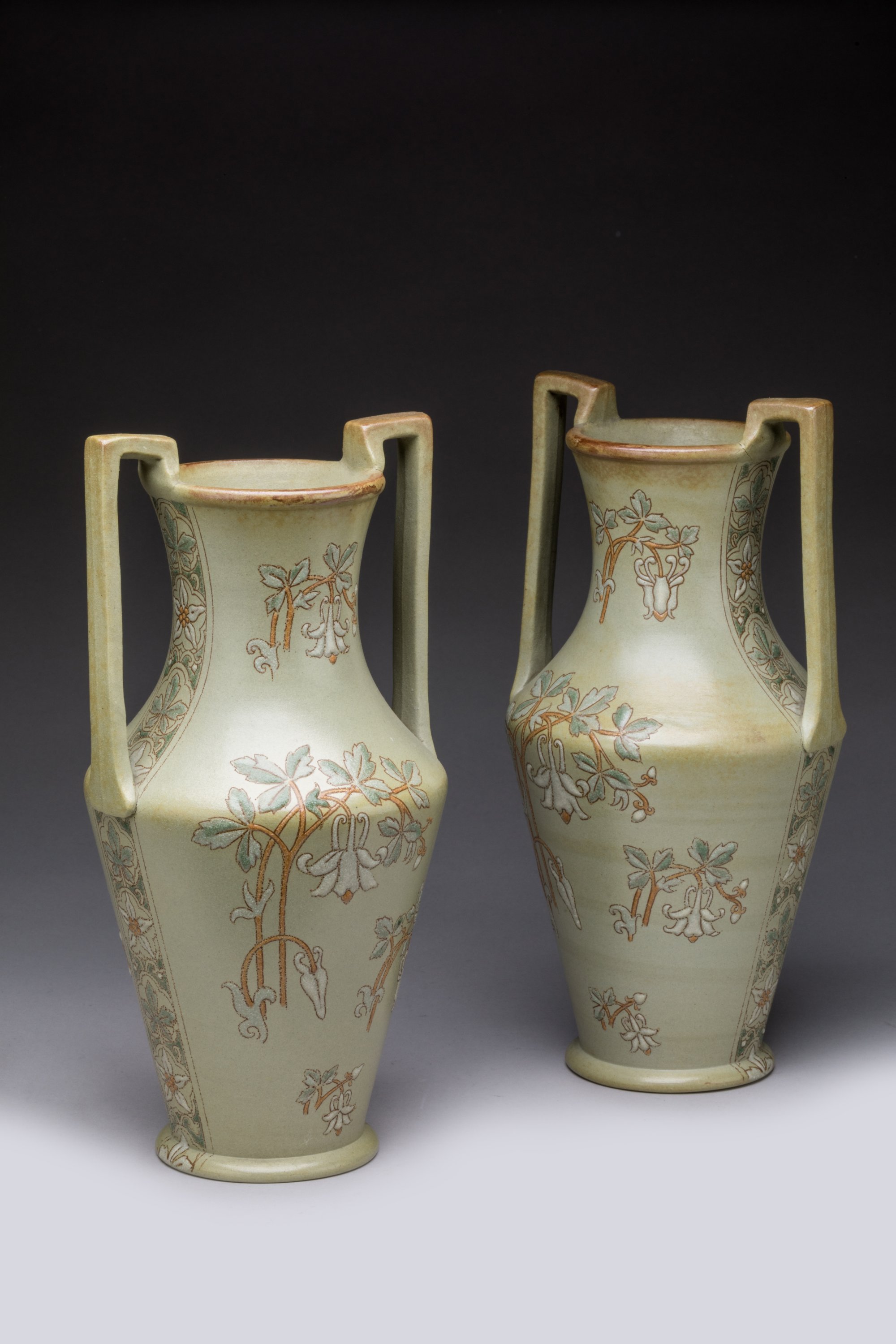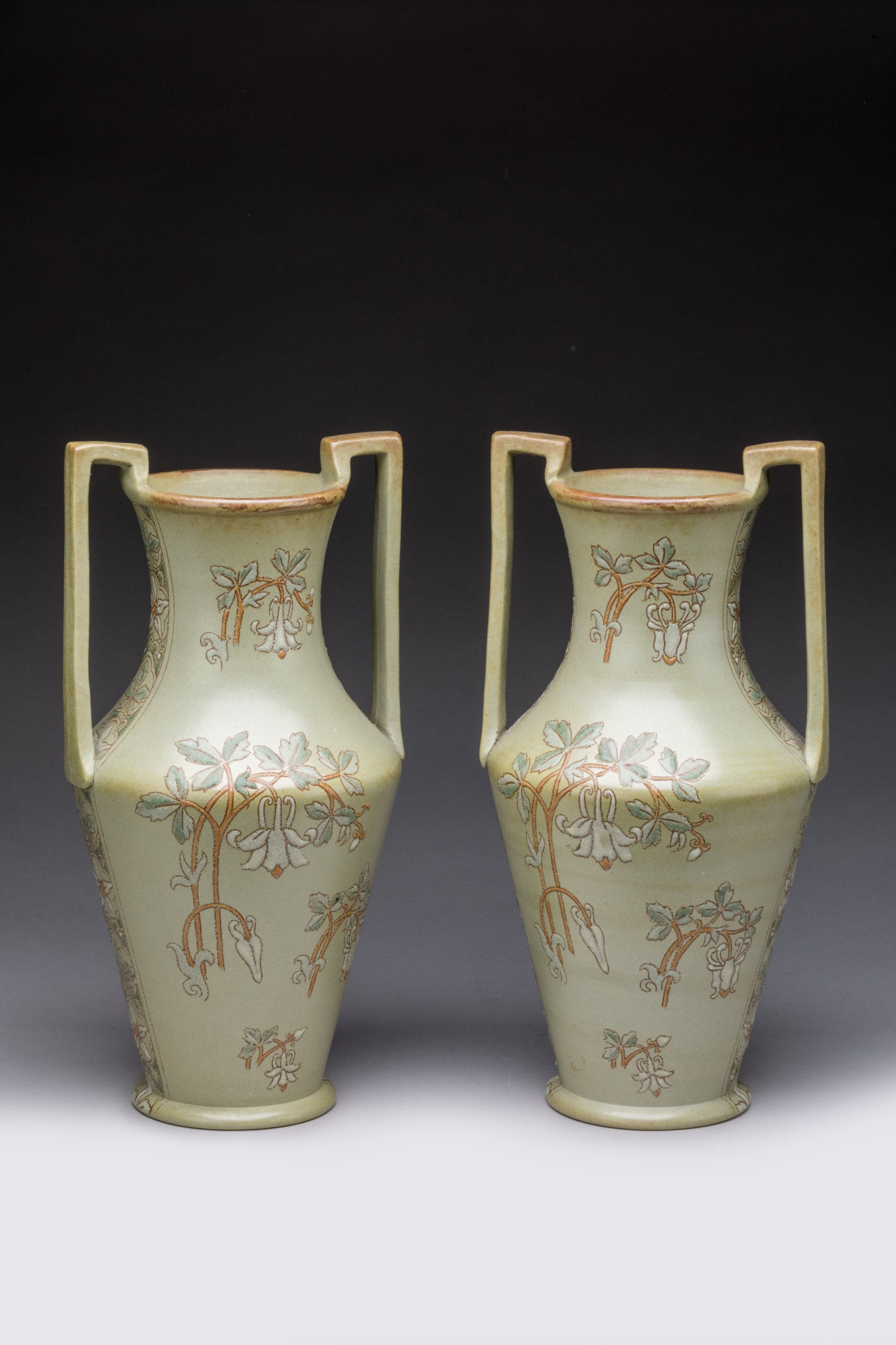 en grès émaillé à décor de renoncules en relief sur fond clair.