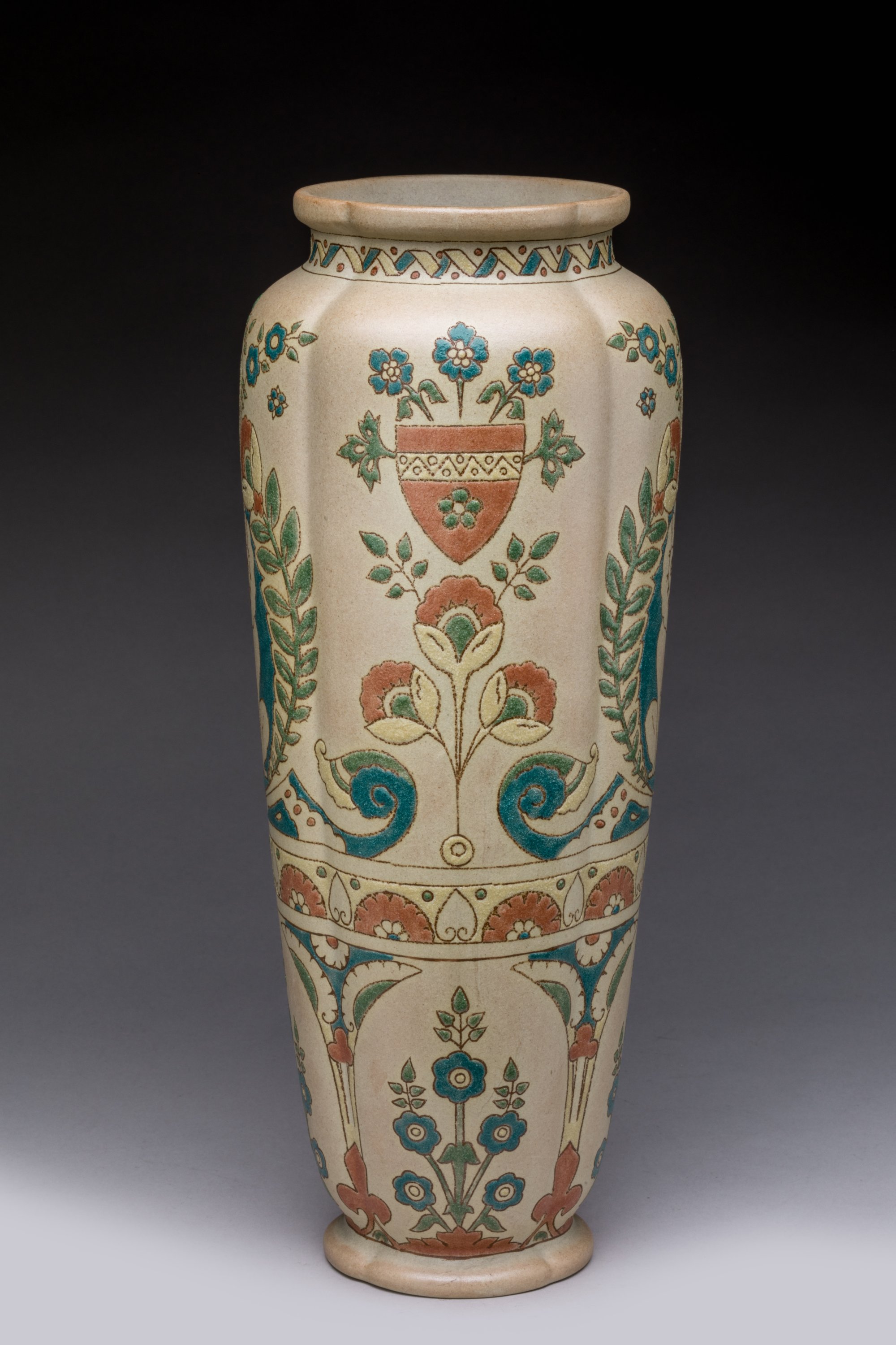 VASE au CHAT, c. 1930En grès à fond beige à...