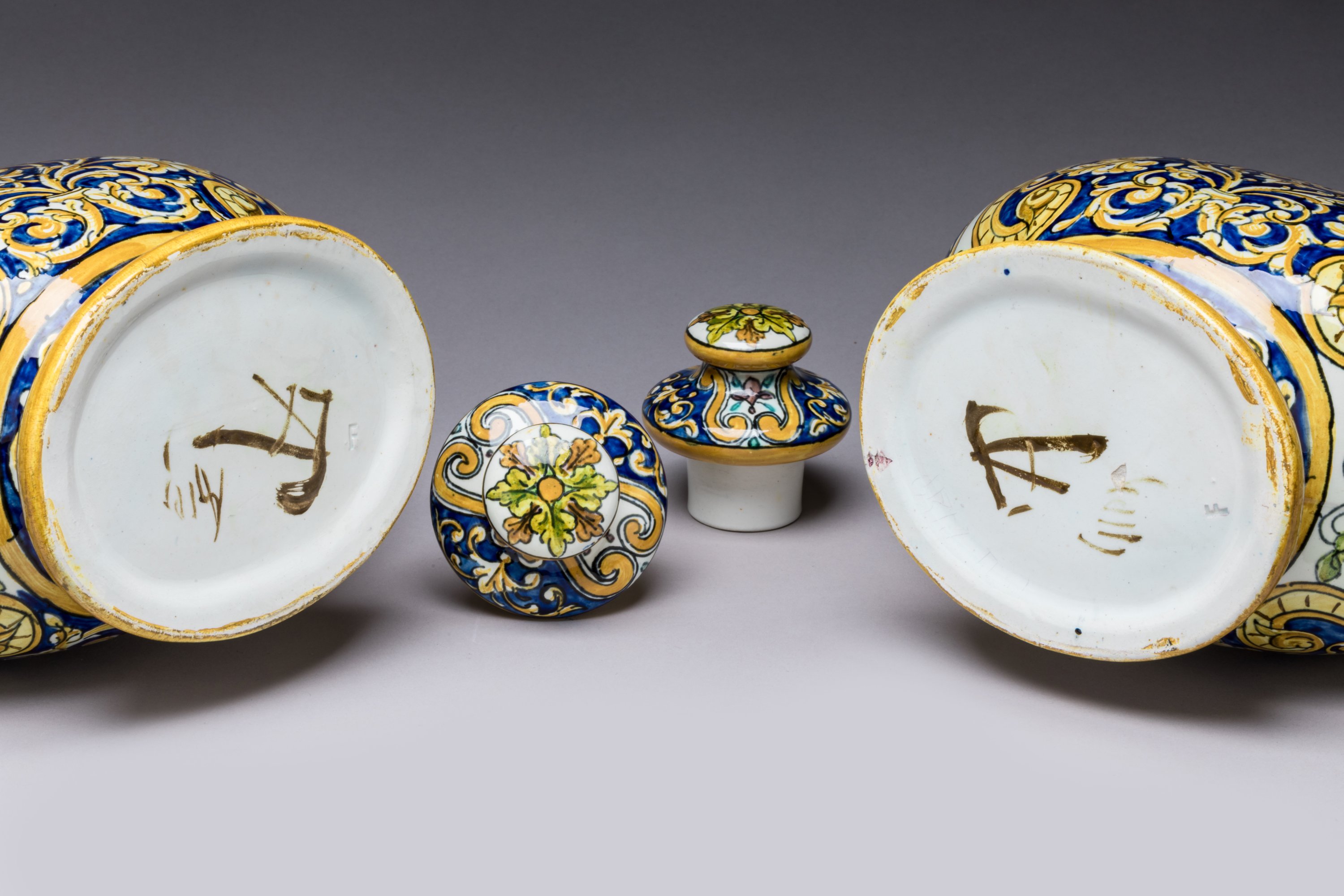 en céramique émaillée à décor d'entrelacs de la Renaissance italienne sur fond bleu et blanc.