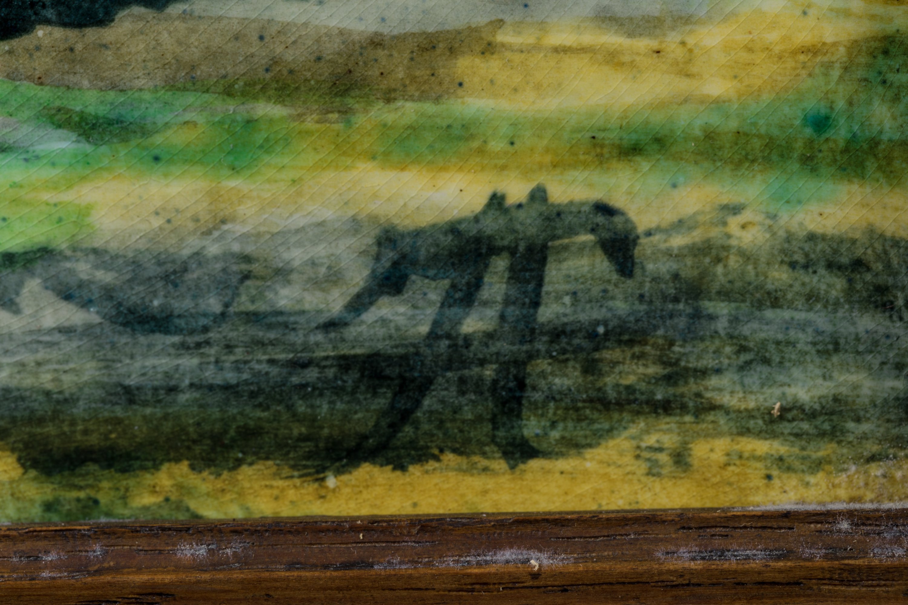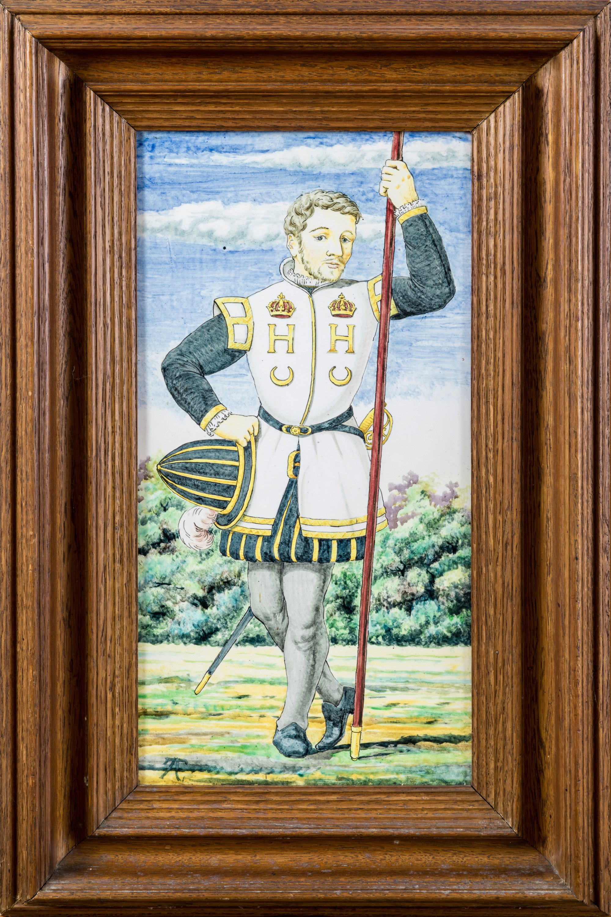 Paire de plaques émaillées peintes de deux soldats en armure de la fin du XVIe siècle aux monogrammes affrontés "AT".