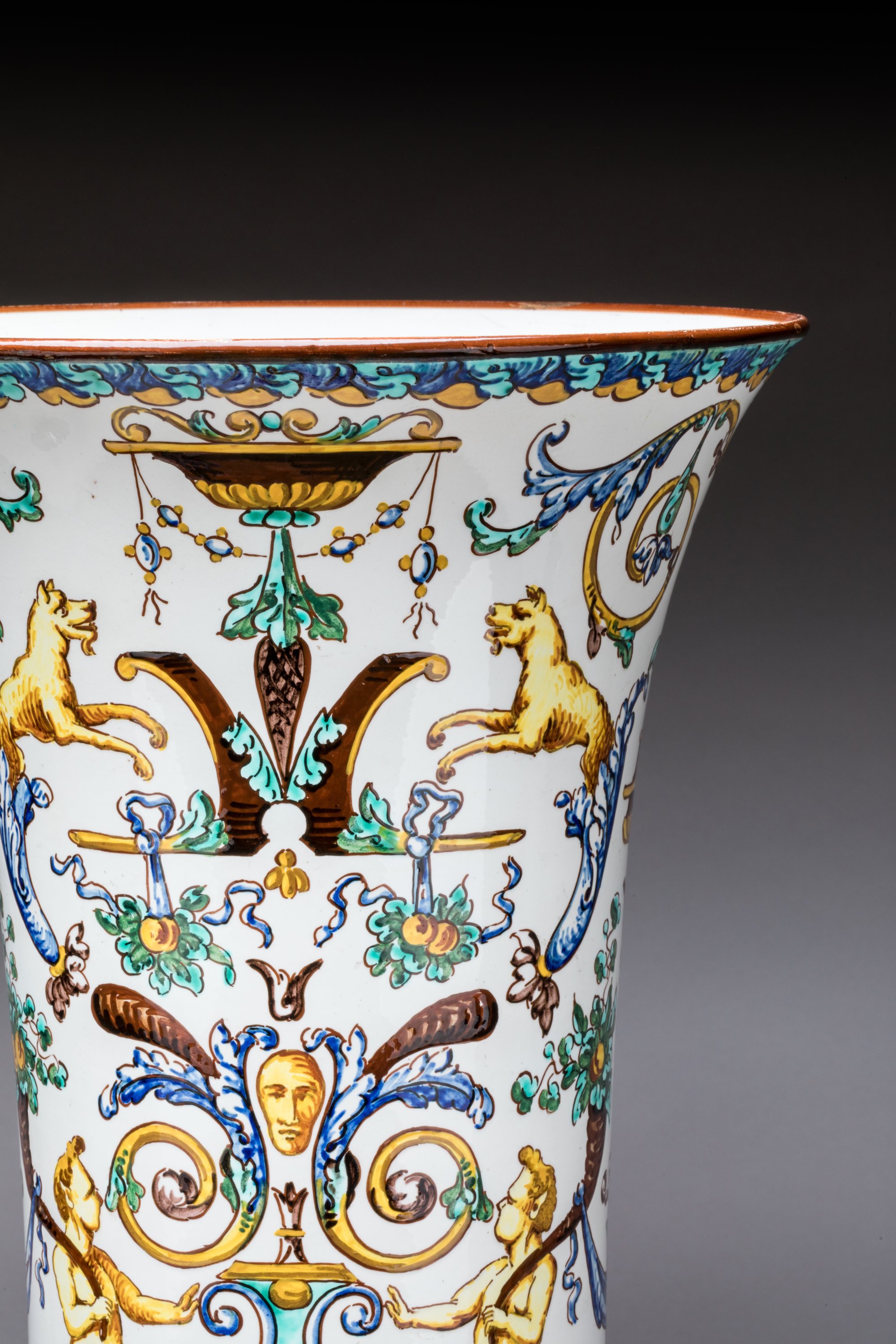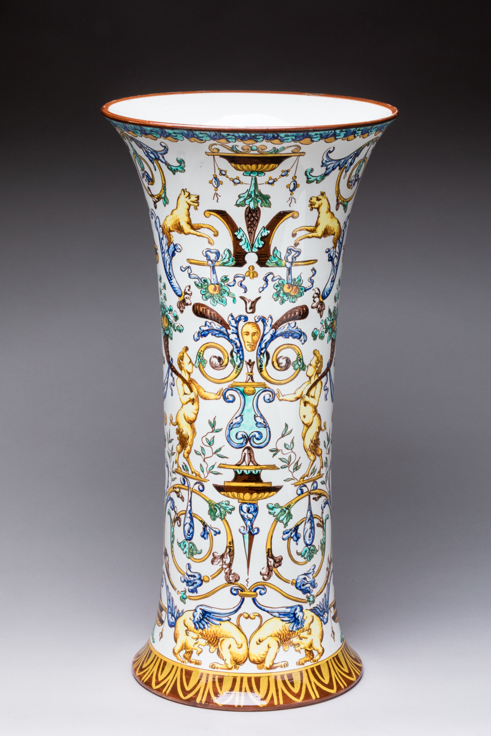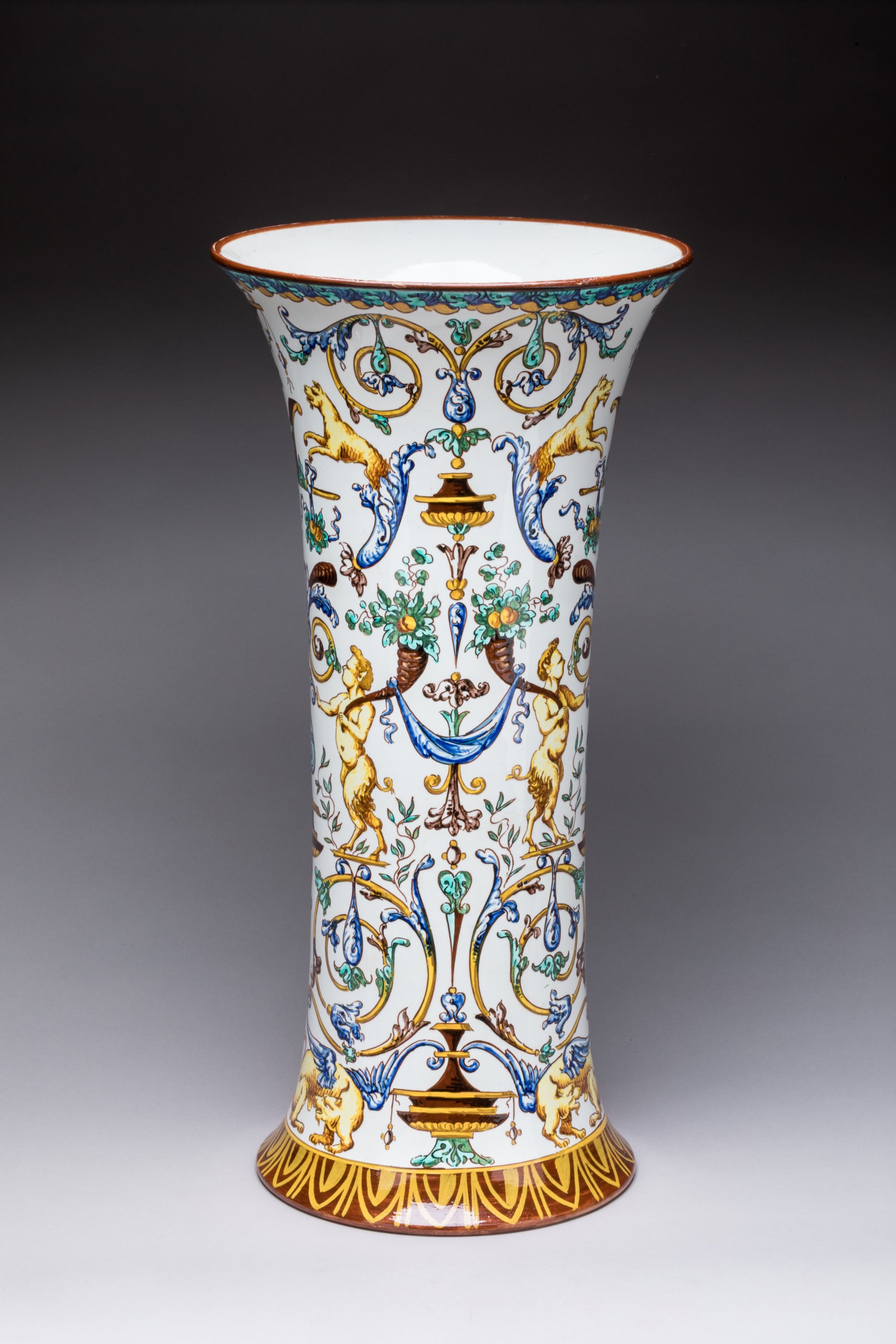 en céramique émaillée à décor de la Renaissance italienne sur fond blanc.