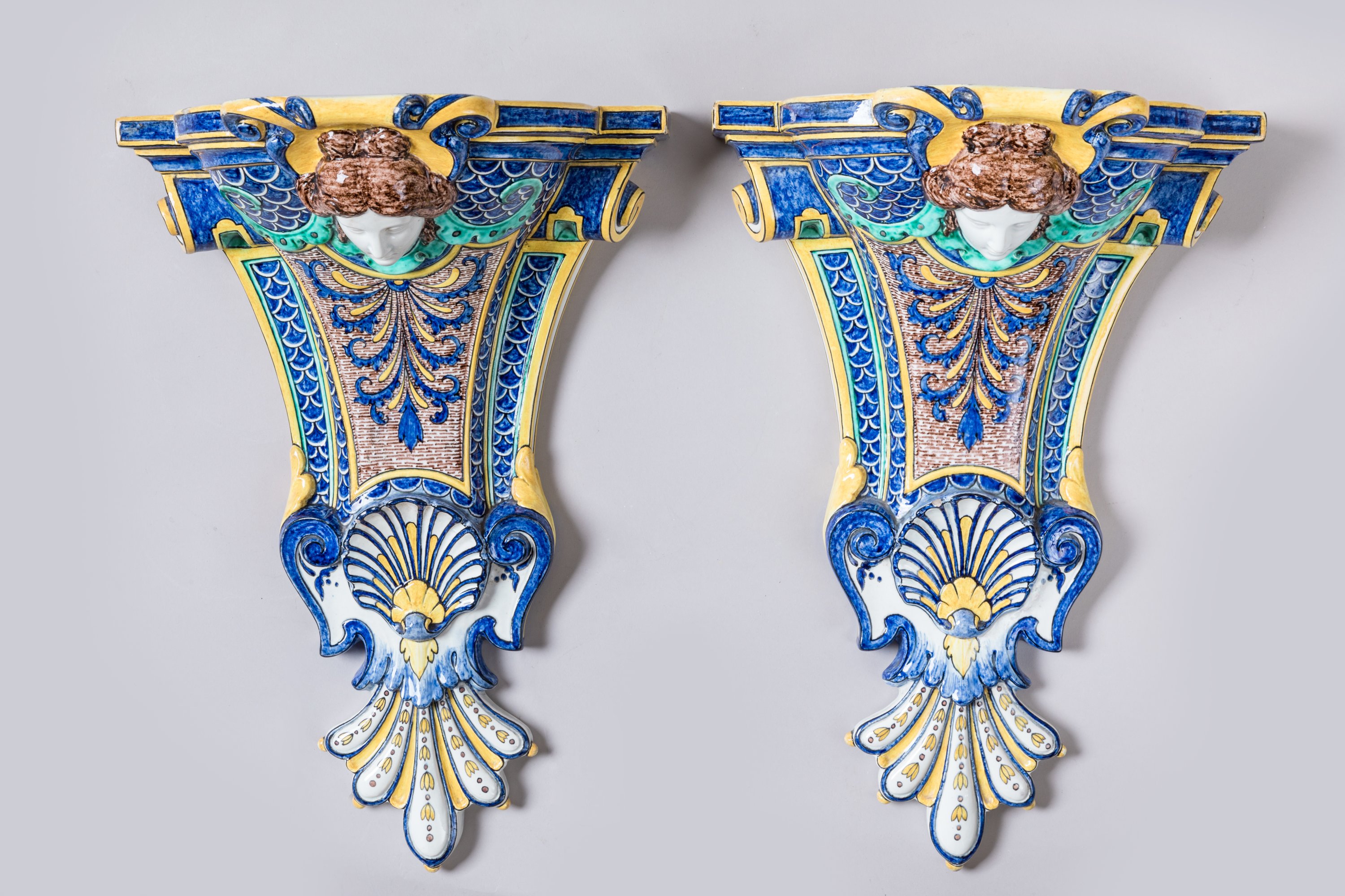 en céramique à décor de la Renaissance ornées de mascarons féminins et coquilles Saint-Jacques.