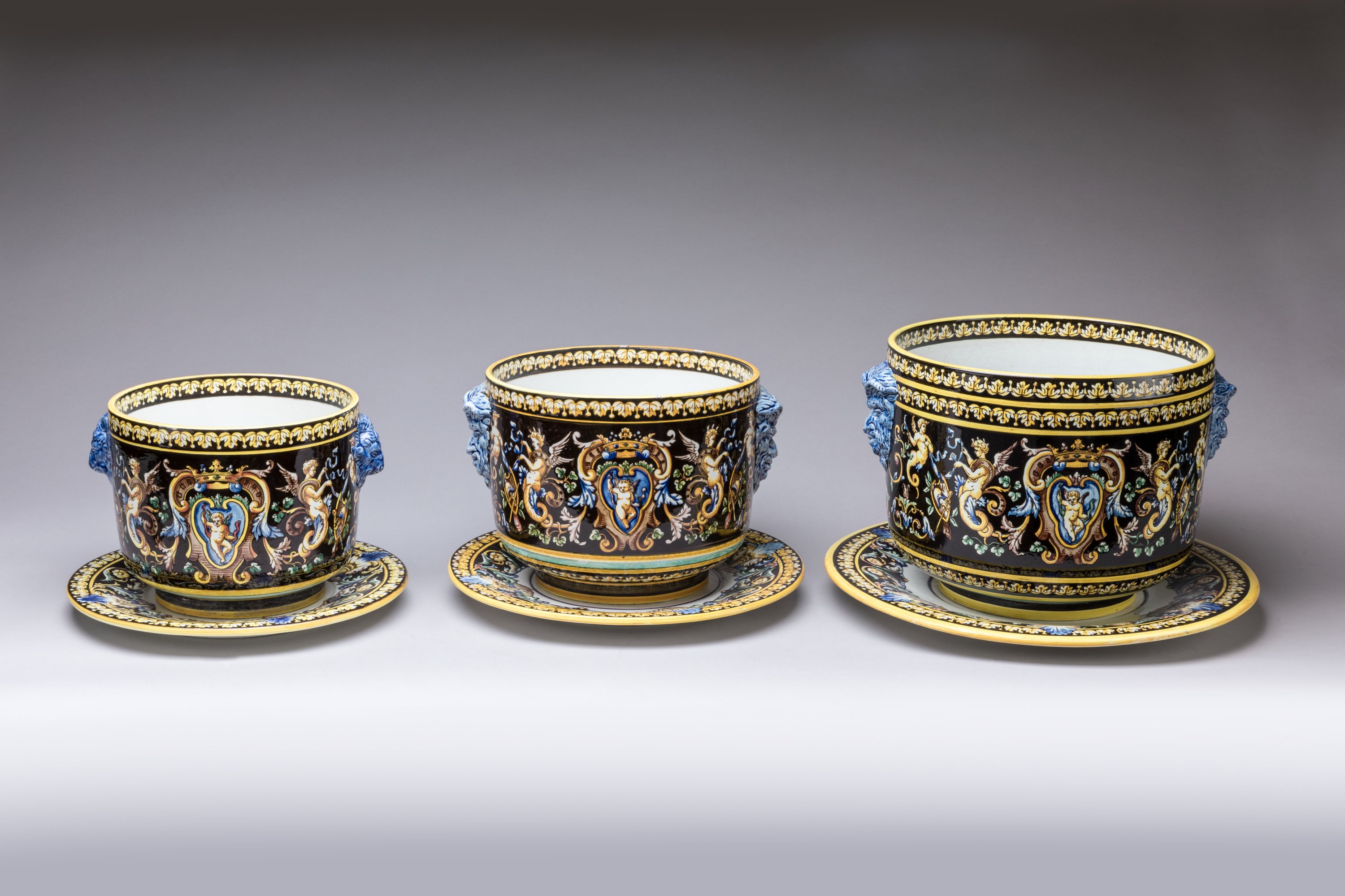 Trois CACHE-POT et leurs DORMANTS aux TÊTES de SATYRES