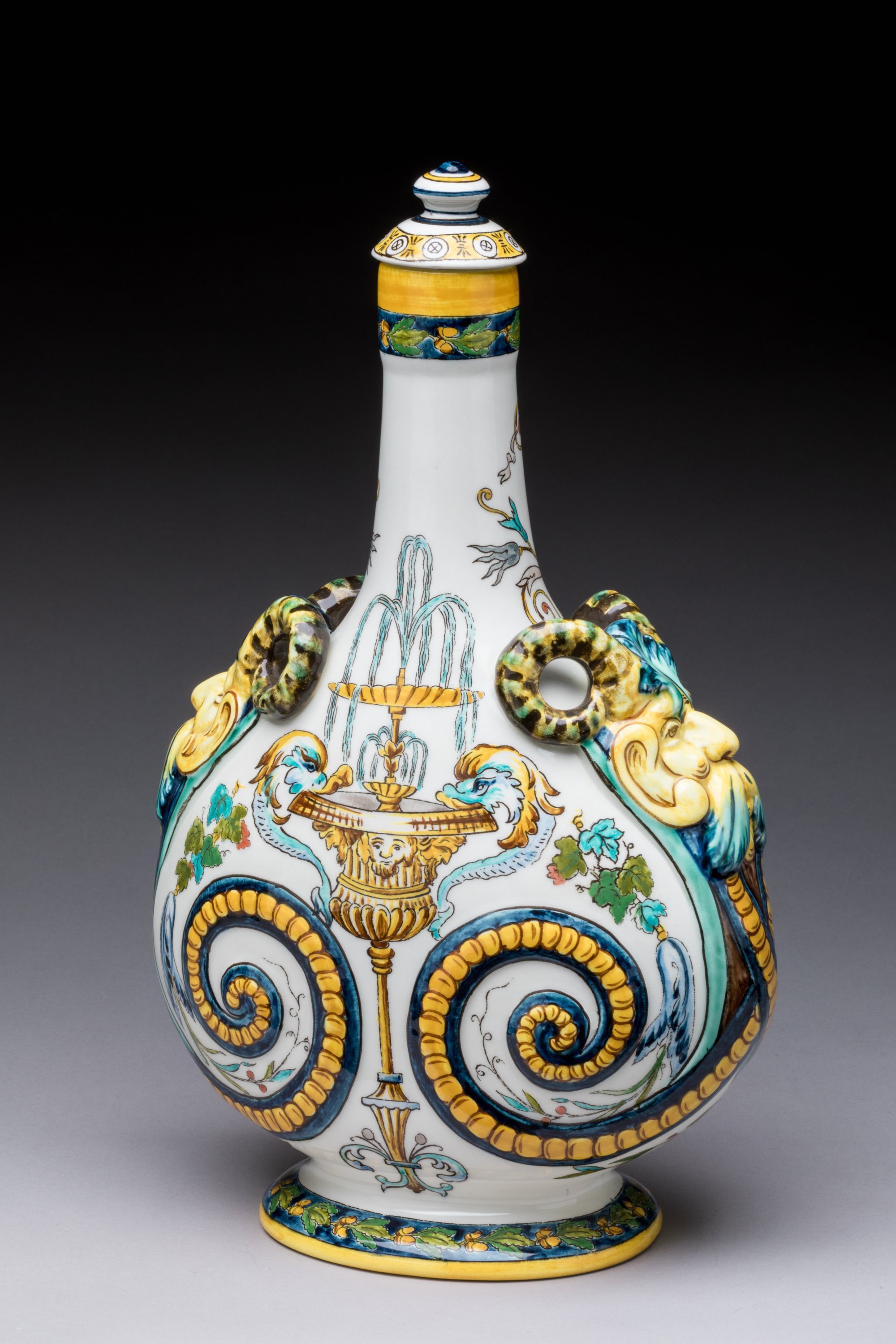 en céramique émaillée à décor de la Renaissance italienne sur fond blanc.