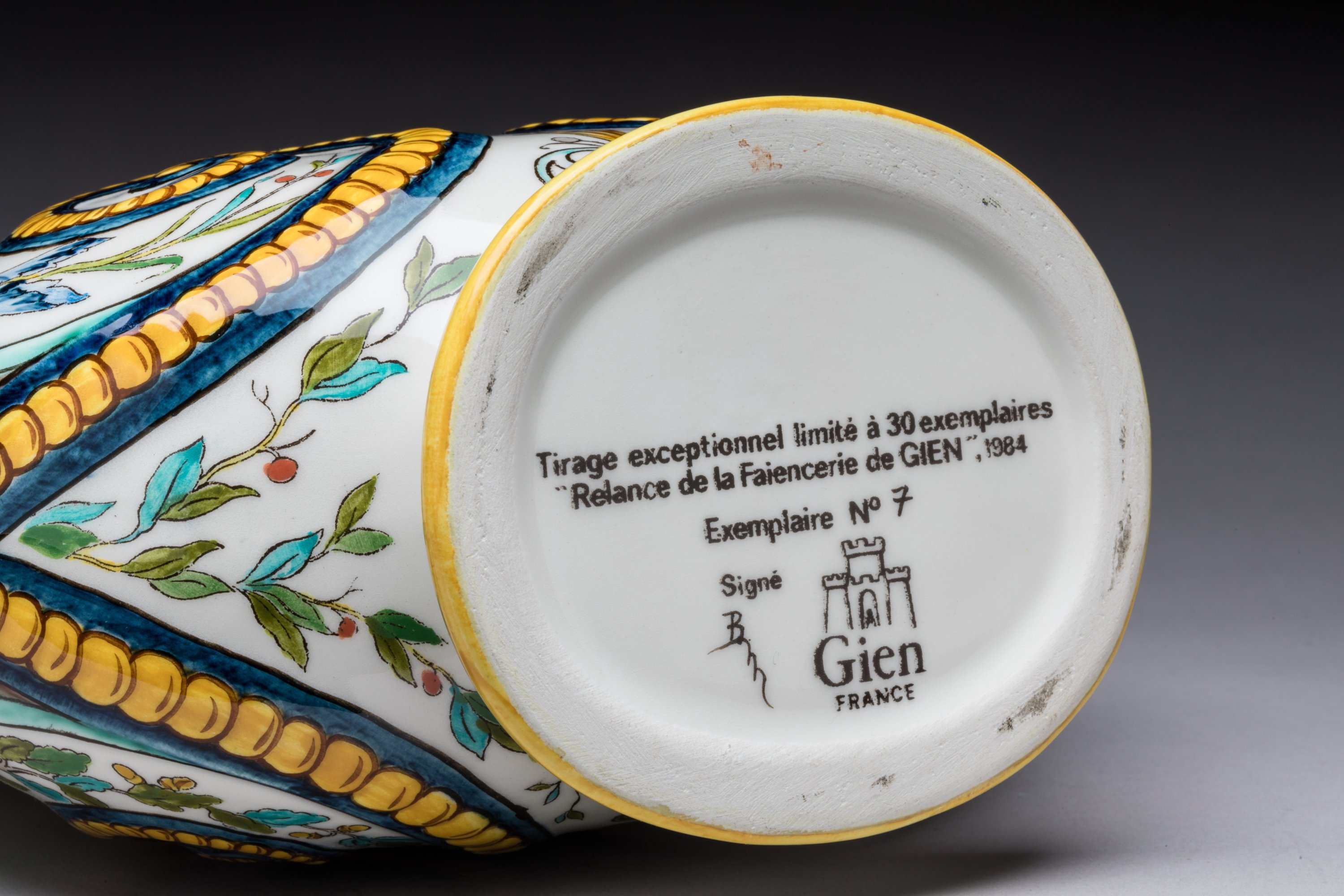Au revers marque de Gien 1984, tirage exceptionnel pour la relance de la faïencerie, exemplaire n°7/30 monogrammé BM.