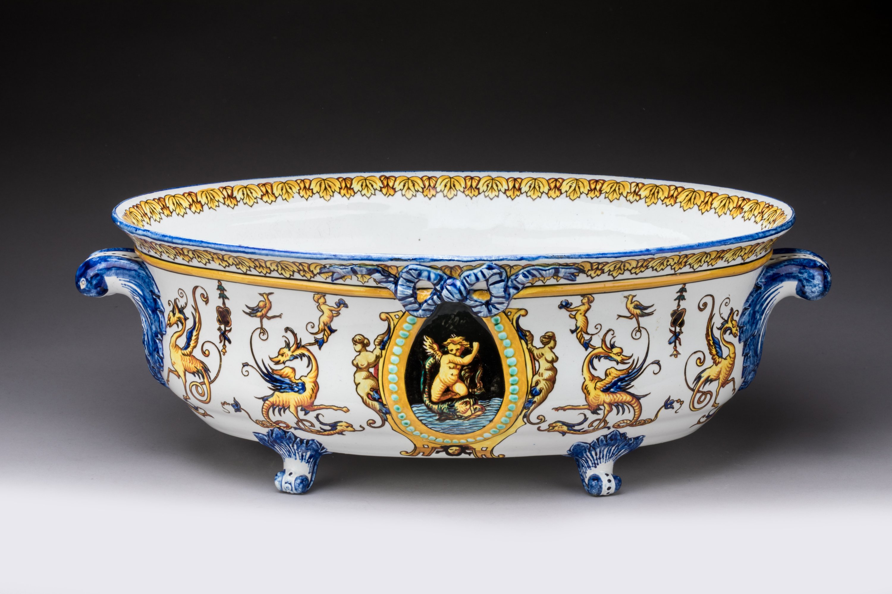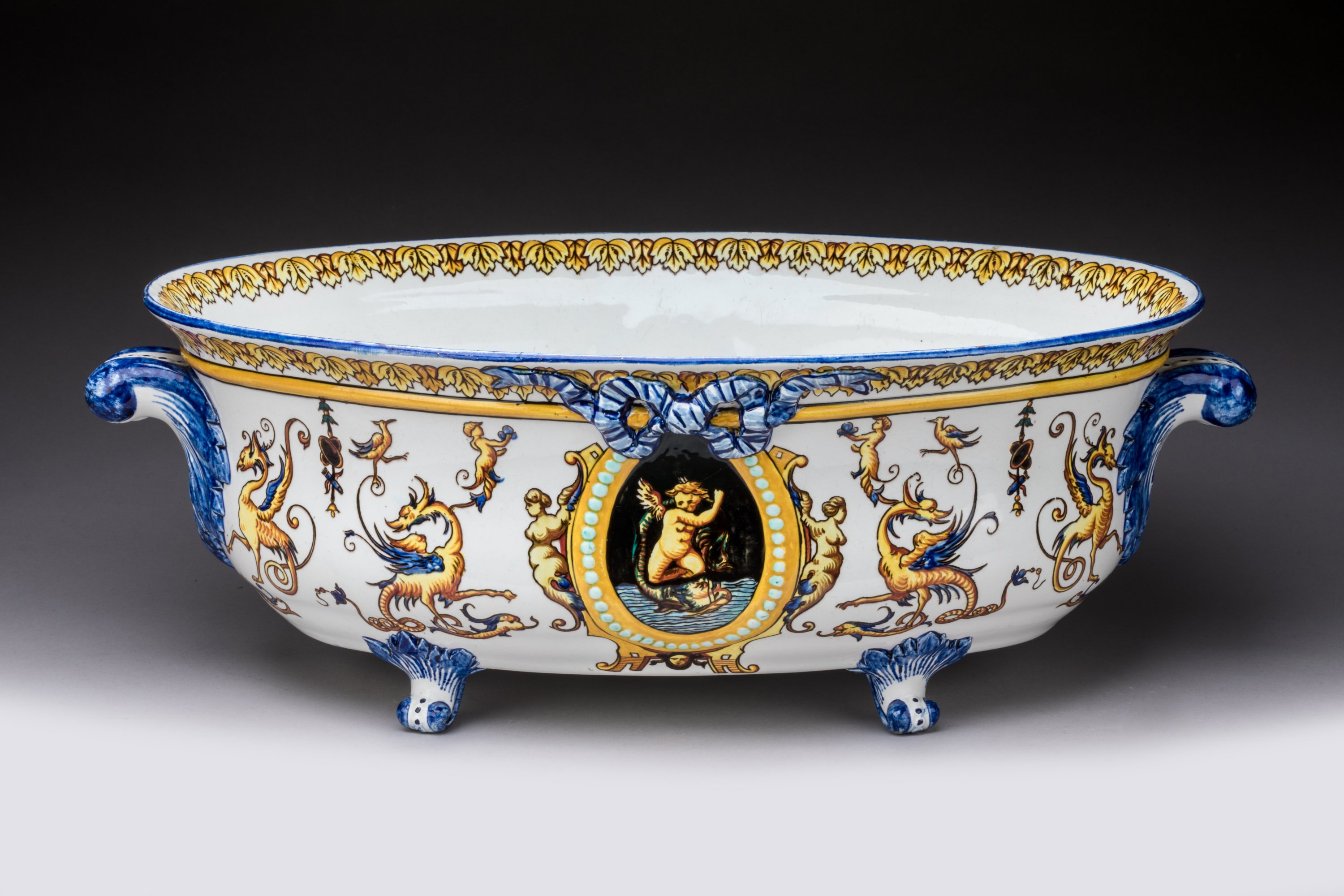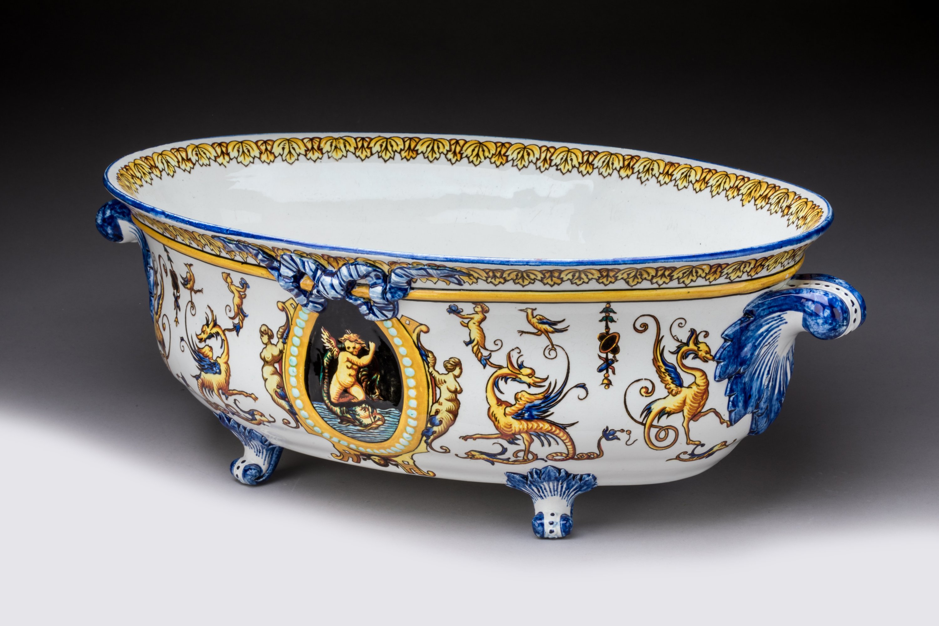 en céramique émaillée de la Renaissance sur fond blanc.