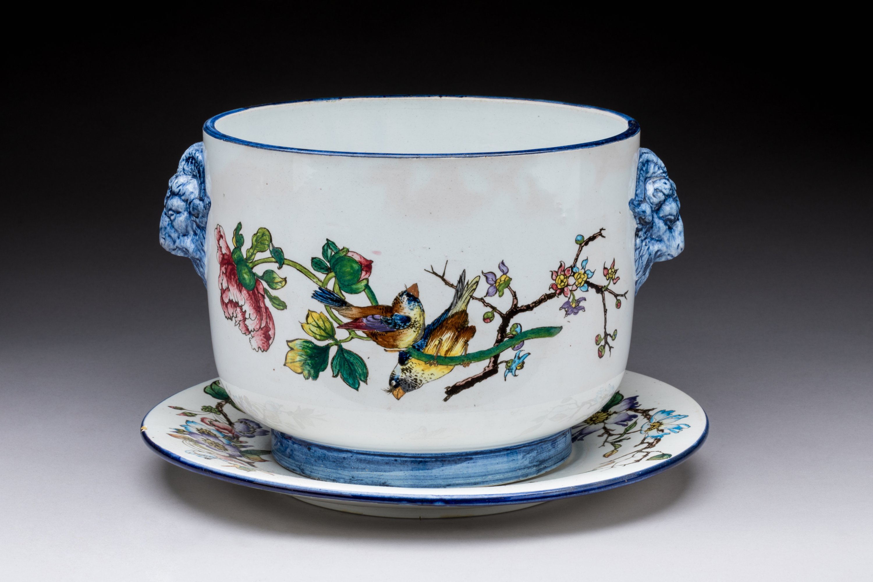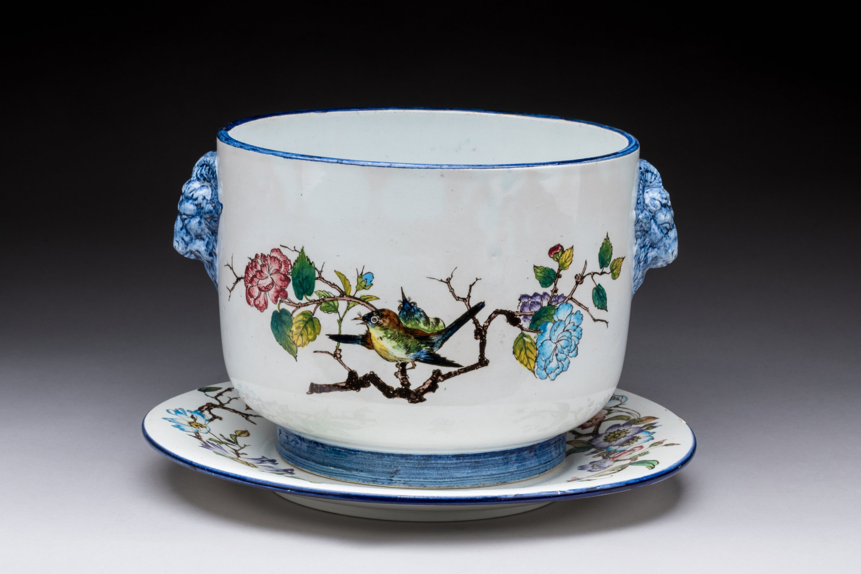 CACHE-POT aux oiseaux siffleurs et son DORMANT, 1871-1875