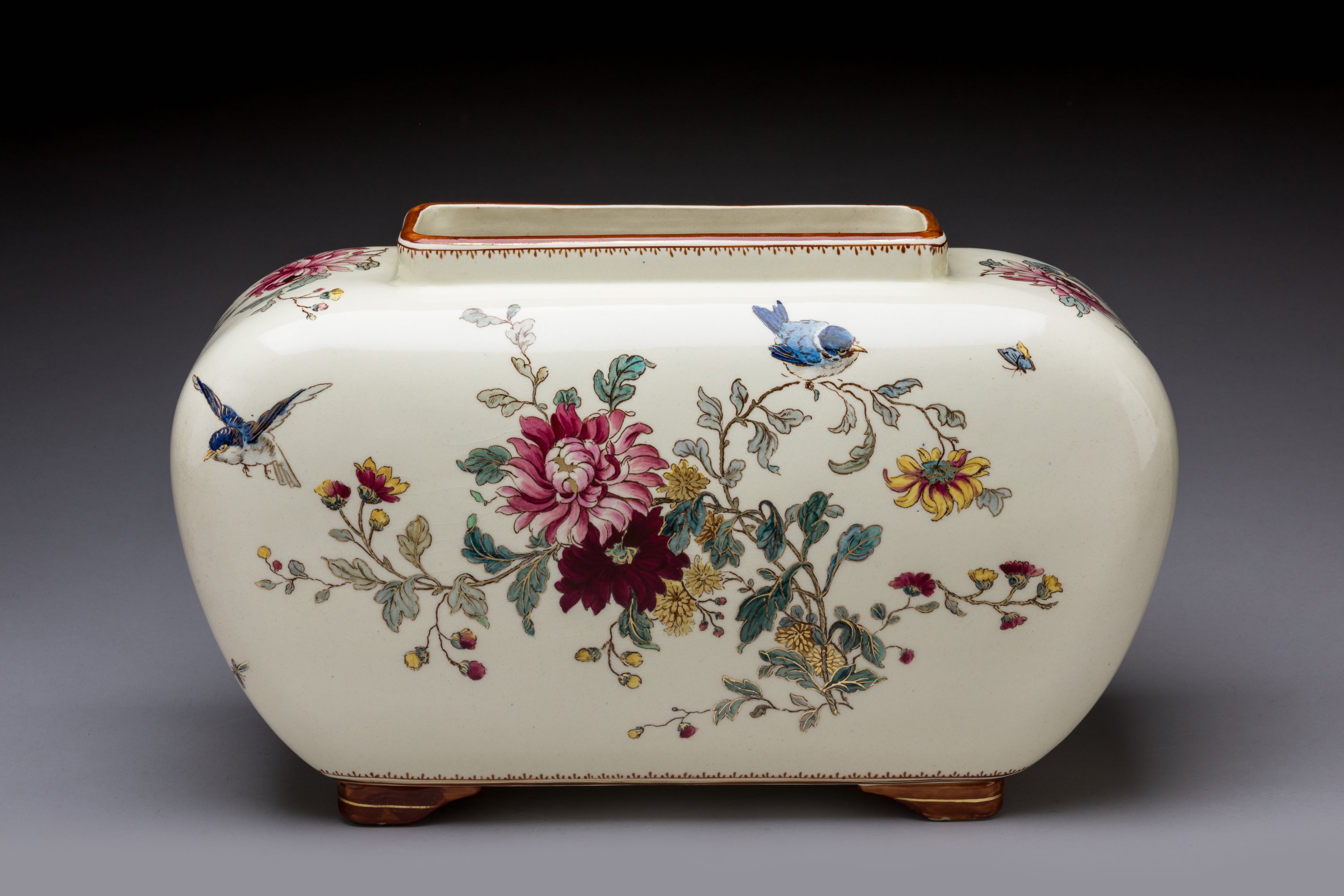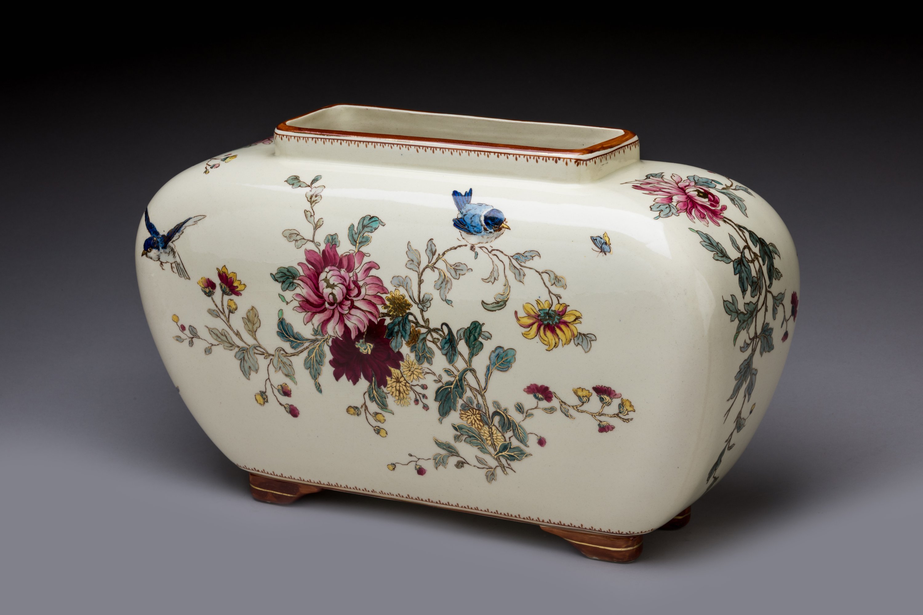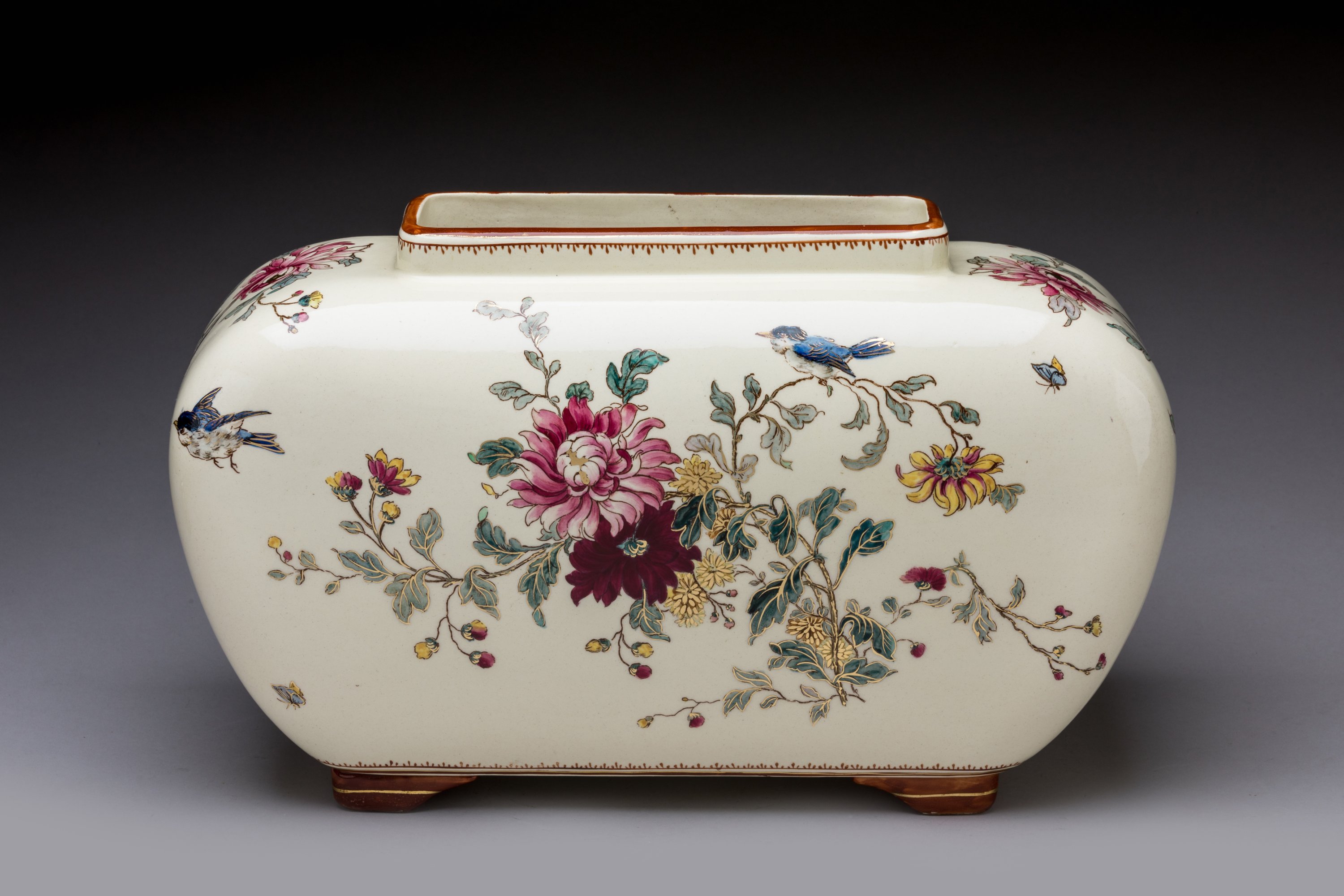 en céramique émaillée à décor polychrome avec rehauts d'or.