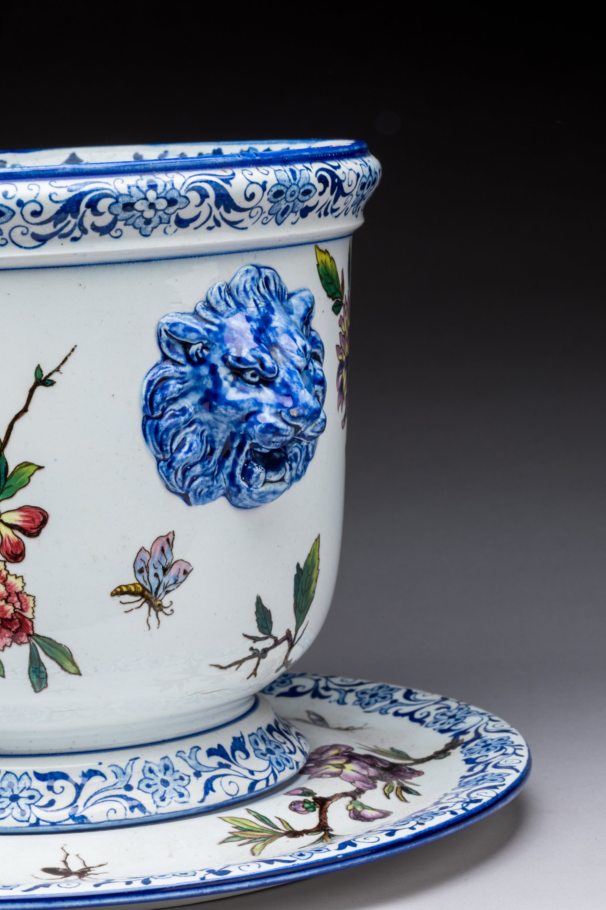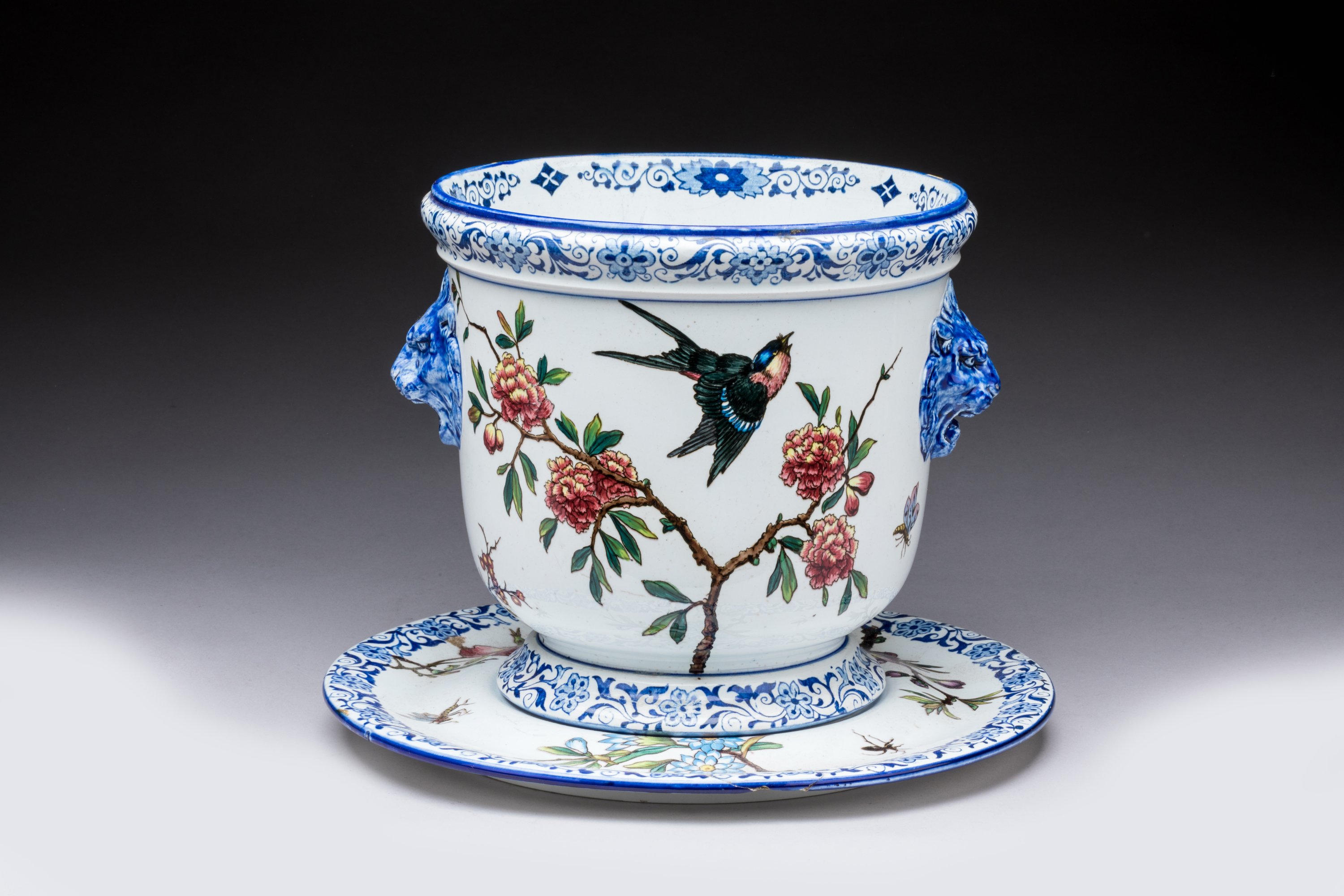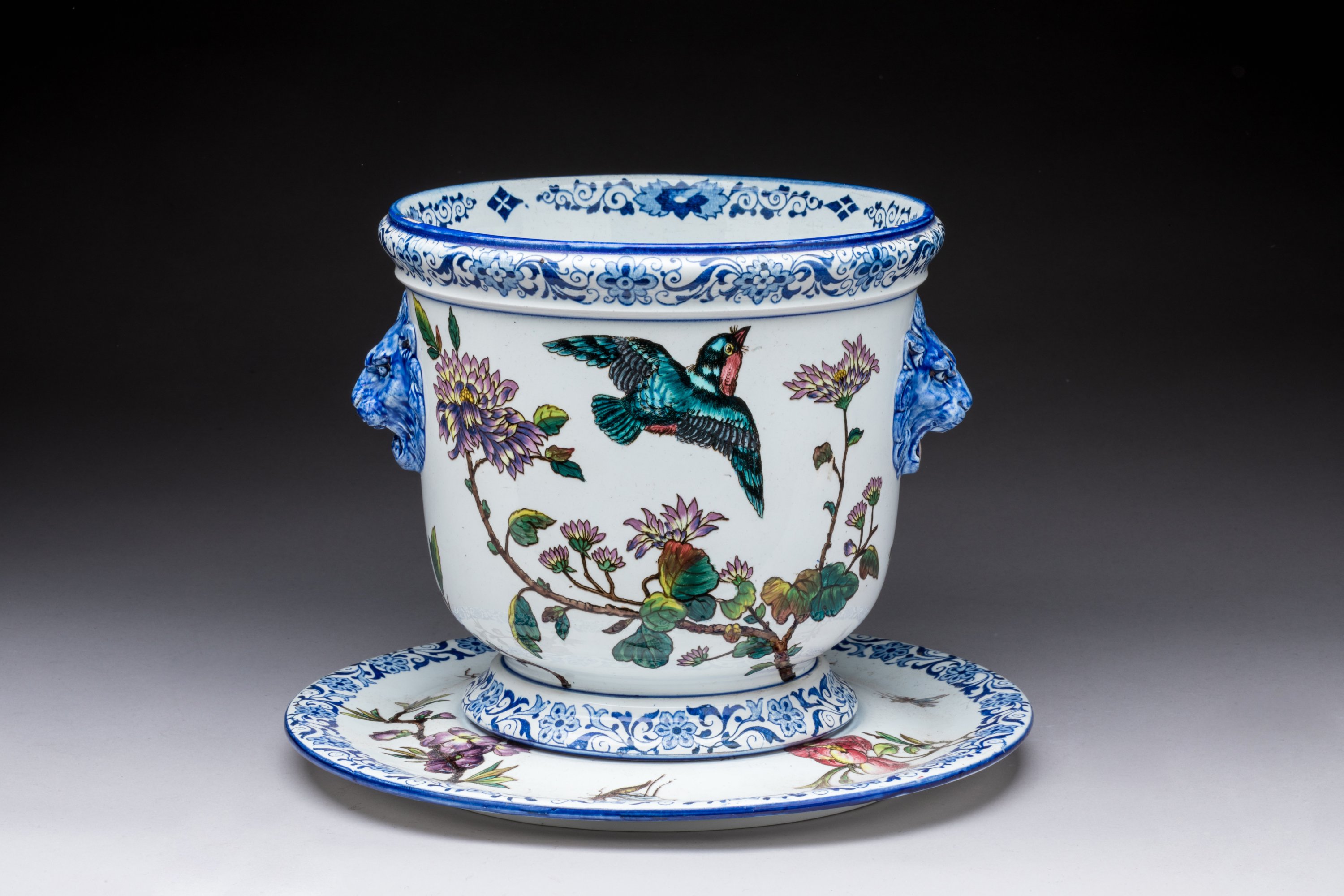 CACHE-POT aux oiseaux siffleurs et son DORMANT, 1866-1871