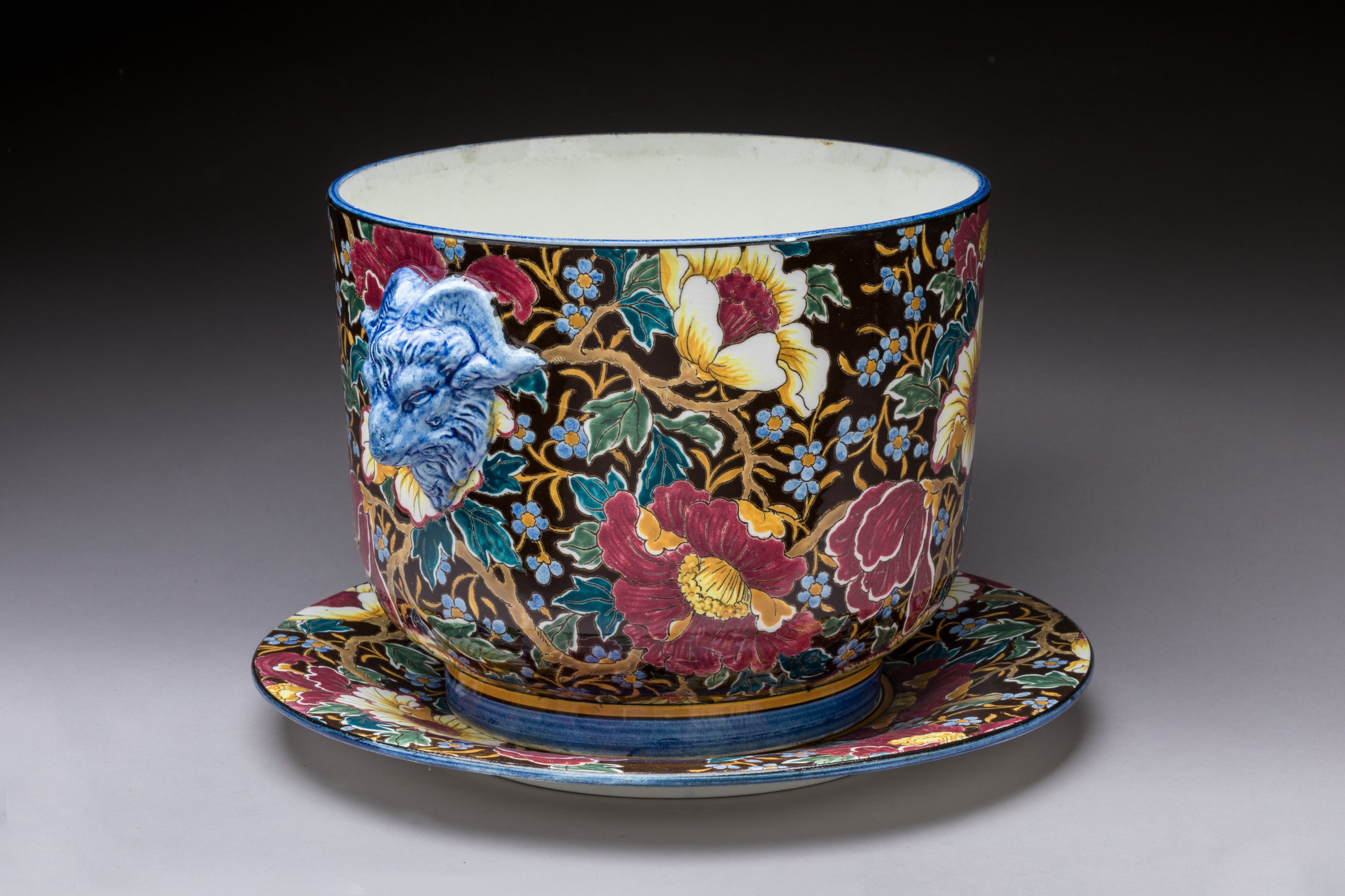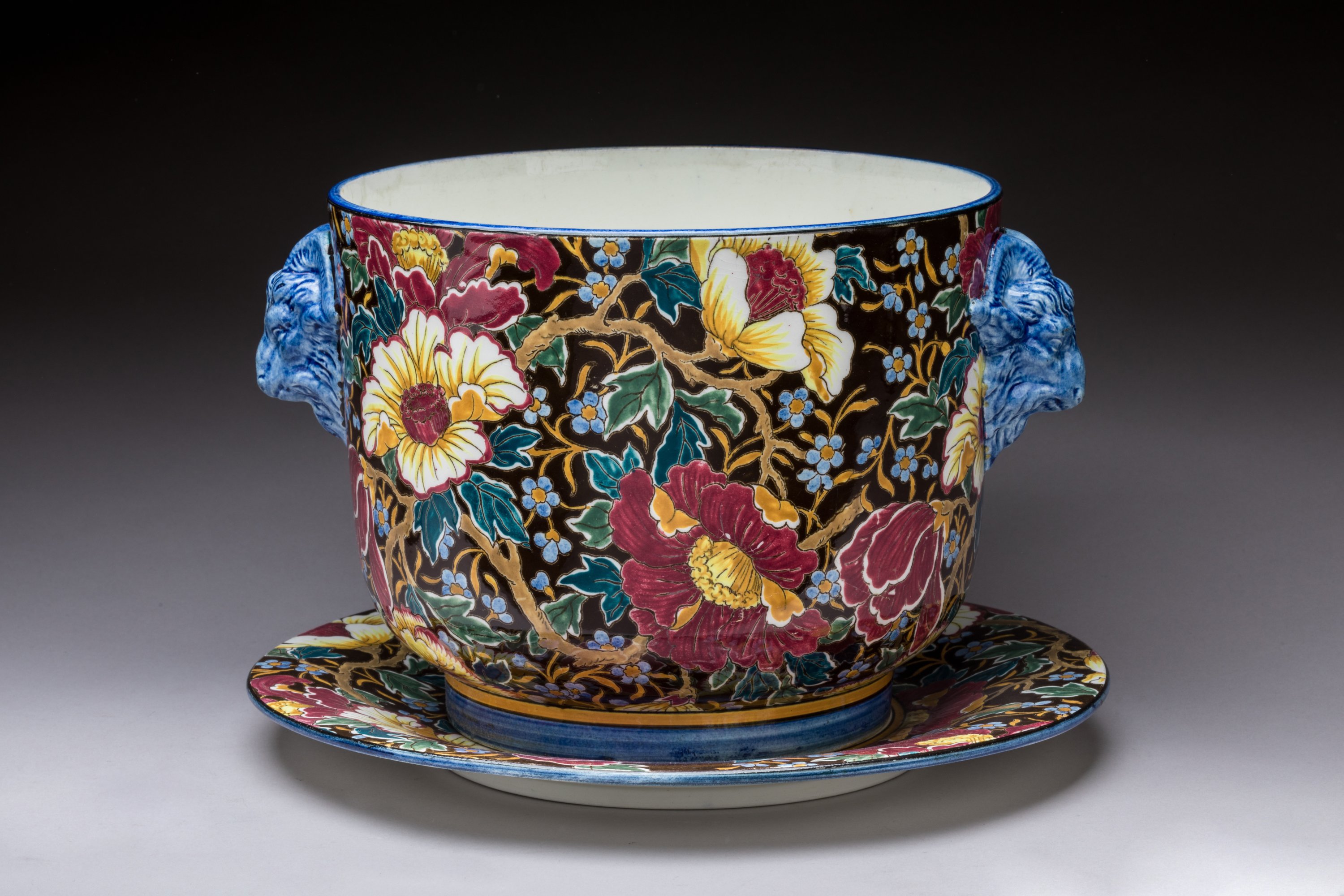 CACHE-POT et son DORMANT aux PIVOINES, 1877en céramique émaillée sur...