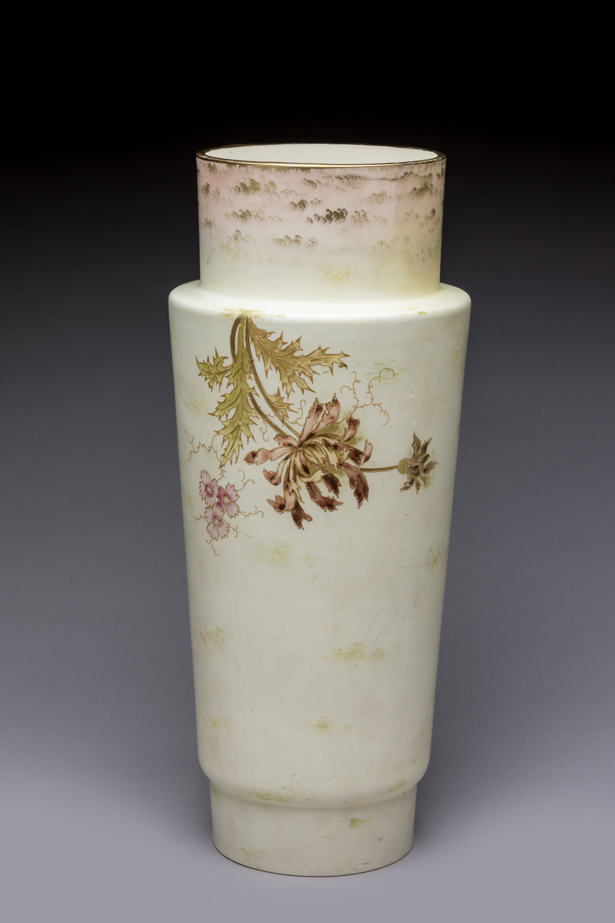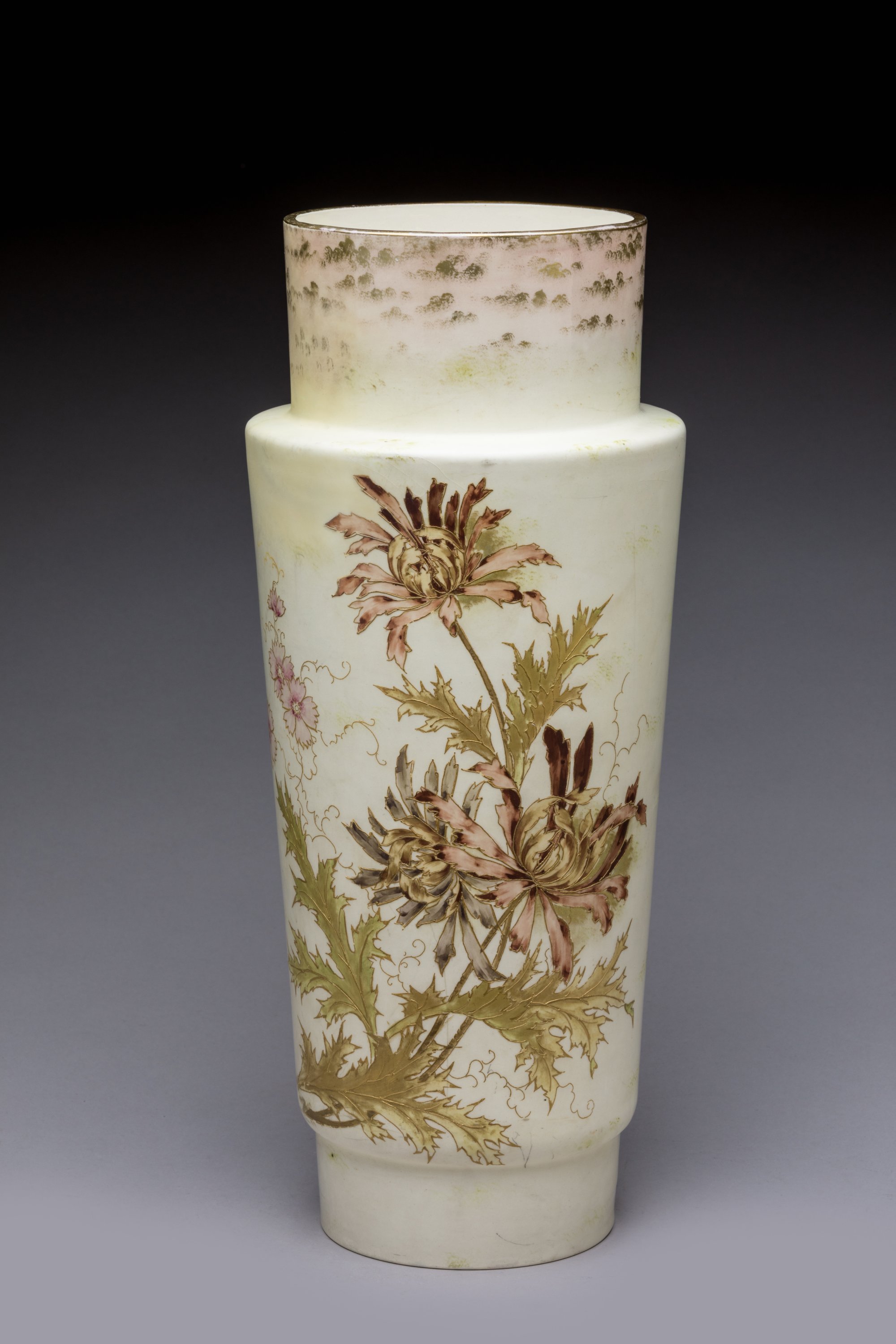 en céramique émaillée sur fond maïs satiné avec des rehauts d'or.