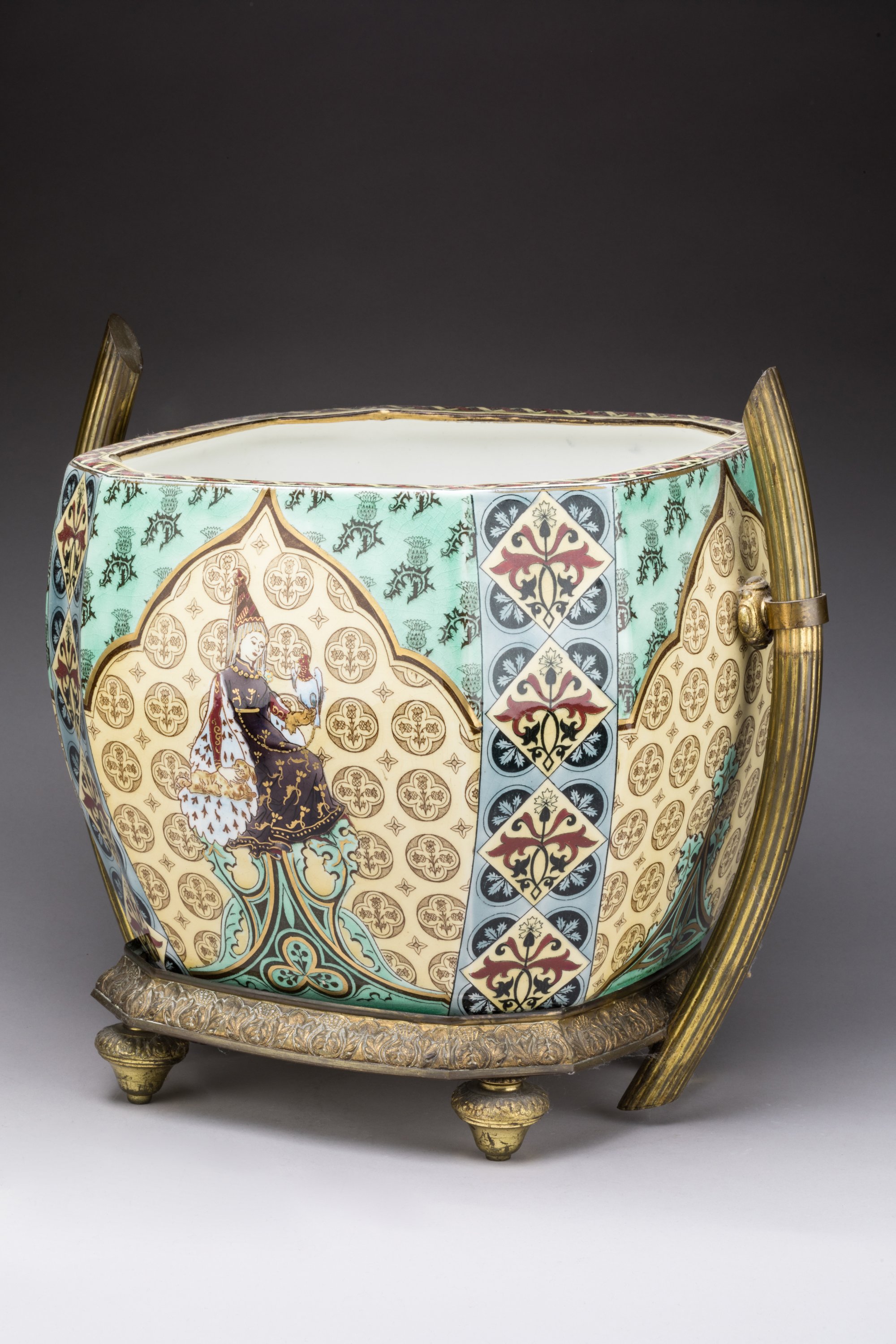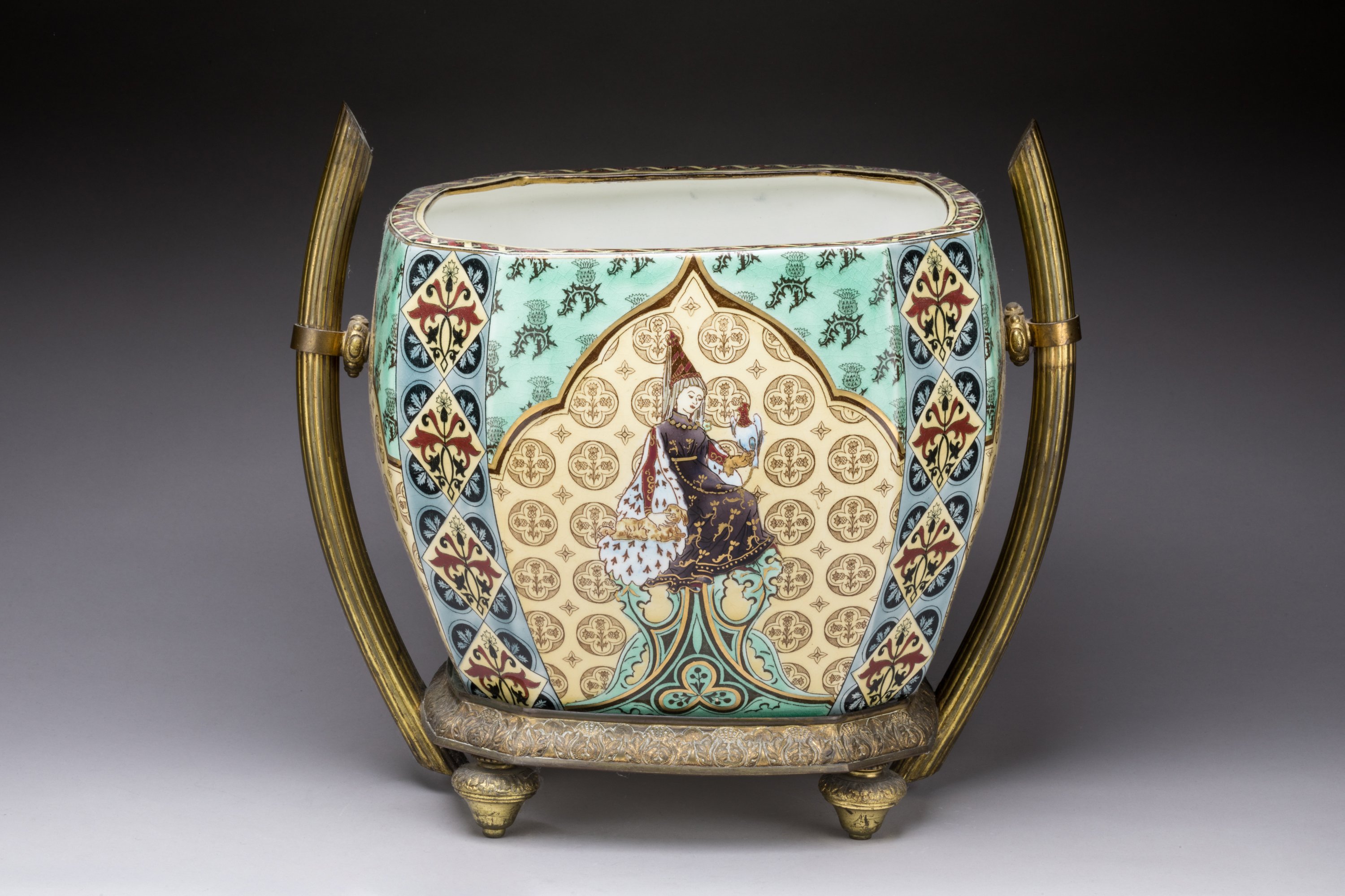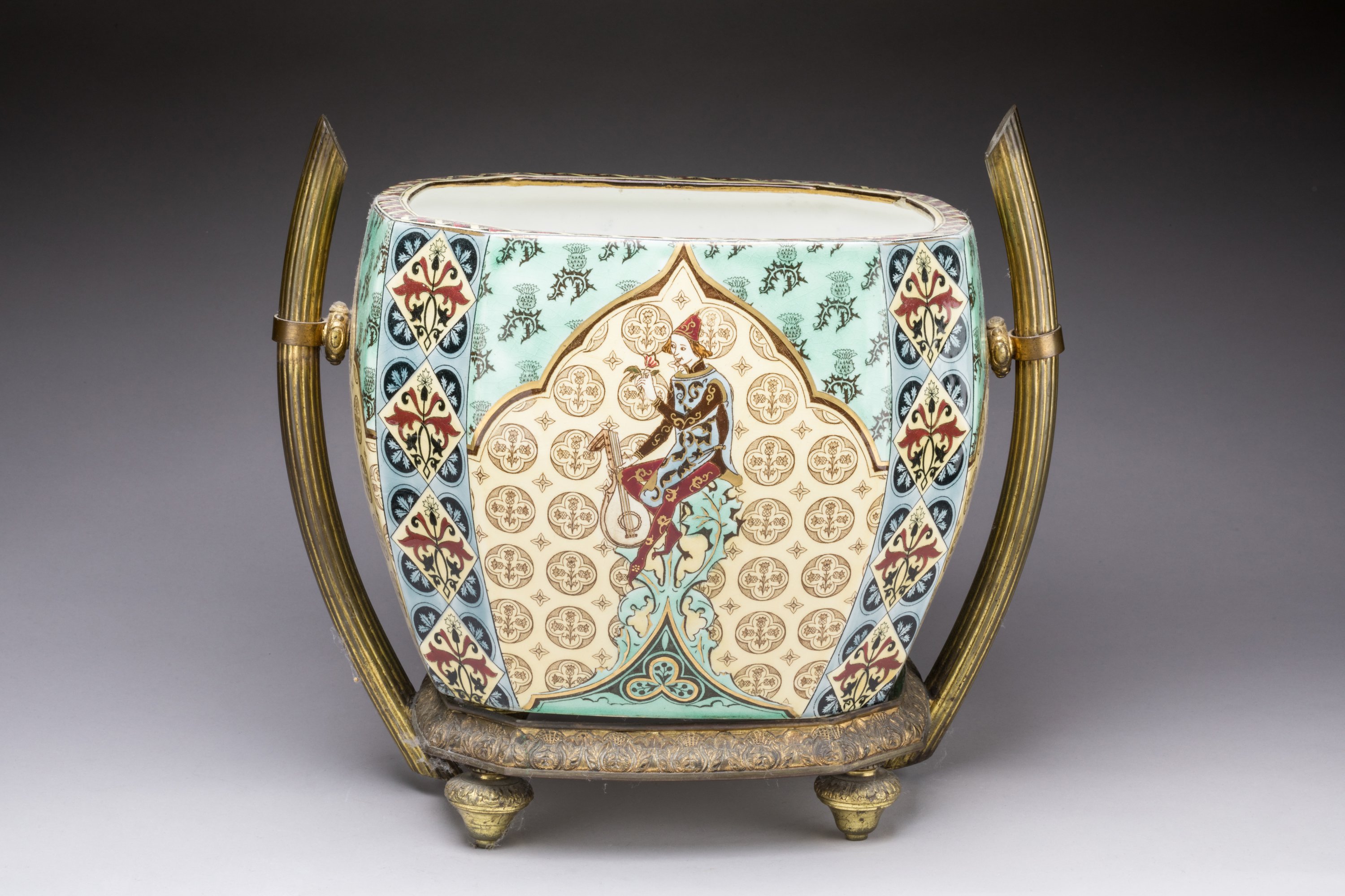 JOINT: cinq dessins dont certains rehaussés, présentant le modèle des troubadours figurés sur cette jardinière.