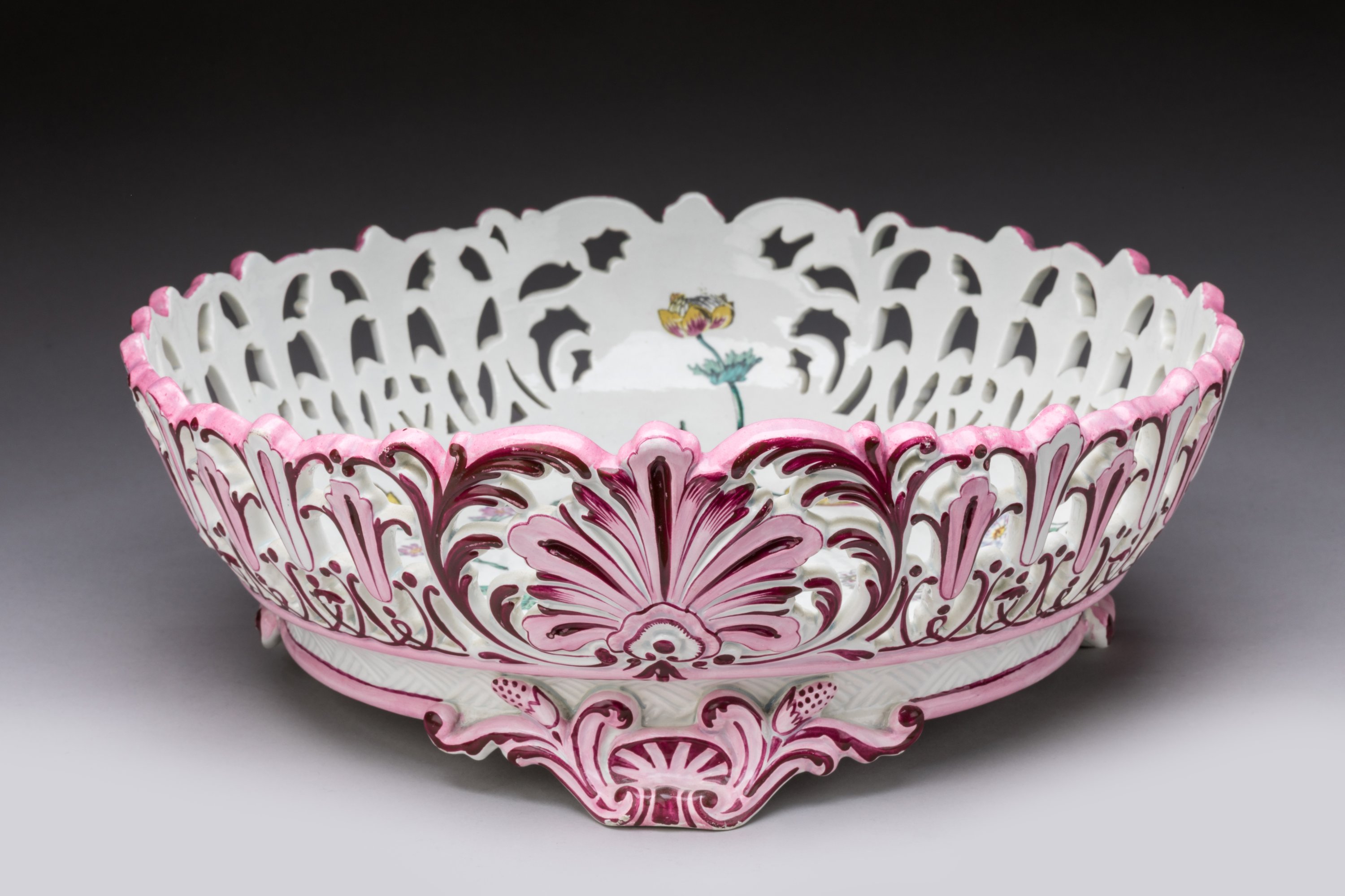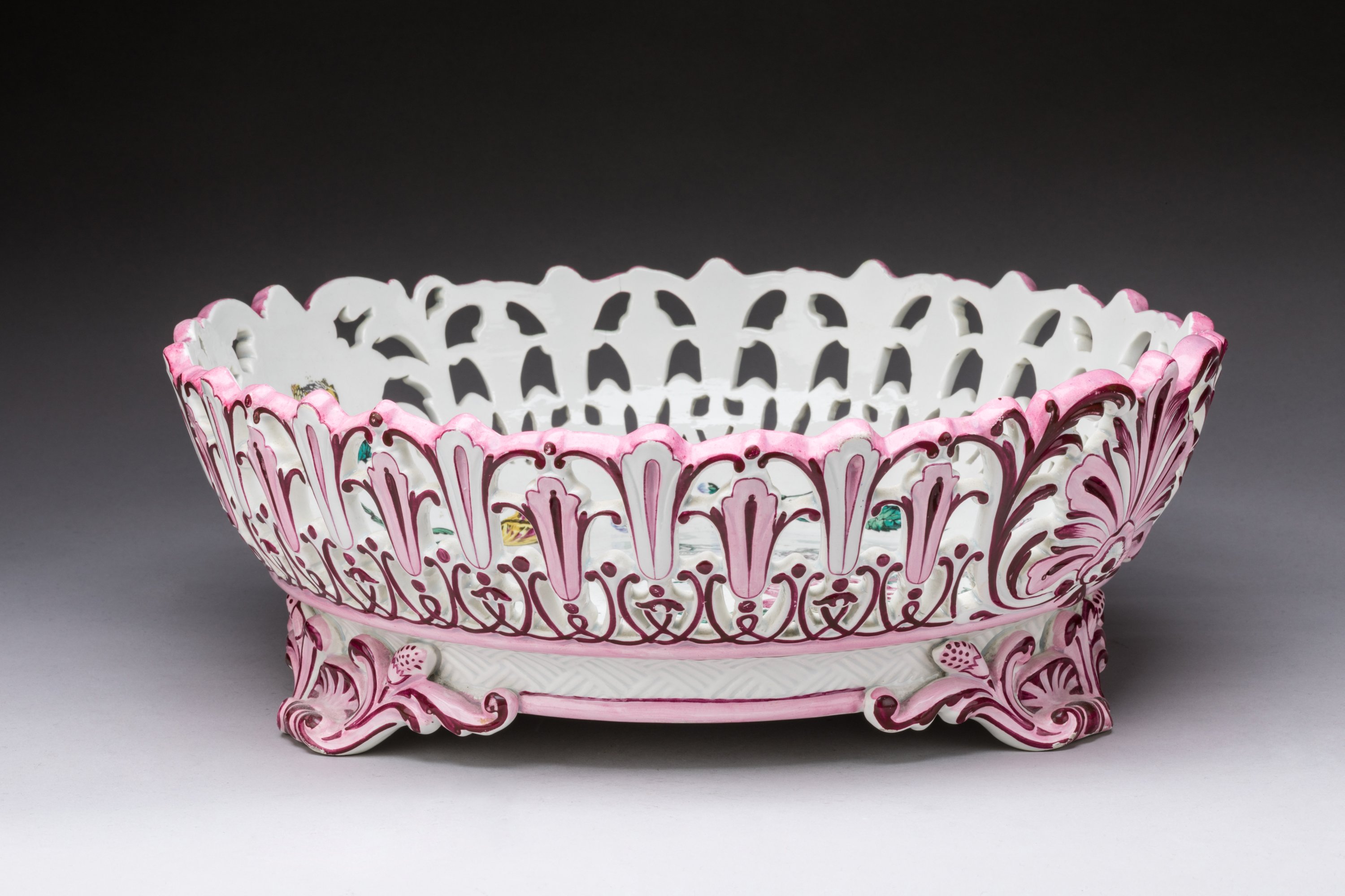 en céramique émail camaïeu rose à la façon de Marseille.