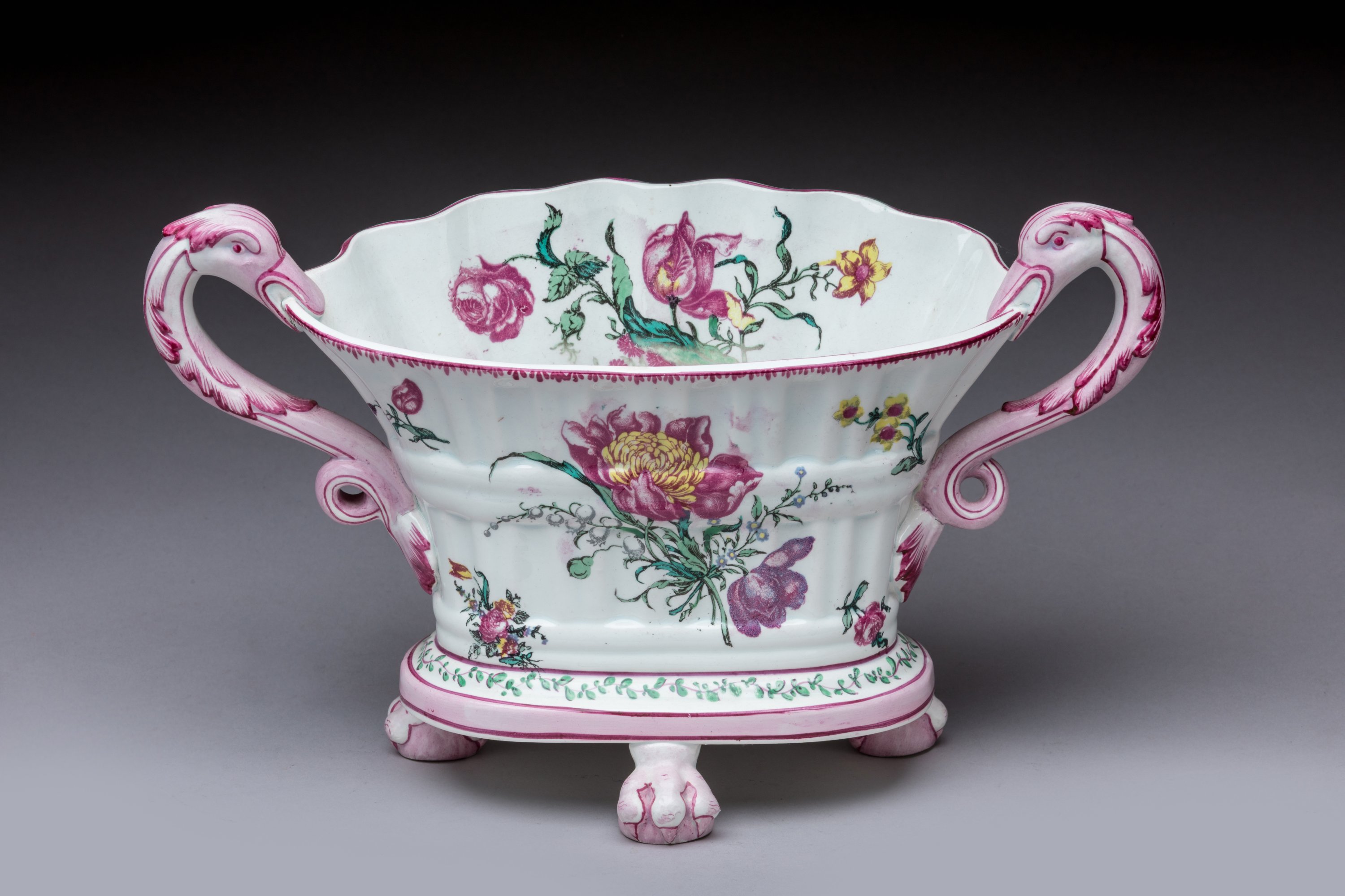 en céramique émaillée à décor de fleurs de Marseille. Pieds griffes.
