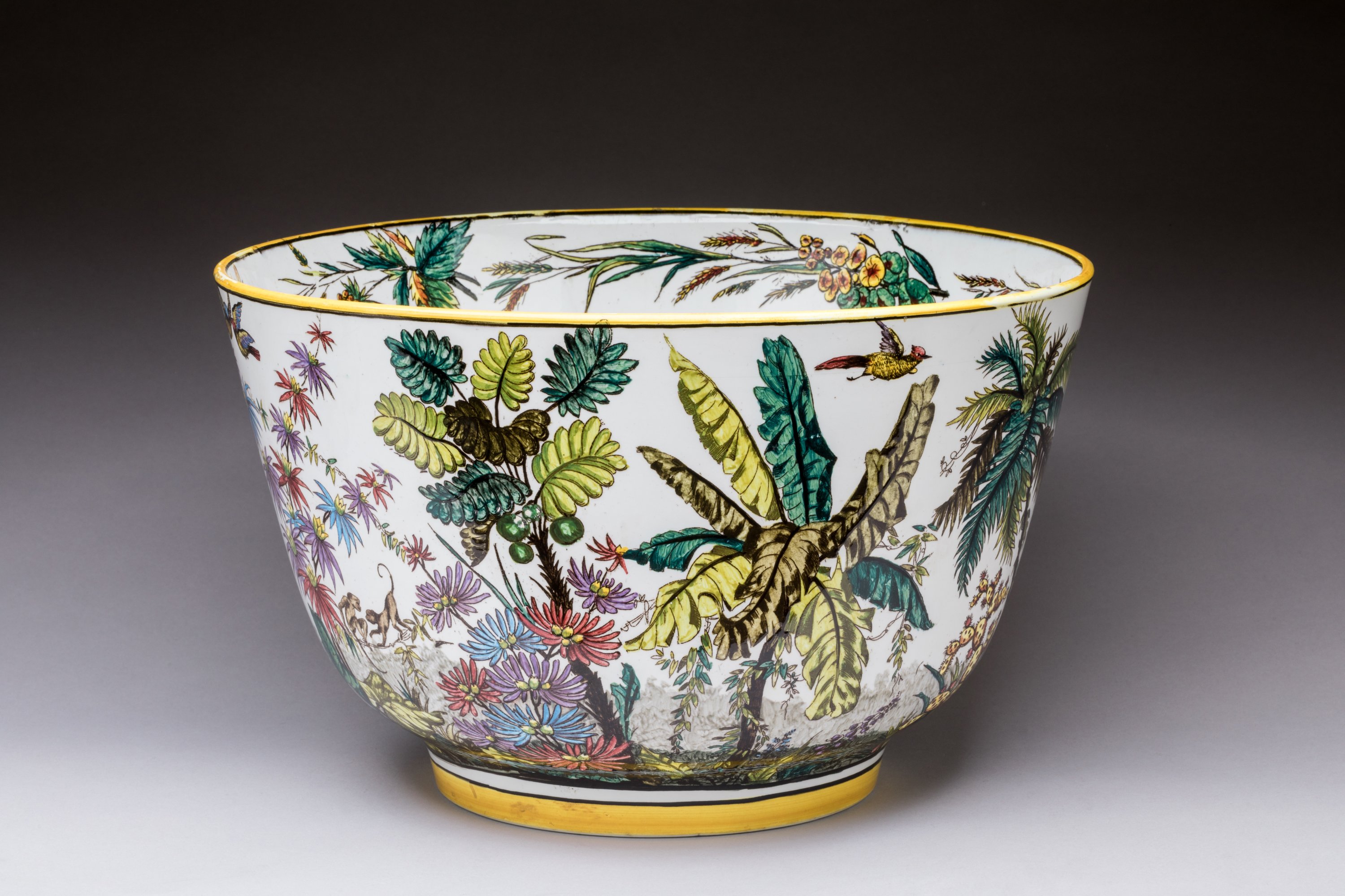 en céramique émaillée à décor de scènes de la forêt équatoriale dite Tamarin.