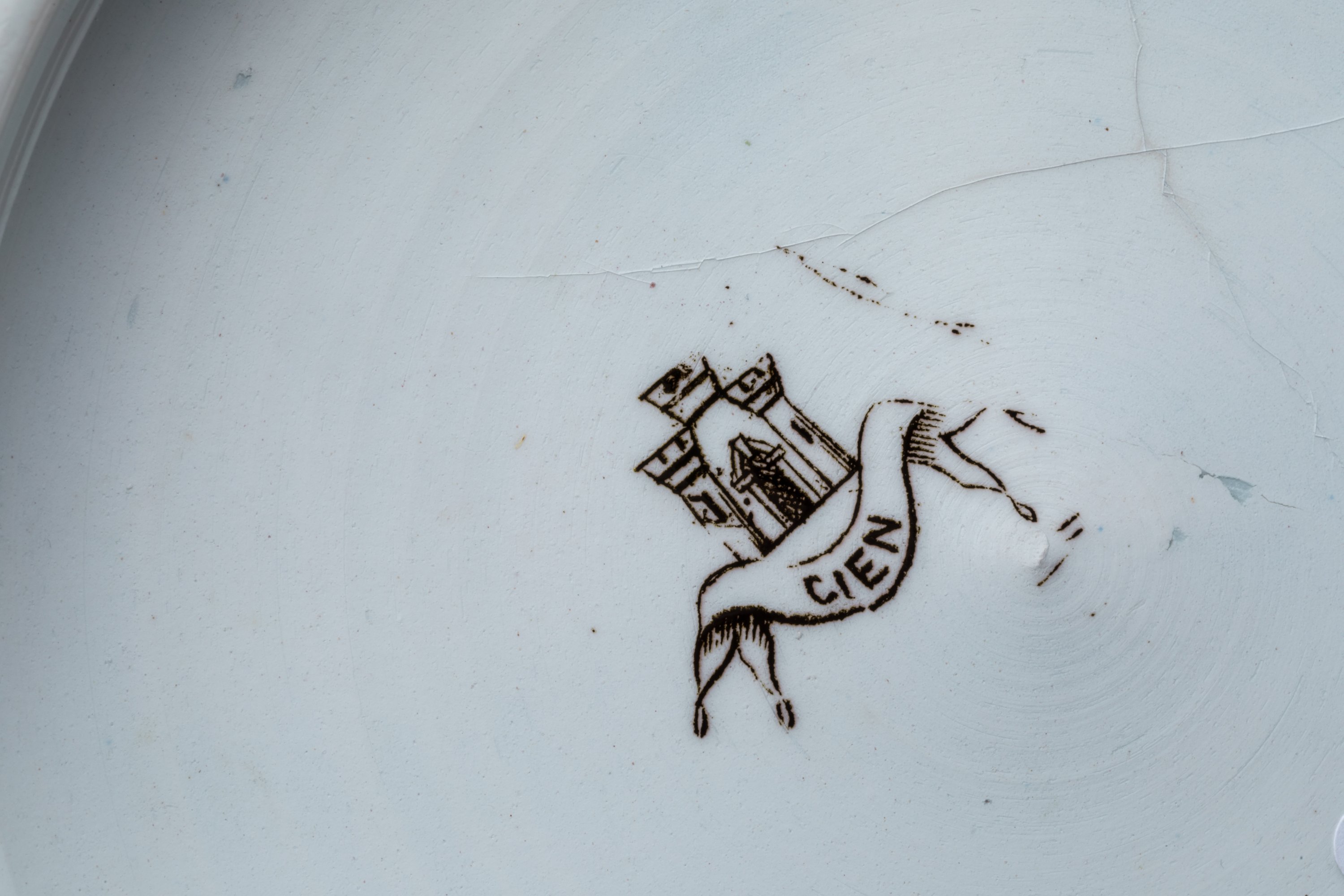 ASSIETTE d'une VUE de GIEN avec le marli orné de motifs comparables. Diam. 26,5 cm. (égrenures)