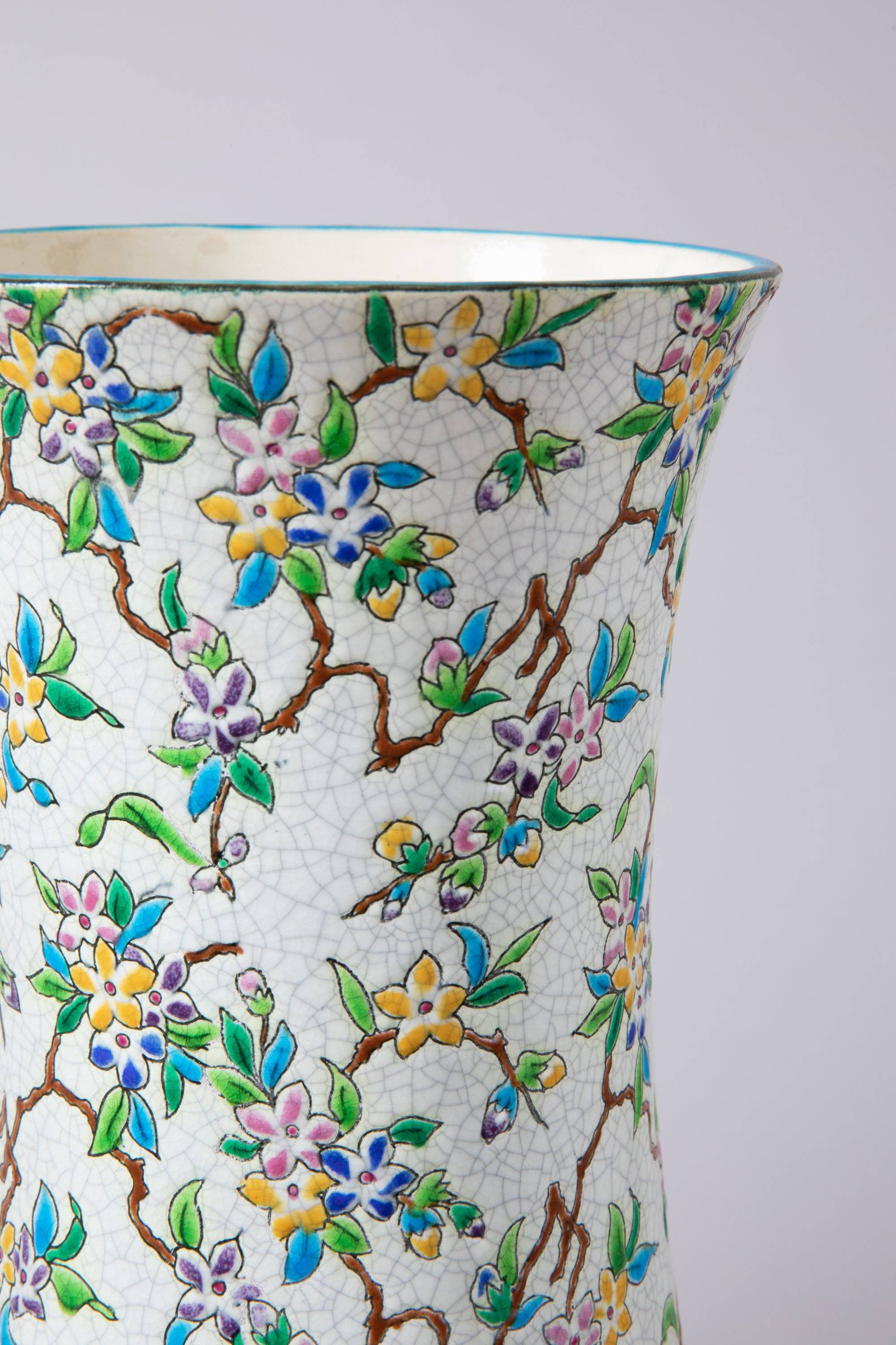 en céramique dite de Longwy aux fleurs de pommier.